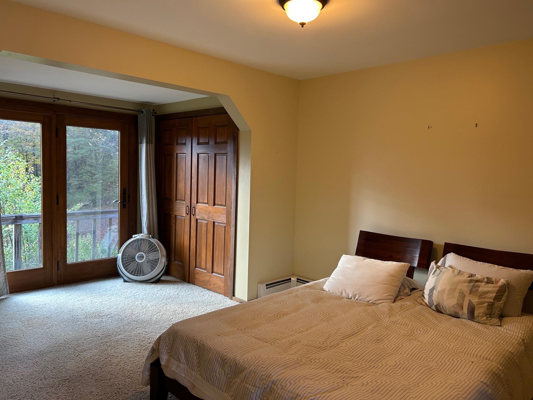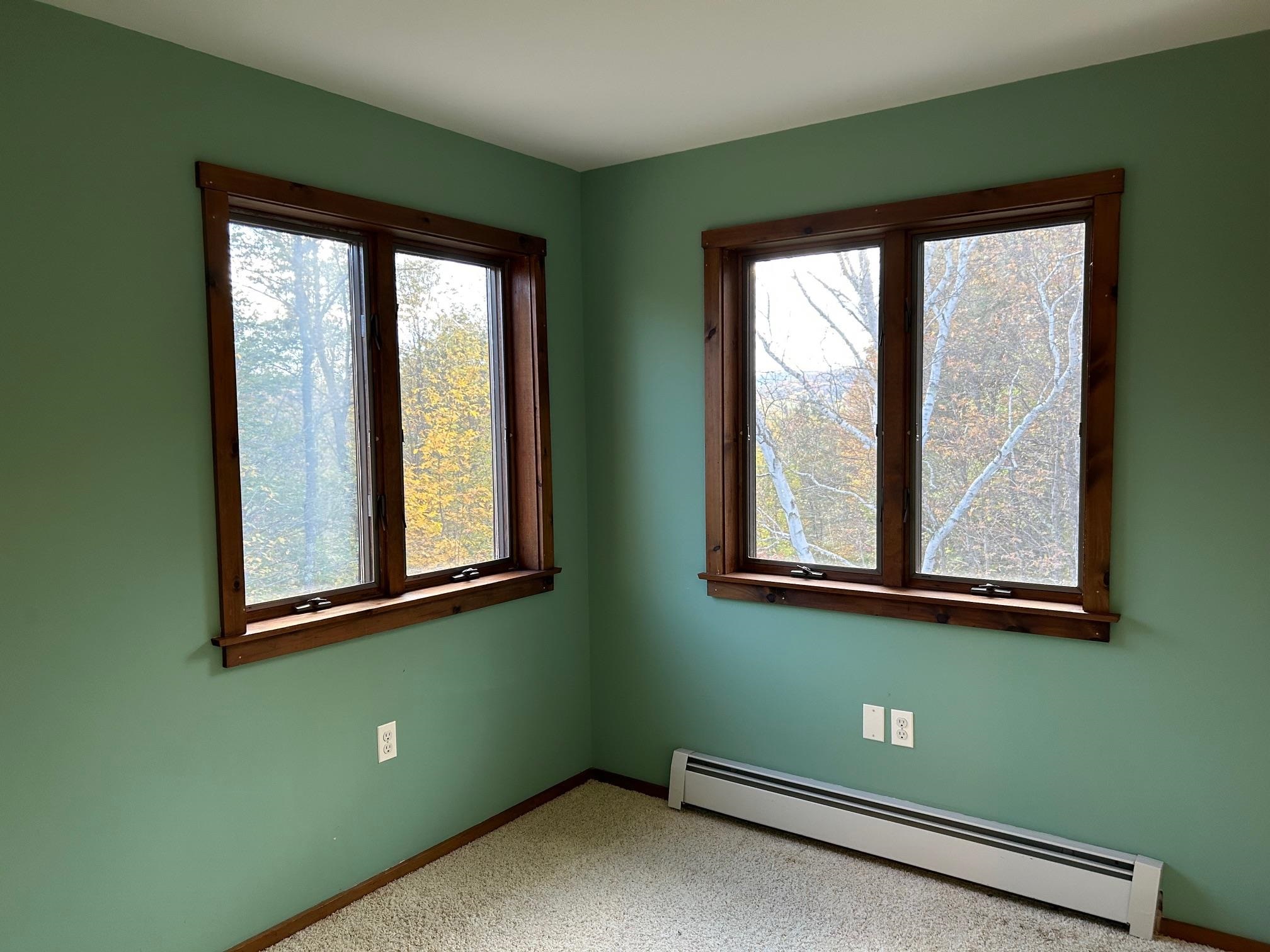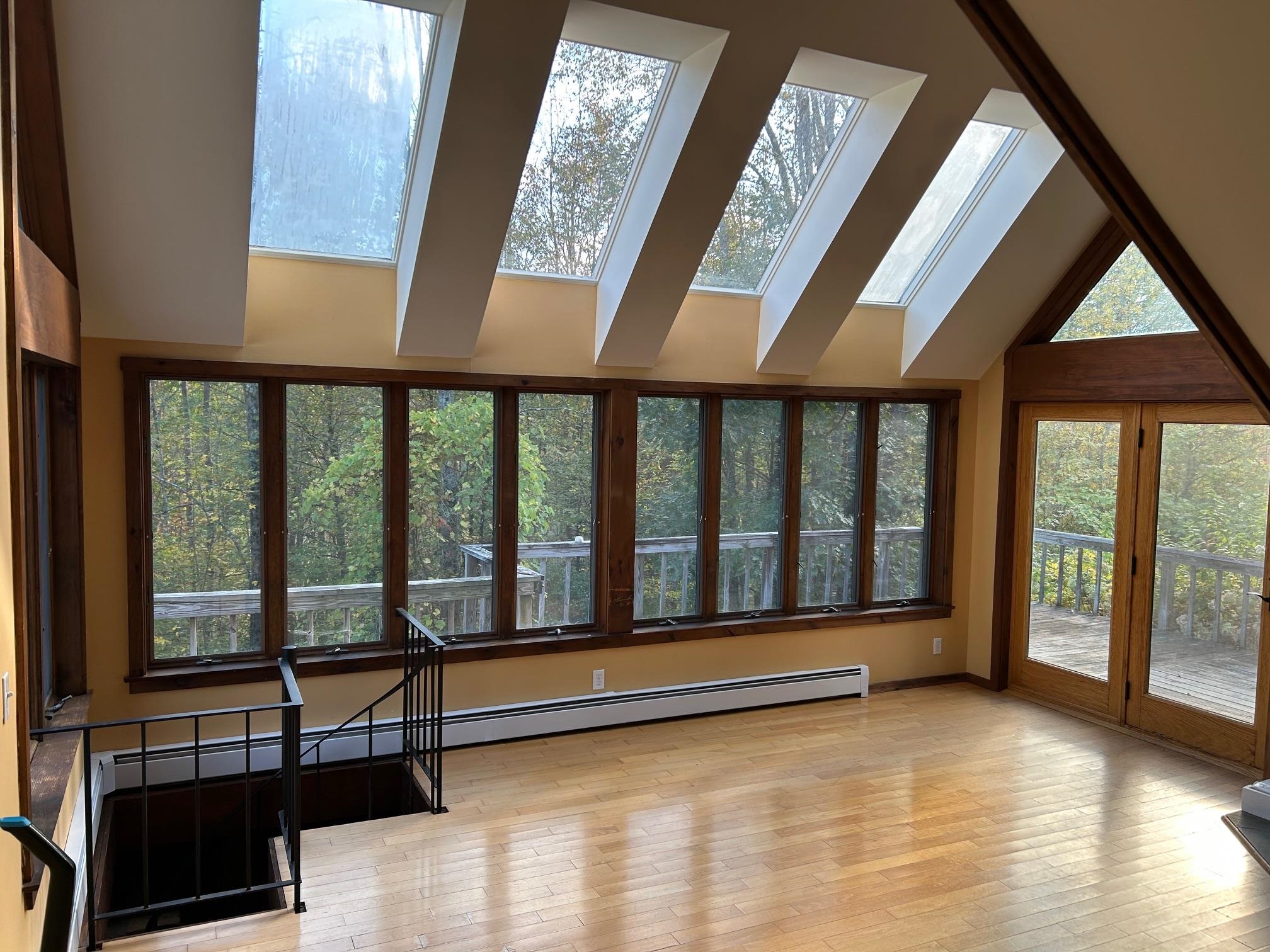 Light and thoughtful architect designed home on a lovely 12 acre hilltop. Set in a magical landscape of exposed ledge, old stone walls & established perennial gardens. Stunning views of both Mt Ascutney and Little Ascutney. Spacious and airy, large windows and south-facing skylights provide passive solar warmth throughout the 4 bedroom home. Open layout is clean and efficient with cathedral ceilings & custom touches. The galley-style kitchen has smart, functional design. Dining/Family room and sunken living room. Large primary bedroom with ensuite bath, laundry, and deck. A perfect spot for anyone who enjoys the outdoors. Direct access to recreational trails. Close to Ascutney Outdoors, WW Town Forest & the Brownsville Butcher & Pantry. A peaceful homestead in a truly special corner of Vermont. Listing price adjusted to reflect older roof, decks & skylights. All still serviceable.