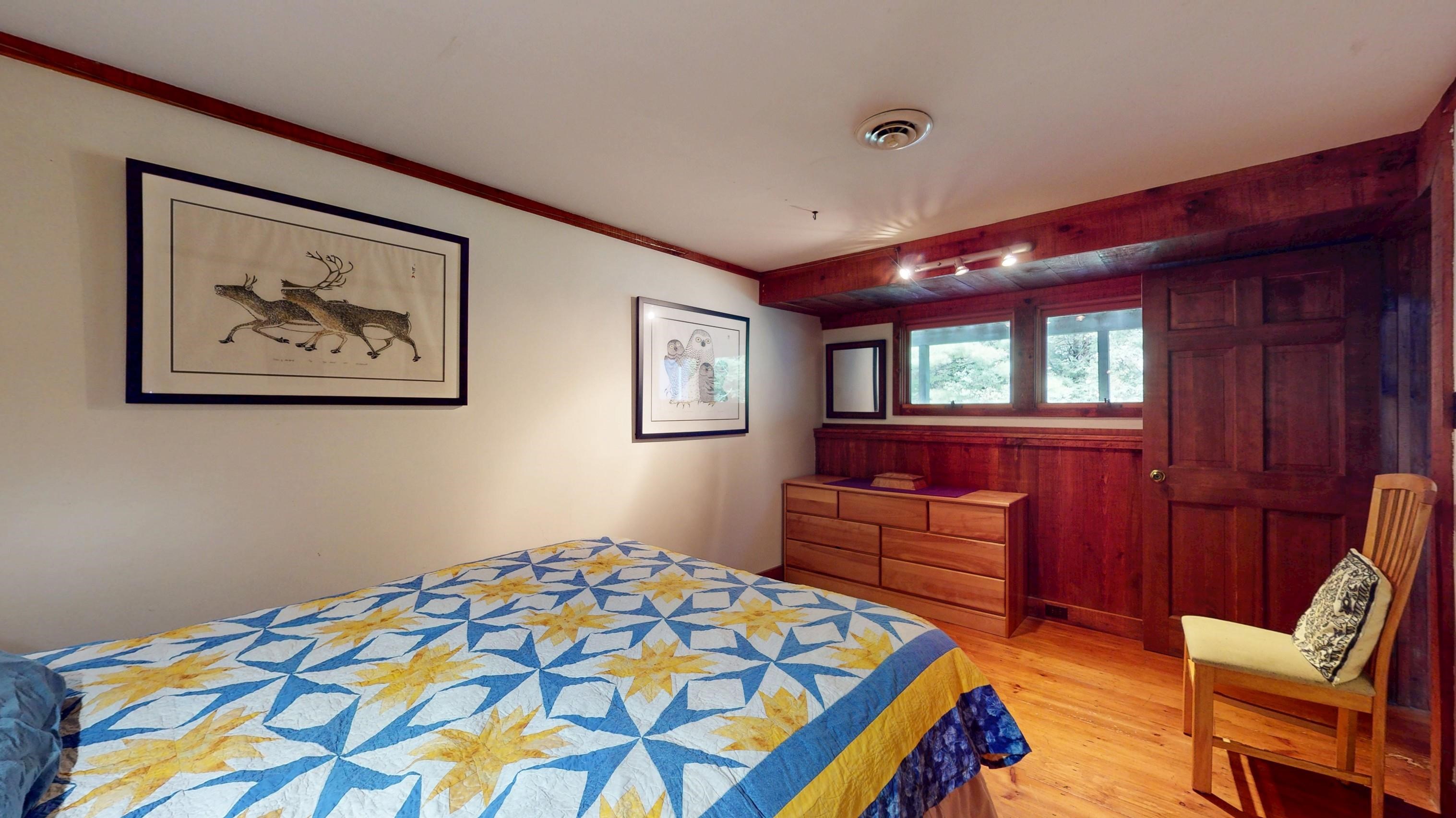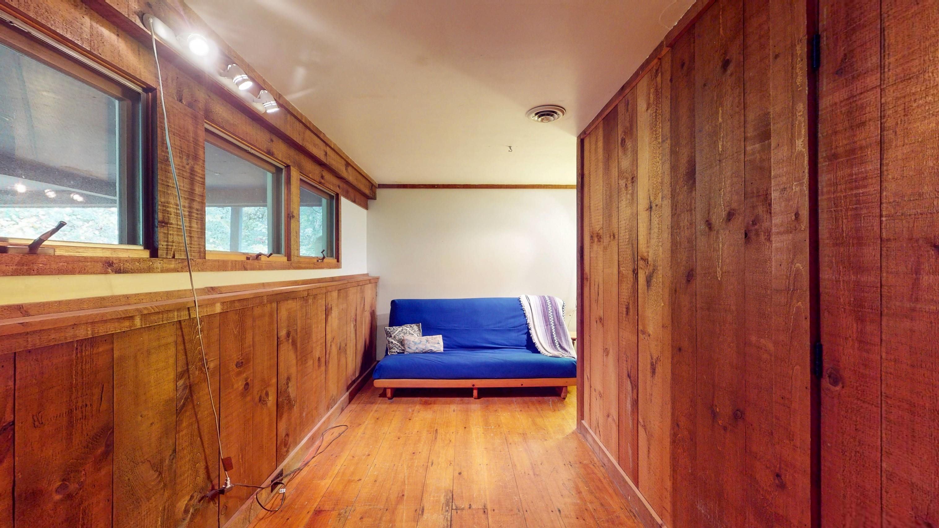 - Cathedral Ceiling, Hearth, Kitchen/Living, Natural Light, Natural Woodwork, Vaulted Ceiling, Basement Laundry