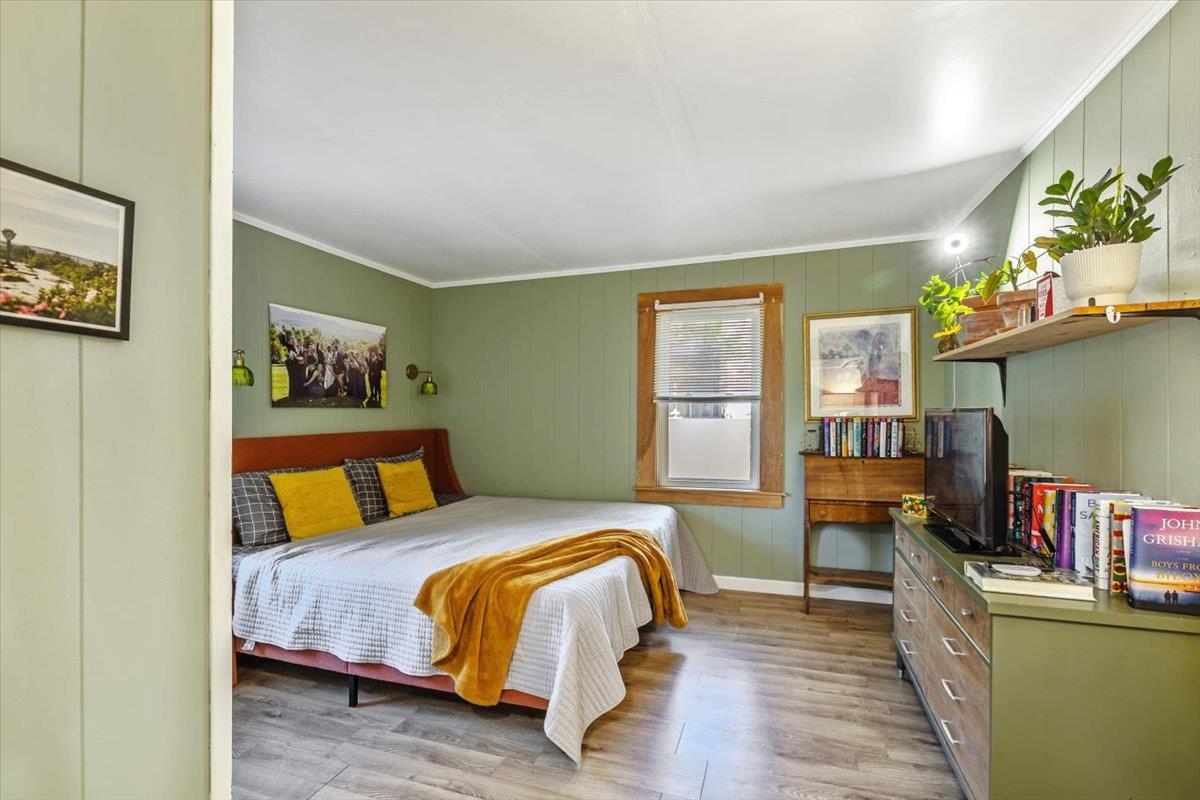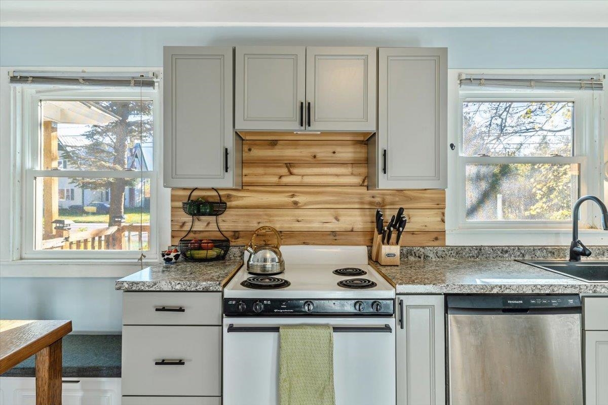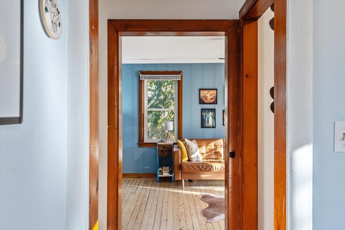 This beautiful home is a must see! From the beautiful wood floors, large windows that provide incredible natural lighting to the gorgeous updated kitchen and finishes, its easy to feel at home. Property offers 2 bedrooms, one full bath, full basement, attached garage with ample storage and deck perfect for morning coffee, afternoon bbgs, or midnight stargazing. Enclosed 3 season porch on the back of the house has served as a great space for work out room, home office or quiet place to read and relax. Enjoy fenced in backyard with existing raspberry bushes, raised beds, rhubarb & Chicken coop that allows for your own flock of pest controllers! New Furnace, windows and chimney liner offer efficiency and peace of mind!