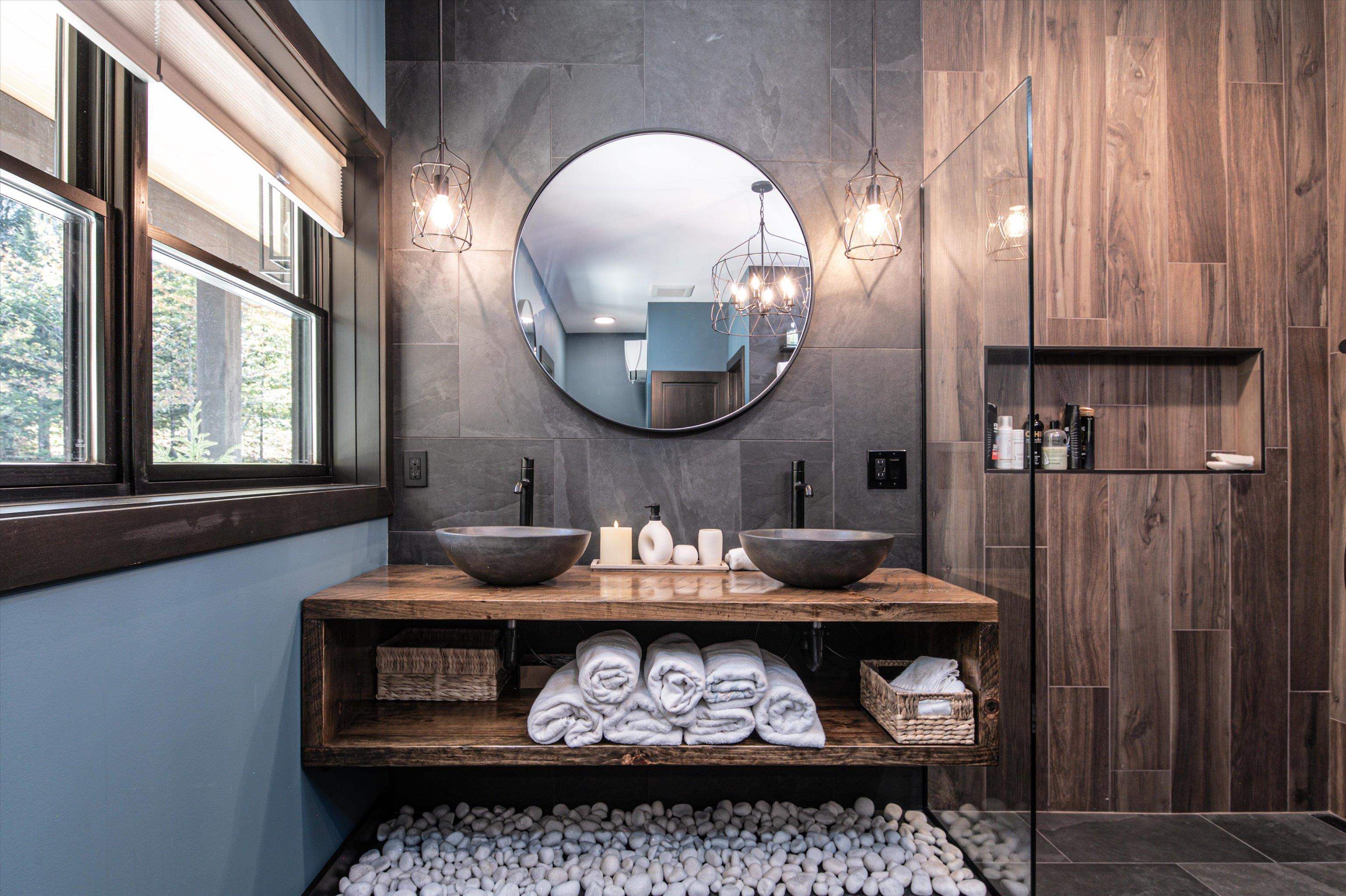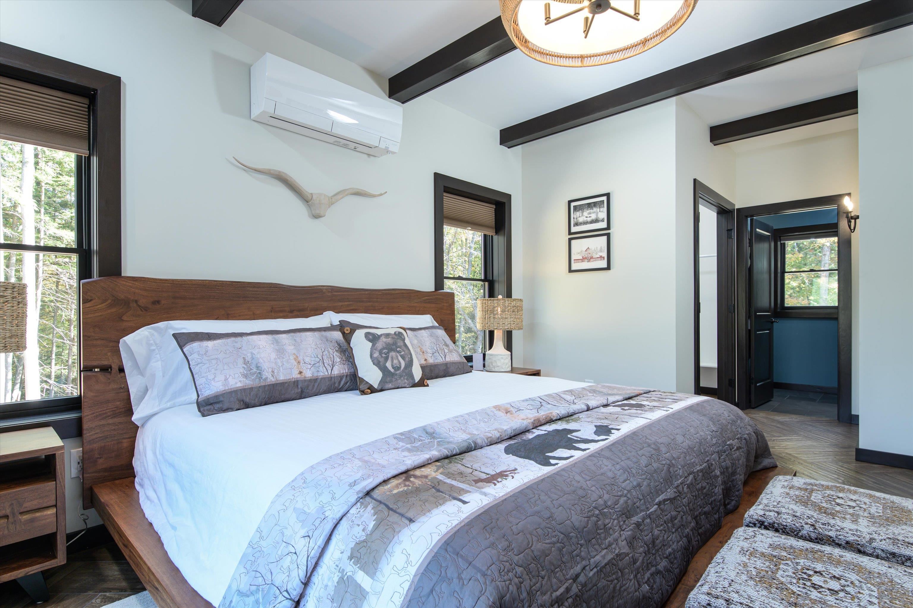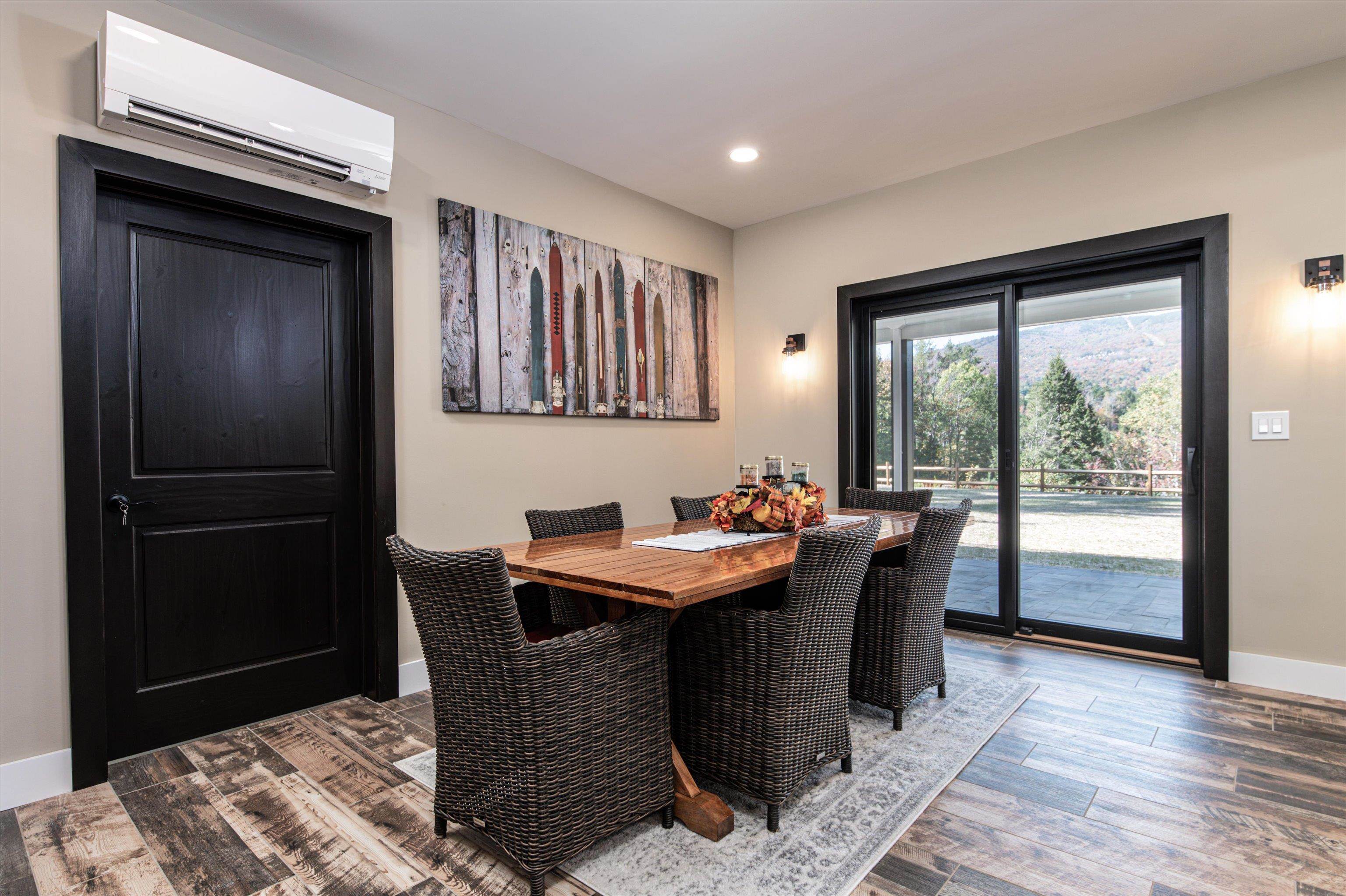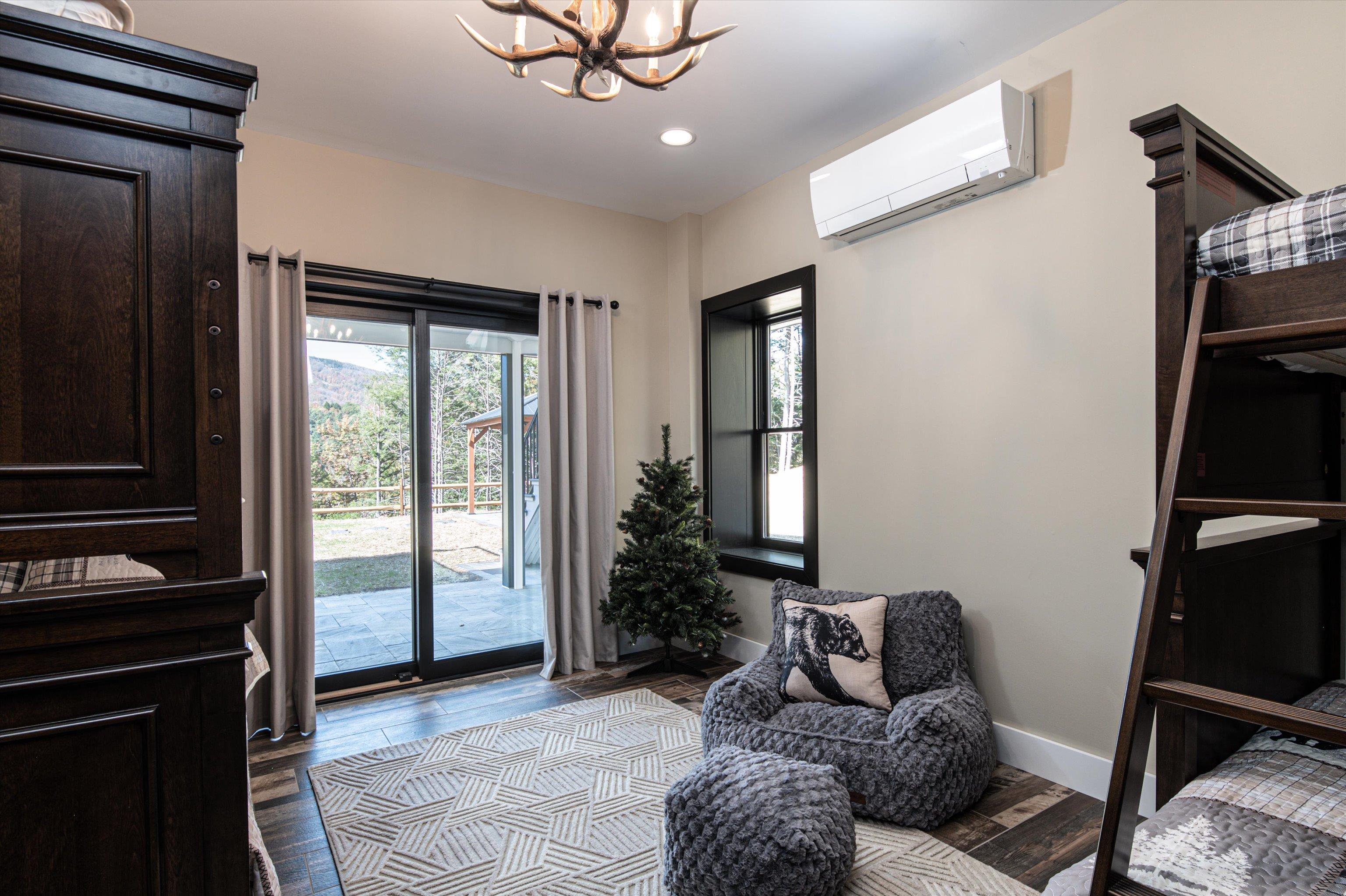 Grand Living on South Hill. Warm and inviting throughout, this new construction home offers all that you need: privacy (on 5 acres), views, outdoor recreation, open floor plan and so much more. Pull into the attached roomy garage to the mud/laundry room. As you enter the custom kitchen with lots of counter space, Viking appliances and center island, you feel the warmth of the home immediately. Sunny dining and living rooms with floor to ceiling gas fireplace, a fantastic Okemo Mountain view and entertaining deck that overlooks a covered hot tub area and a fire pit for friends and family to gather. Both have light bulb strings attached for ambiance. The main level also has a 1/2 bath and a primary bedroom suite with a 2nd gas fireplace in the bathroom. A gorgeous tub and an open, tiled shower give this room a true relaxing spa feel. Mini-splits throughout the home cool you in the summer and warm you in the winter, along with radiant heat flooring. The upper level has 2 bedrooms and 3/4 hall bath, and a loft den. Head down to the lowest level walkout to find a bedroom, 3/4 bath, family room, recreation room with sweet bar, and the utility and storage rooms. Over the garage is a large finished bedroom with a 1/2 bath, perfect for additional guests. Serenity and luxury best describe this picture-perfect home.