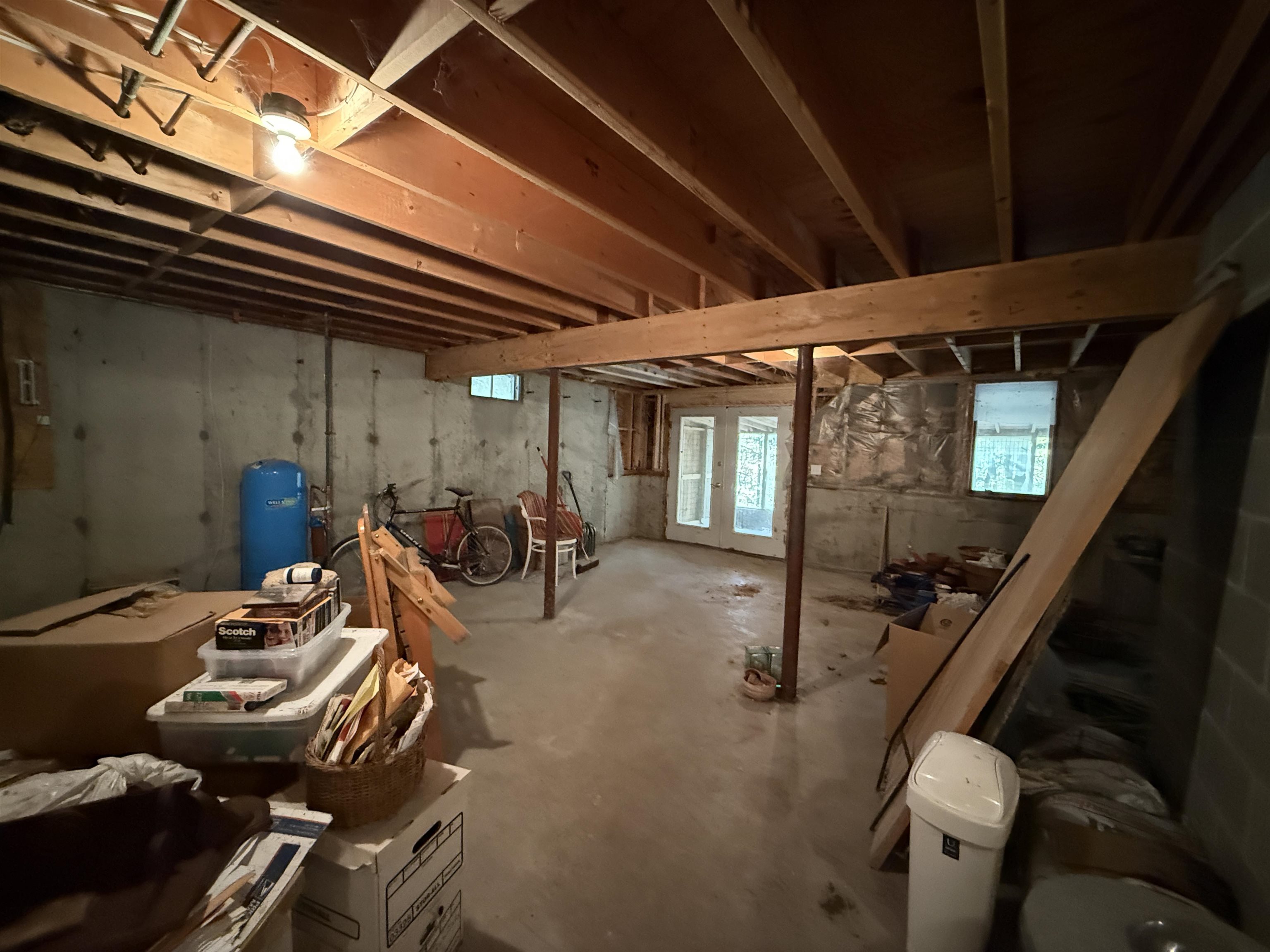 - Concrete, Concrete Floor, Full, Unfinished, Walkout, Interior Access, Exterior Access, Basement Stairs