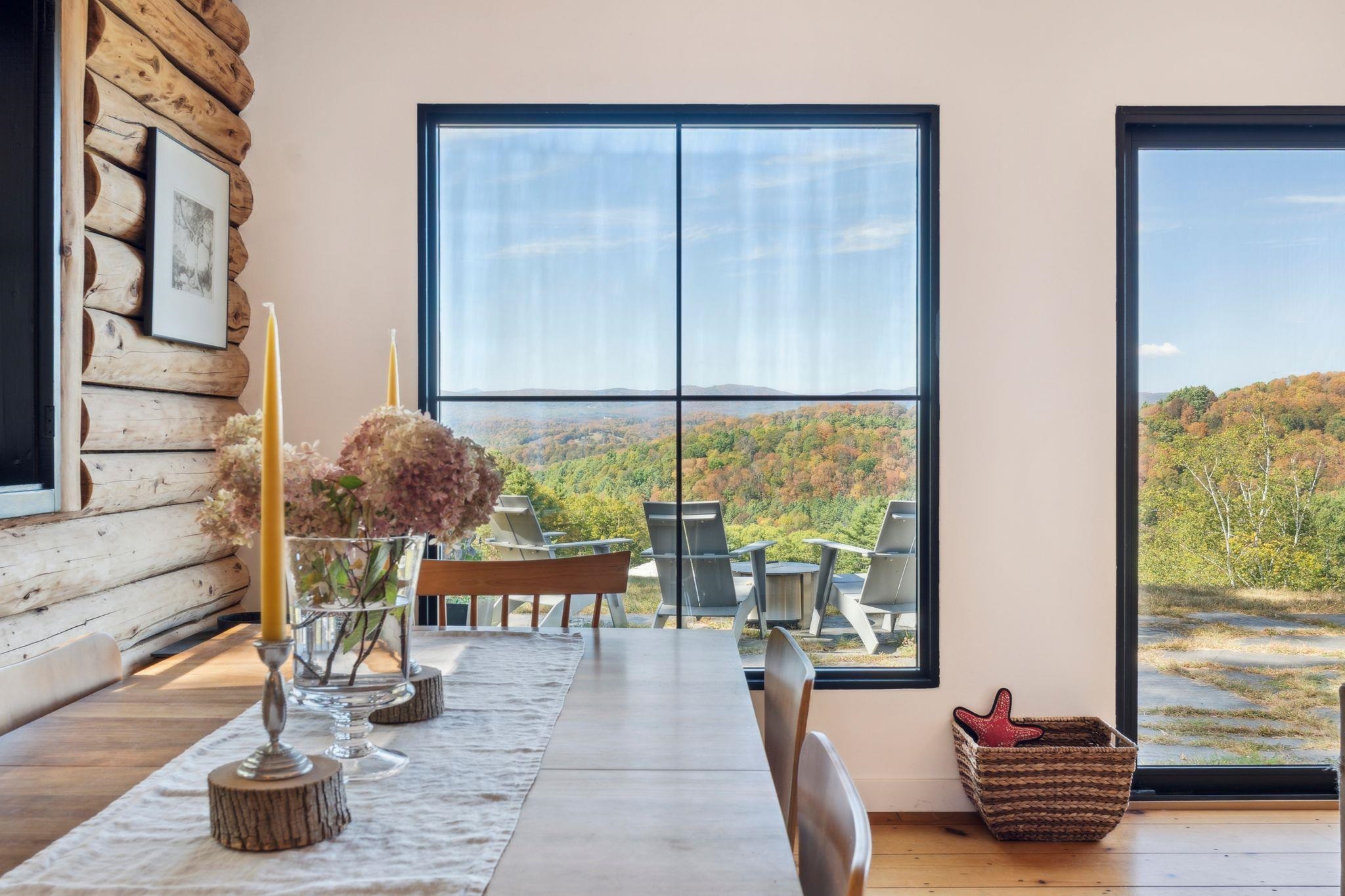 Breathtaking long range views of Killington Peak and Saskadena 6 greet you as you wind your way up to your private slice of Heaven. Situated on nearly 91 acres, this spectacular property offers everything, from the views and open fields to the saltwater pool tucked nicely into the hillside to the trails running throughout the woods and a lovely stone patio aligned perfectly for evening sunsets. Inside, nearly every aspect of the house has been updated. There are four bedrooms including a primary with ensuite bath and two additional full baths. The fully renovated kitchen is open to the dining area which leads to the living room with new floor to ceiling windows overlooking the Pomfret hills and mountains beyond. A stone fireplace anchors the living room, complete with a new insert and chimney liner. Between mini splits in all rooms and radiant floor heat in select areas, this house is fossil fuel free and derives most of its power from 61 onsite solar panels. Two Tesla power walls provide backup in the event of a grid outage. Separate from the main house is a two room cottage that was completely redone and currently set up as a guest bedroom and office, with a half bath inside and a seasonal outdoor shower on the deck. A short trek up through the woods takes you to an open meadow with a small cabin awaiting some finishing touches. Located privately atop the coveted Cloudland neighborhood just minutes from downtown Woodstock and Saskadena 6, this is a must see property.