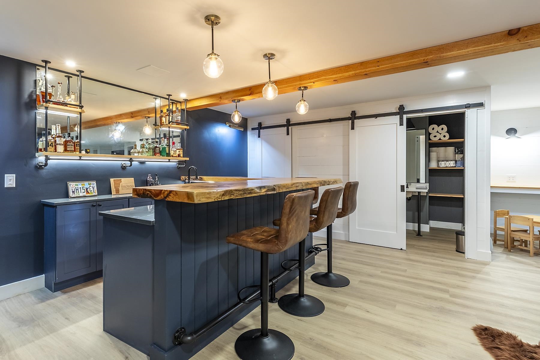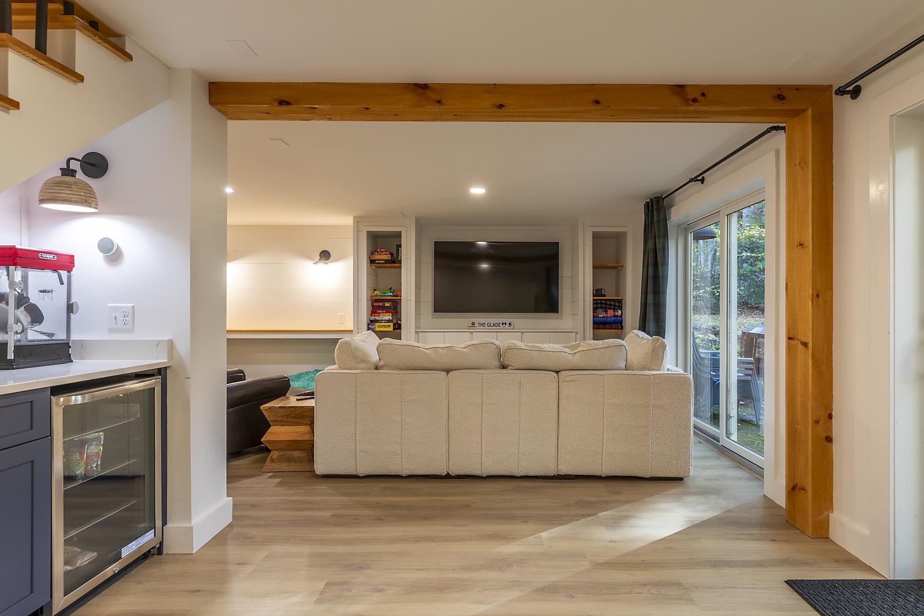 This pristine, updated contemporary home is conveniently located on Mt Ascutney. Beautifully maintained and move in ready. The open concept main level is anchored by a fieldstone wood burning fireplace. The kitchen has plenty of counter space, quality appliances, and classic knotty pine floors running throughout. Two bedrooms, laundry/mudroom, and full bath complete the main level. Moving upstairs there is a spacious primary bedroom and a second BR with a shared 3/4 Bath, and lots of closets and storage. On the lower level the current owners have created an amazing family fun space complete with a media room, and a full on bar area complete with undercounter refrigeration, a glass washer and a very cool wall fireplace. There is also a new half bath. All new, highly efficient mechanicals Easy access to Woodstock, Hanover, I-91, and all regional recreation. All properties on Mt Ascutney are subject to a standard ROFR.