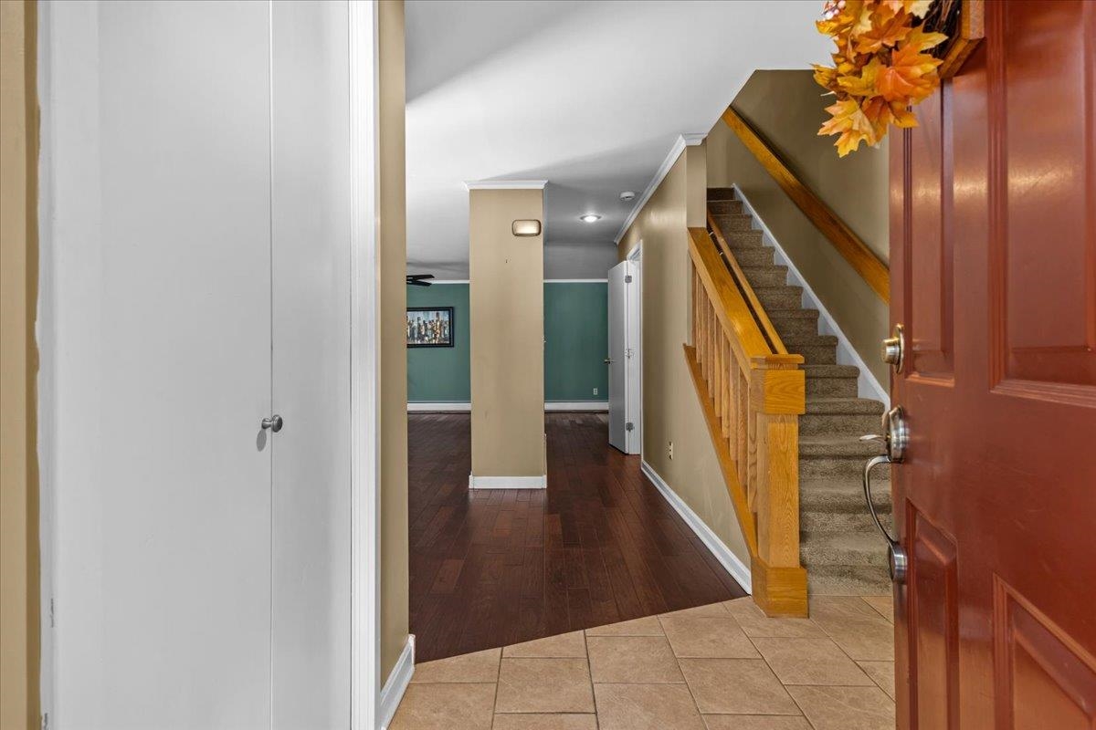 Welcome to this bright and spacious 2-bedroom end unit townhome, tucked away in a prime South Burlington location! Nestled in a peaceful community, this home offers a perfect blend of comfort, convenience, and natural beauty. Come inside to a welcoming foyer complete with hooks and a bench, perfect for organizing coats, boots, and bags. The U-shaped kitchen features a tile backsplash, stainless steel appliances, abundant cabinet space, and a pass-through counter for seamless connection to the open-concept dining and living room. Enjoy your morning coffee with sunshine pouring through the kitchen windows and relax in the afternoon on your private patio, accessible through the living room slider. The living area offers enough space for multiple couches, a TV setup, and even a home office if desired. Built-in surround sound speakers are already mounted and wired for your enjoyment. Upstairs, you'll find a generously sized primary bedroom with a private en suite ¾ bathroom. A second bedroom and full bathroom complete the upper level, while a convenient half bath is located on the main floor. Exciting updates include a brand-new boiler/hot water combo for peace of mind. Outside, enjoy direct access to town nature trails that follow the Potash Brook, just steps from your front door. This move-in-ready home is ideally located just minutes from schools, shopping, dining, I-89 and everything that South Burlington has to offer!