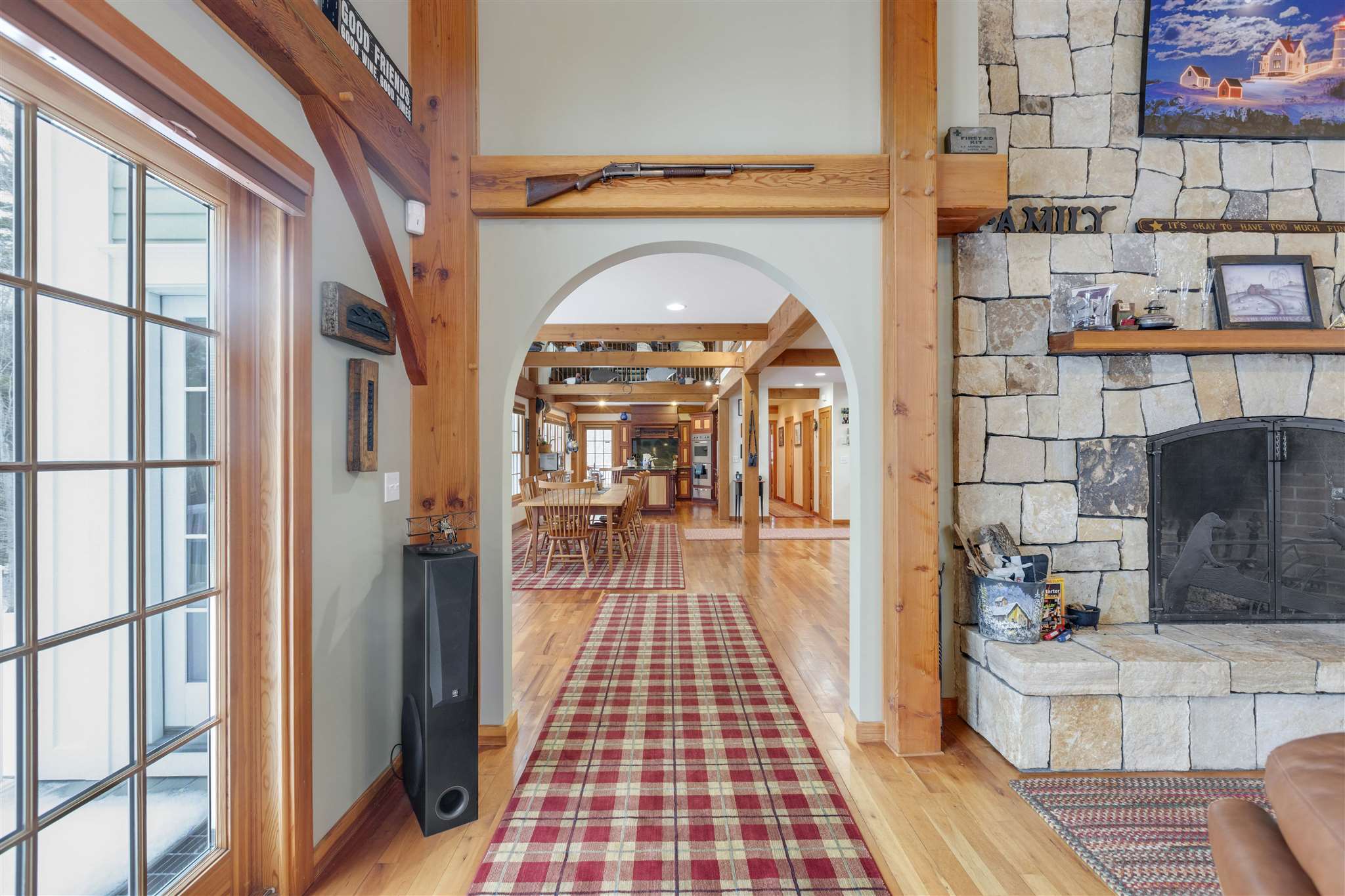 Remarkable getaway/adventure property, this newer, beautifully maintained timberframe residence on 167.5 acres is located just 16 mins to Norwich Village, 20 mins to Hanover and 25 mins to Woodstock. Privately situated on the property, the main residence and attached garage with guest apartment are situated in the middle of a wonderful outdoor playground with miles of trails and an open field/playground behind the house. The approximately 6, 000 sq. ft. Davis timberframe house has vaulted ceilings, open floorplan and features a gourmet kitchen, bar/dining room, large living room and a big fireplace, and a first floor primary bedroom with ensuite bath. The walk-out lower level is currently setup as a game room/den. 4 rooms in the main house are set up as bedrooms (plus the apartment). Excellent mechanicals include a Viessmann furnace and automatic generator. Above the heated 3-car attached garage is a studio apartment. An extensive private trail system runs throughout the property perfect for hiking, snowmobiles, ATV's etc. This is a wonderful private outdoor playground featuring a professionally designed Sporting Clay Course and Skeet Field! Abutting, separate guest/caretakers house on 2.5 acres also available additionally. See property website. Easy access to Hanover/Norwich, the VA, DHMC and only 25 mins to Woodstock VT.
