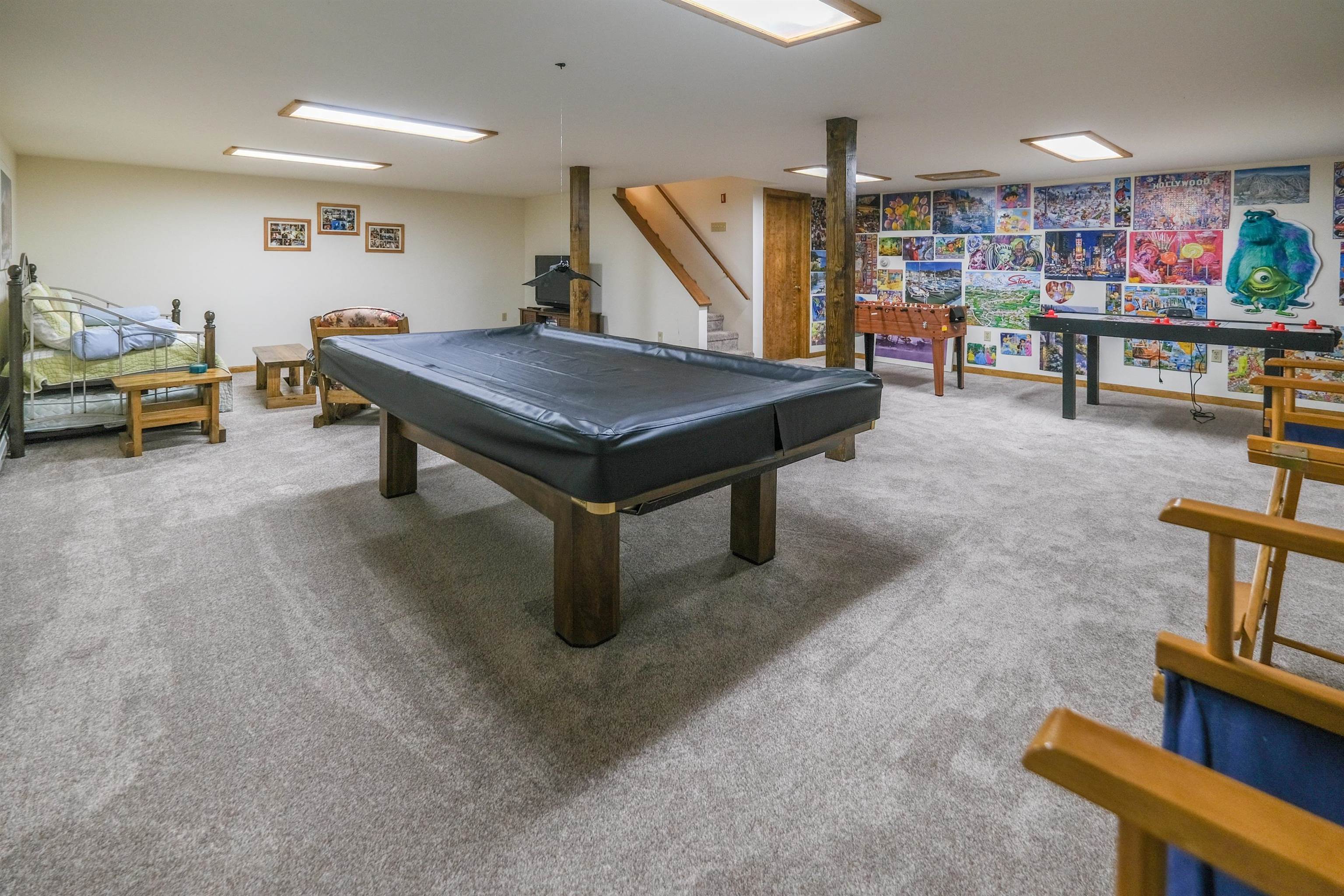 - Finished, Insulated, Interior Stairs, Interior Access, Basement Stairs