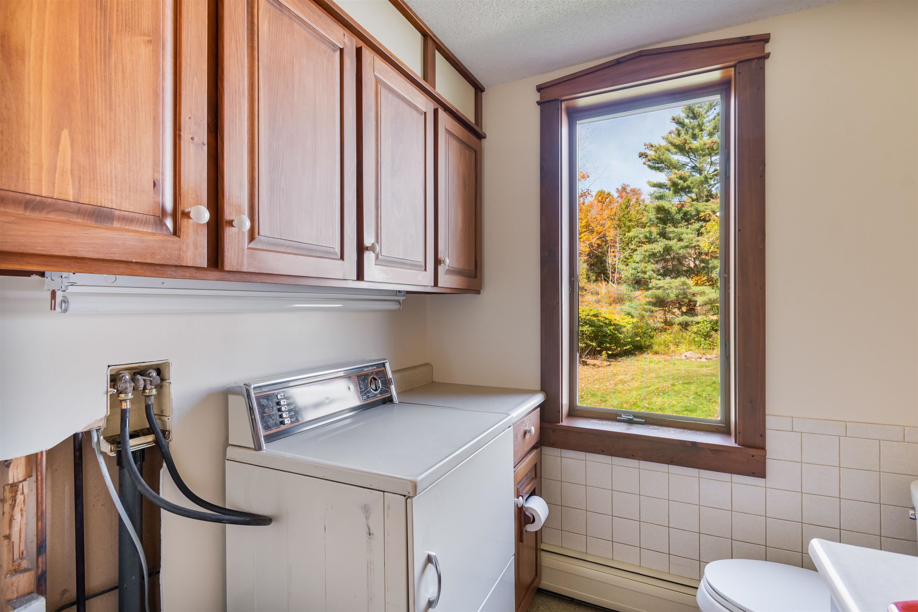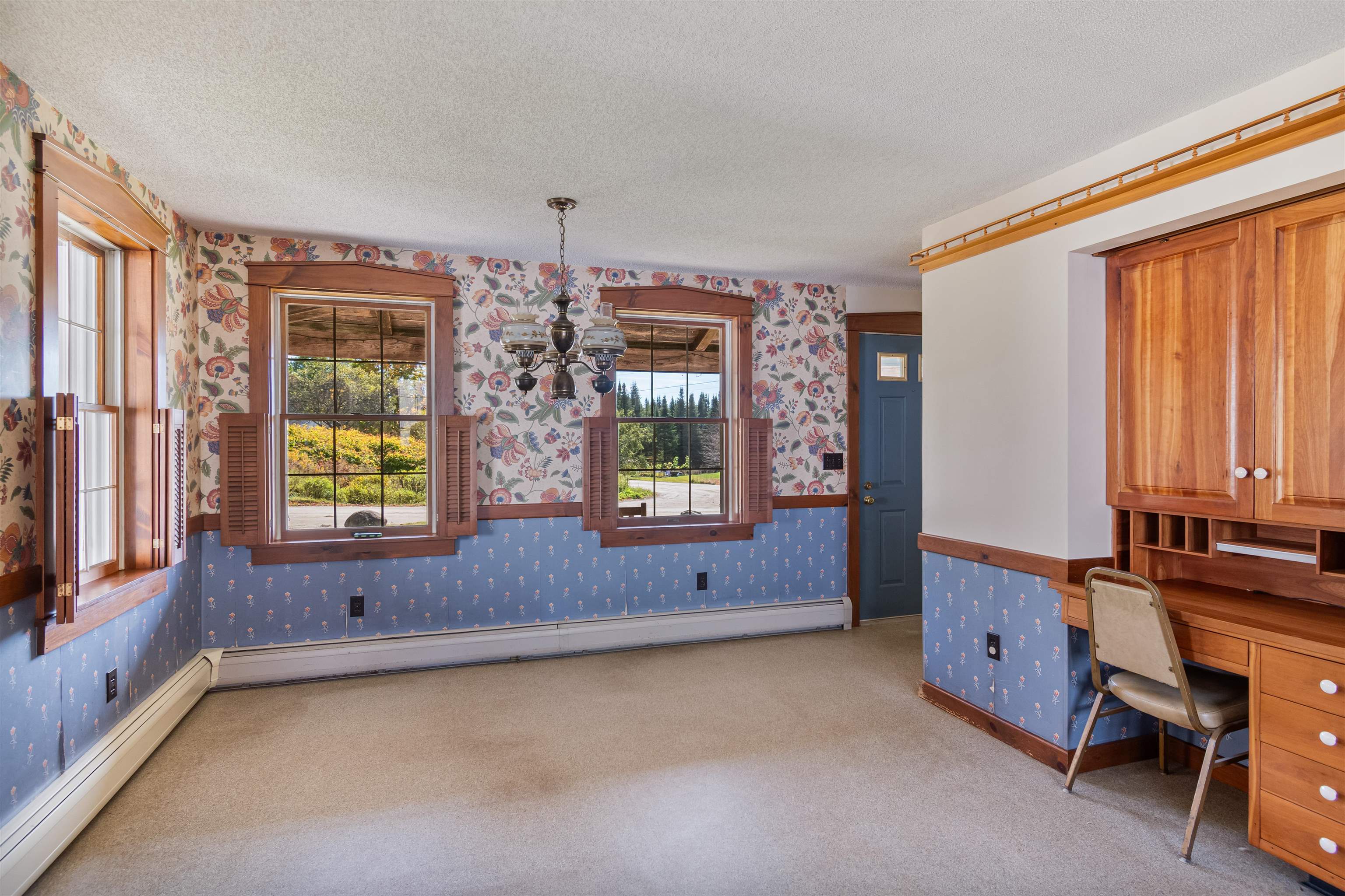 - Central Vacuum, Ceiling Fan, Dining Area, Kitchen/Dining, Natural Light, Natural Woodwork, Indoor Storage, 1st Floor Laundry