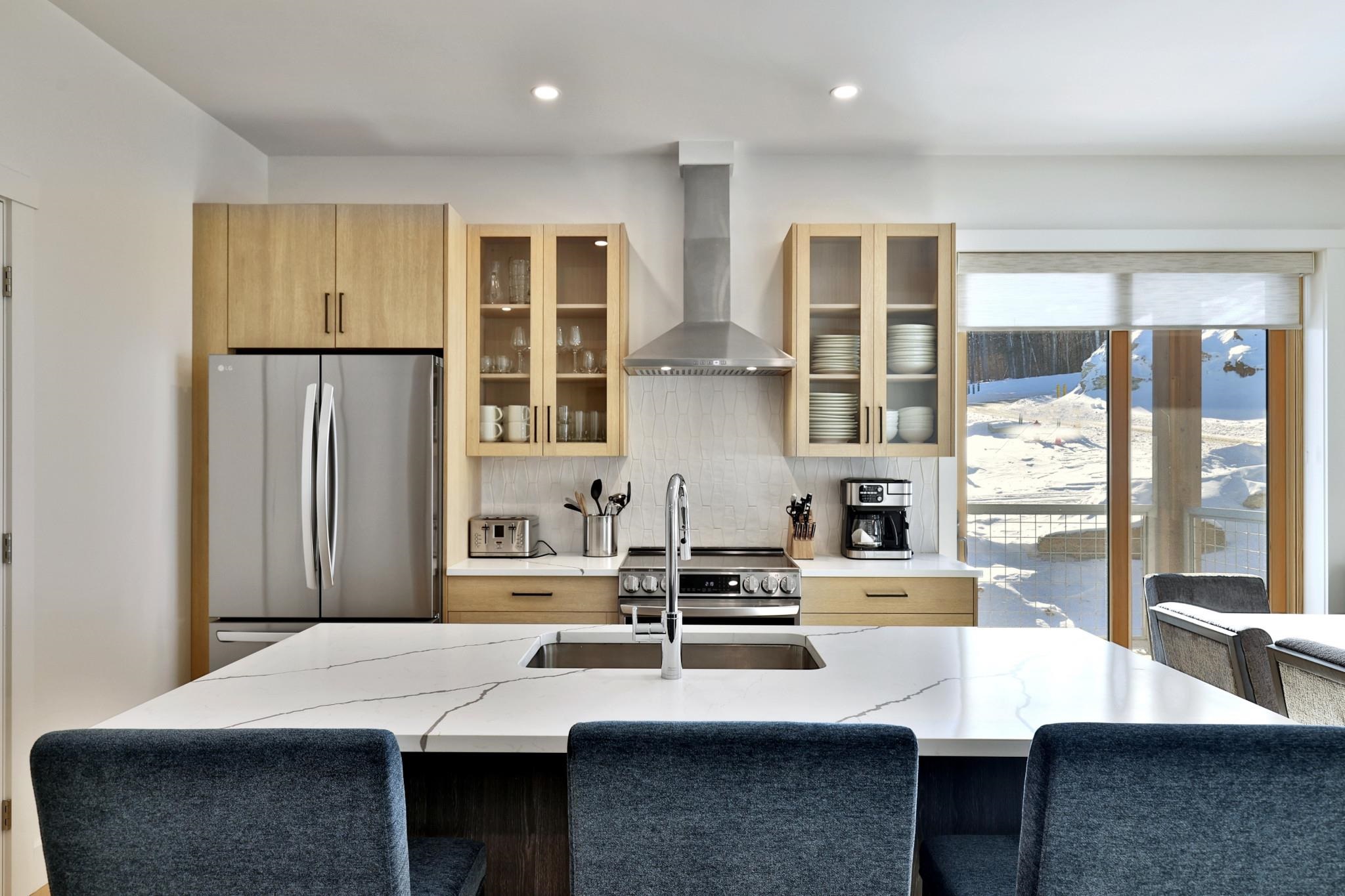 Welcome to SouthFace Village, Okemo Mountain’s newest slope-side community. This fully furnished, end-unit condo offers the ideal blend of modern comfort and mountain charm, ready for immediate occupancy. With four bedrooms and three bathrooms, this spacious unit boasts natural light and unrivaled access to the slopes, including the on-site Sunshine Quad chairlift for SouthFace owners. Key features include a high-end kitchen with premium appliances and quartz countertops, hardwood flooring and a gas fireplace to enjoy apres-ski moments. There is dedicated owner parking with a convenient storage locker. Energy-efficient construction with sustainable materials and superior craftsmanship. After a day on the slopes, unwind in the spa hot tub, take a dip in the outdoor heated pool, or relax with a glass of wine in the owner’s lounge area. For those who prefer to explore off the slopes, over 200 acres of pristine land are available for hiking and snowshoeing year-round. Set at an elevation of 2, 000 feet in the scenic Green Mountains, SouthFace Village is a community designed for the ultimate mountain lifestyle. Whether you're skiing, hiking, or simply enjoying the breathtaking views, this is an ideal retreat for all seasons.