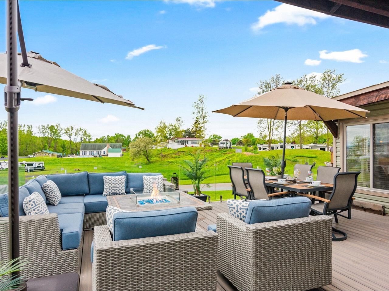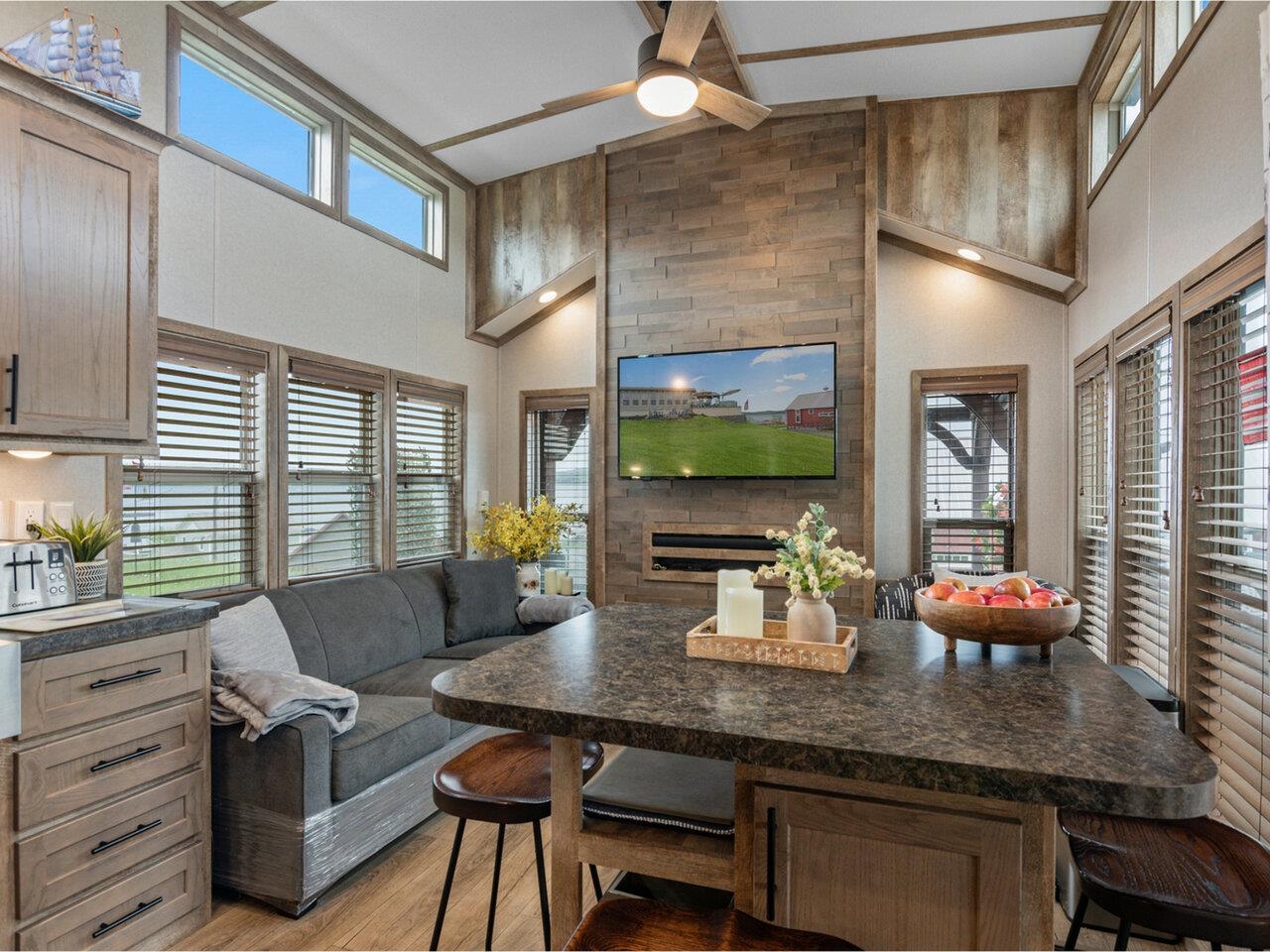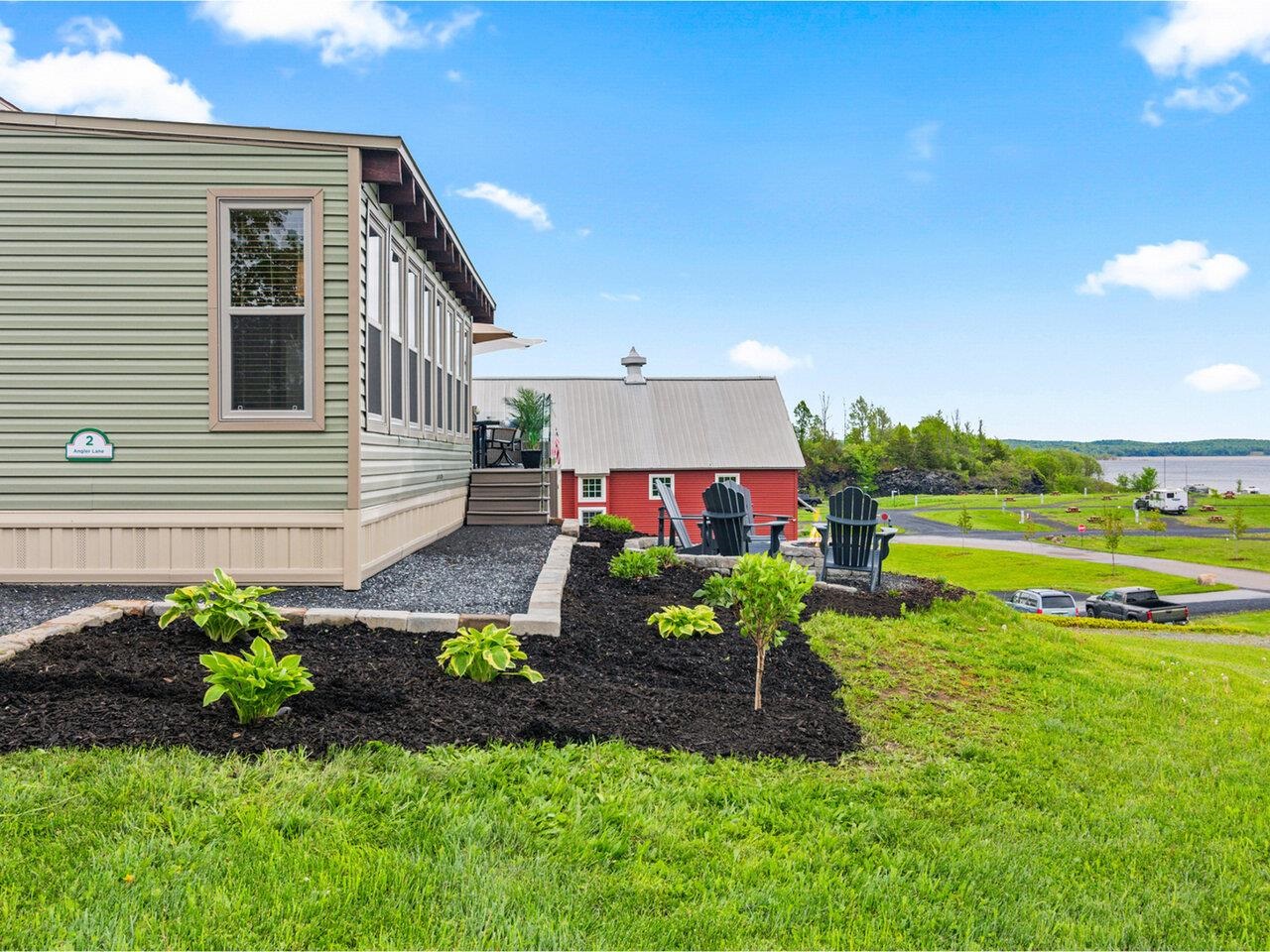Tucked away in the Champlain Islands, where sunrises and sunsets paint the sky, this spectacular seasonal cottage at Apple Island Resort is a true summer sanctuary! With room to gather, unwind, and host, this partially furnished cottage - complete with 2 bedrooms, 2 bathrooms, and a loft adapts beautifully to what each day brings. The kitchen exudes modern flair complete with an island, farmhouse sink, stainless steel appliances, and crown molding - flowing into an elevated living room with a cozy electric fireplace. The sunroom is a favorite gathering spot, perfect for cozy nights in, with an adjoining guest room tucked behind a stylish barn door. Step outside to a glass-enclosed deck designed to shield you from the breeze without blocking the view - ideal for relaxing evenings by the built-in gas fireplace. Below, a custom stone patio and fire pit invite summer cookouts and starlit stories. A dedicated space under the deck holds kayaks for days on the lake. A perennial garden graces the front of the home. A 10' x 6'11" shed adds both practicality and convenience with a stacked washer and dryer, and a separate electrical panel for the shed and air conditioning. Modern, welcoming, and beautifully designed, this cottage is the perfect place to spend your summer at Apple Island Resort! The seasonal lease fee is $9, 210. Seasonal resort open 5/1 to 10/20.