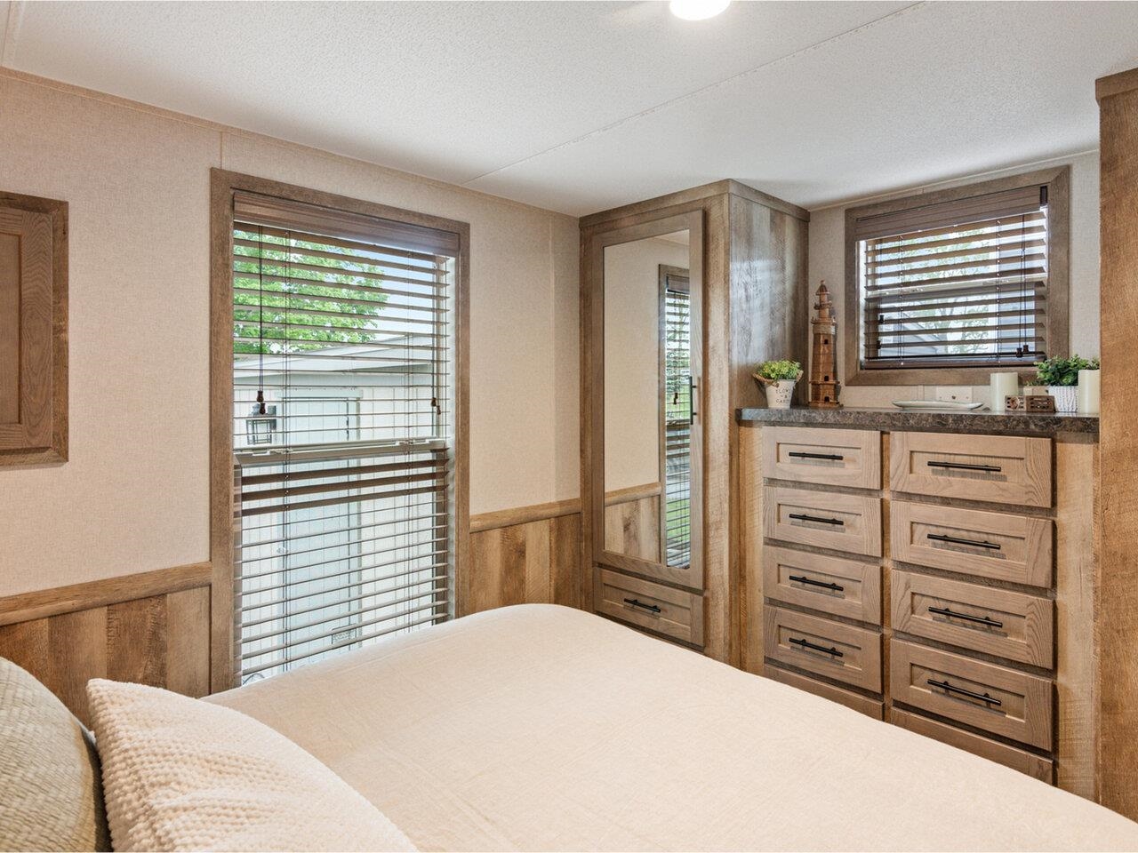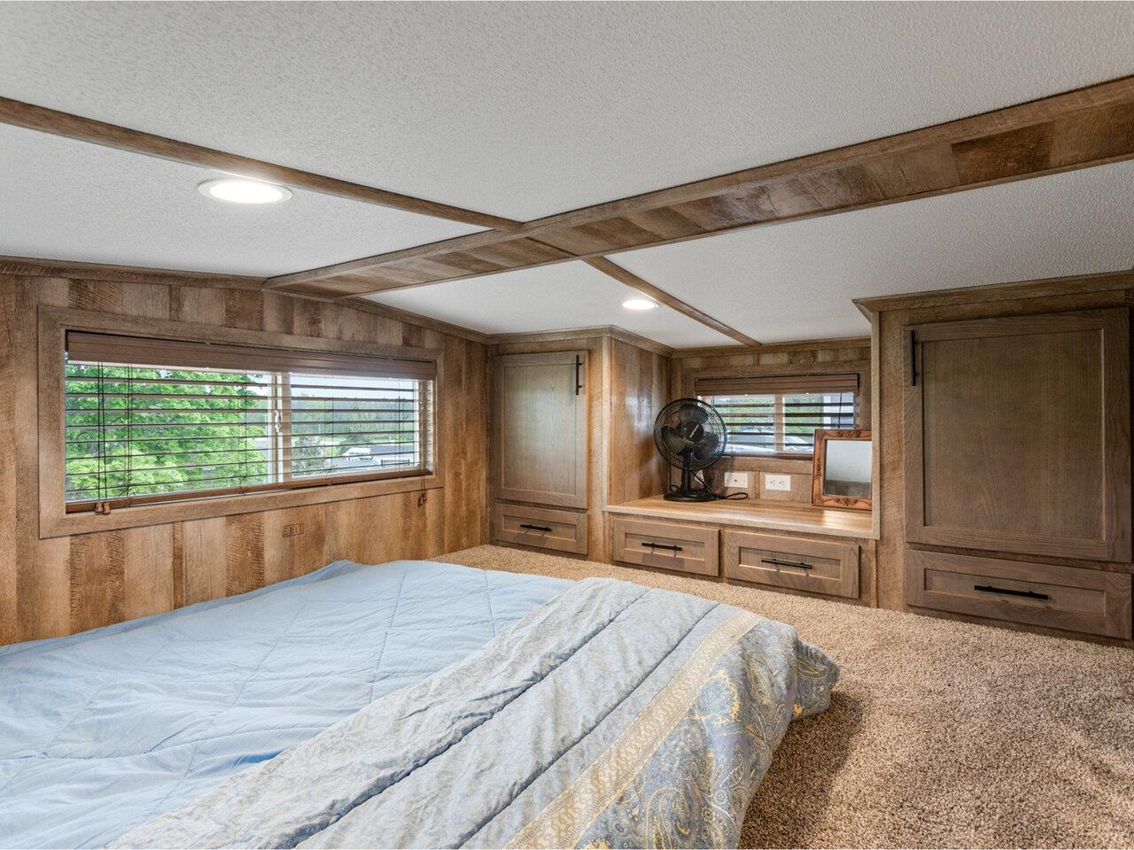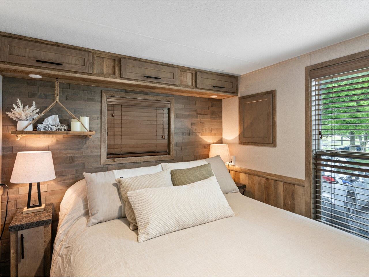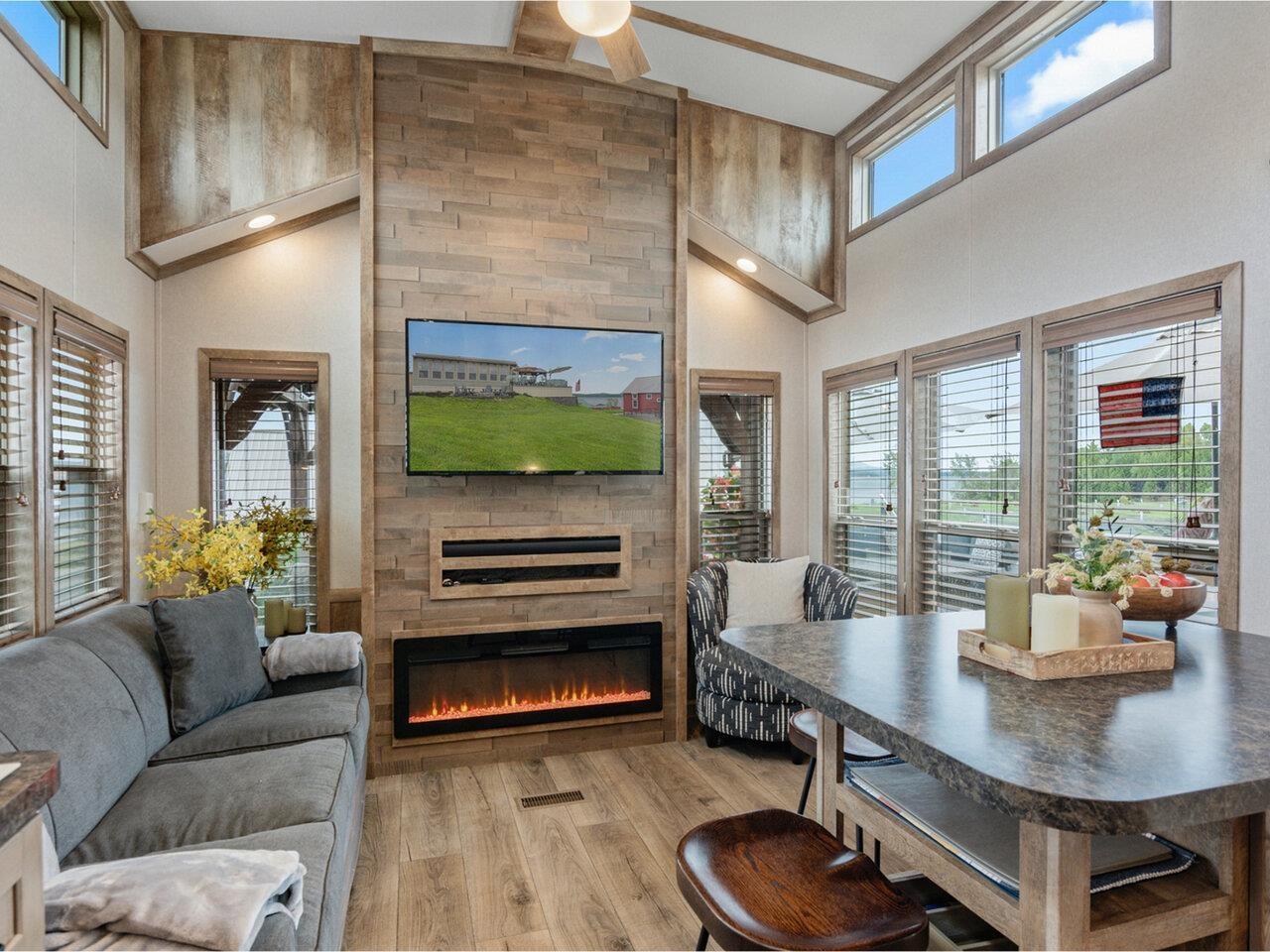 Tucked away in the Champlain Islands, where sunrises and sunsets paint the sky, this spectacular seasonal cottage at Apple Island Resort is a true summer sanctuary! With room to gather, unwind, and host, this partially furnished cottage - complete with 2 bedrooms, 2 bathrooms, and a loft adapts beautifully to what each day brings. The kitchen exudes modern flair complete with an island, farmhouse sink, stainless steel appliances, and crown molding - flowing into an elevated living room with a cozy electric fireplace. The sunroom is a favorite gathering spot, perfect for cozy nights in, with an adjoining guest room tucked behind a stylish barn door. Step outside to a glass-enclosed deck designed to shield you from the breeze without blocking the view - ideal for relaxing evenings by the built-in gas fireplace. Below, a custom stone patio and fire pit invite summer cookouts and starlit stories. A dedicated space under the deck holds kayaks for days on the lake. A perennial garden graces the front of the home. A 10' x 6'11" shed adds both practicality and convenience with a stacked washer and dryer, and a separate electrical panel for the shed and air conditioning. Modern, welcoming, and beautifully designed, this cottage is the perfect place to spend your summer at Apple Island Resort! The seasonal lease fee is $9, 210. Seasonal resort open 5/1 to 10/20.