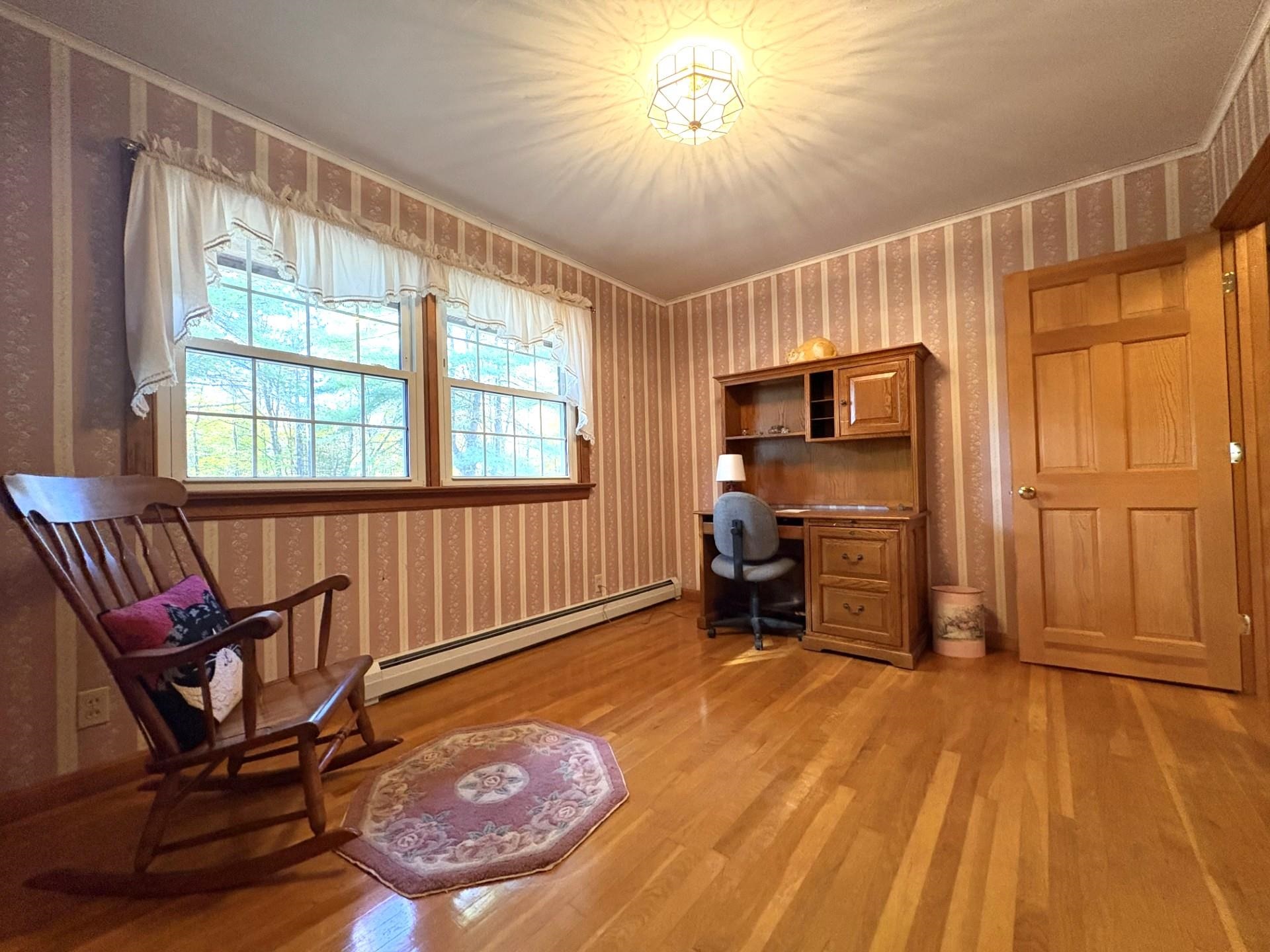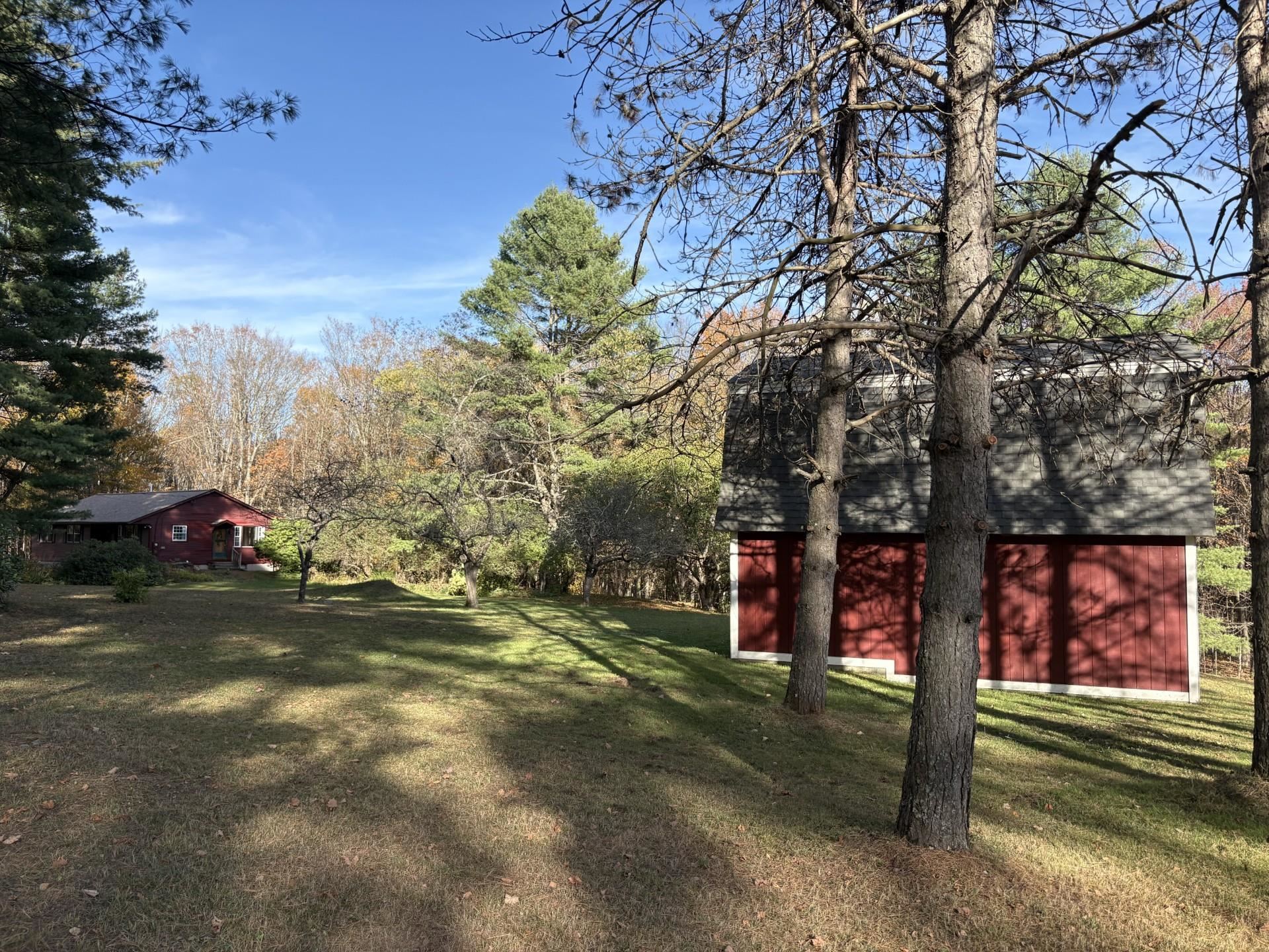 Looking for a little slice of picturesque, Vermont to call your own? Just off a town-maintained dirt road, this 3-bedroom, 2 bath ranch sits on a 10-acre lot, near Maple Corners in Calais, Vermont. Pull up to 668 W County Road and enter from either side of the semicircular driveway. Take a moment to soak in this beautiful property and then head inside. On the first floor you'll find the dining room, kitchen, living room, 3 bedrooms and 2 baths (one off the primary bedroom). Downstairs, you'll find the washer and dryer, the utilities and lots of storage space. At the back of the house is an enclosed deck. You can access this space from either the dining room filled with natural light or the kitchen. Enjoy it year-round, it's heated! On the property is another building lovingly referred to as "the barn". It's the perfect place to store outdoor tools and yard equipment. The upstairs area is a blank canvas, to use however you see fit. If you love nature, you'll enjoy watching the woodpeckers drumming and foraging; soaking up the sun or shade (depending where on the property you are), picking apples from the apple trees or blueberries from the blueberry bushes. Come spring the gardens will bloom, the trees will fill out, and this country setting will blossom. Need more nature? Visit Curtis Pond, approximately a mile away. This property got a NEW roof in 2025. Want to see this home in person? Please consider joining us for the OPEN HOUSE Saturday 10/11/25 from 9:00-12:00
