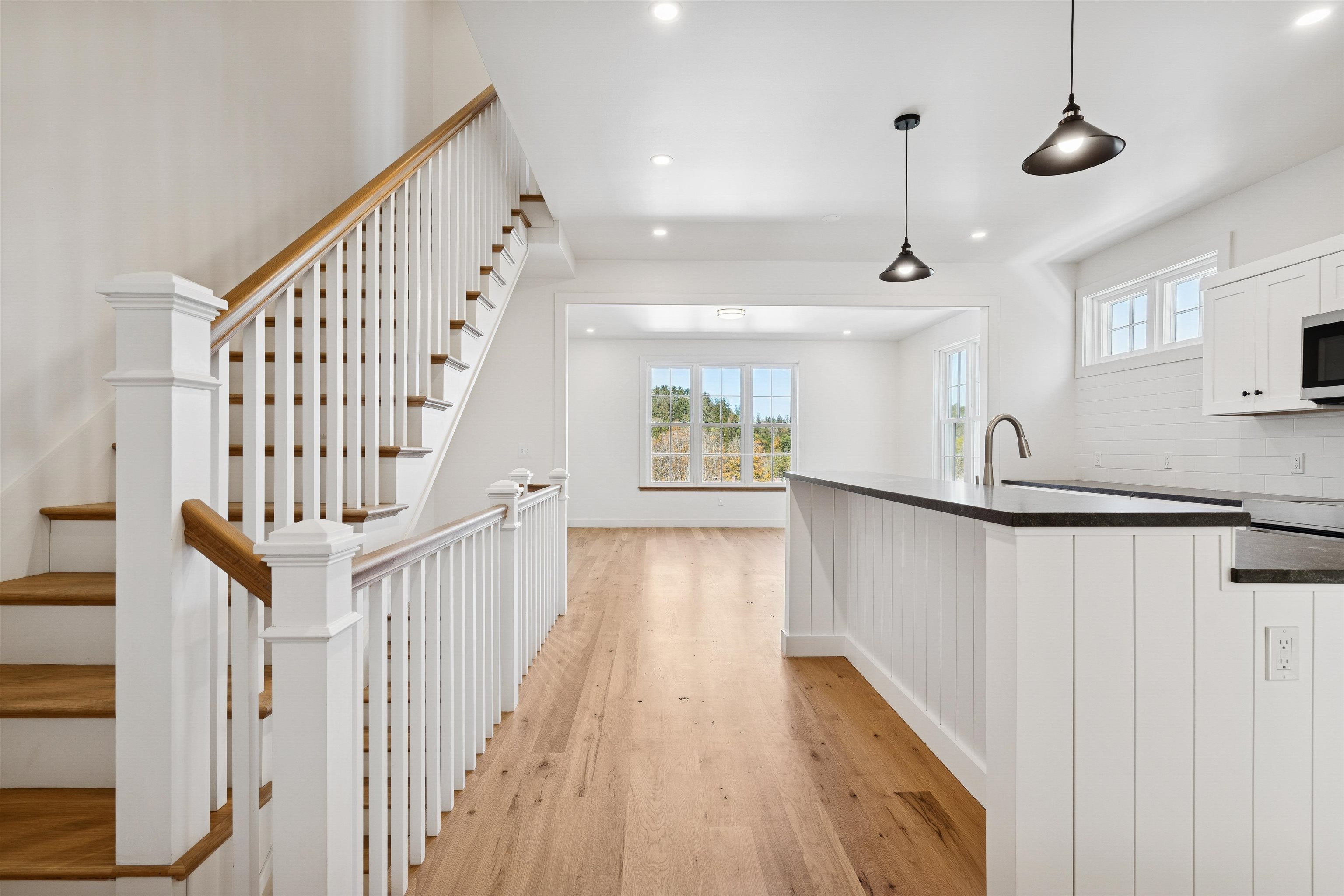 Introducing the Mt Peg Condos – Beautifully situated at the foot of Mt. Peg in the Village of Woodstock! Rare opportunity to enjoy a turn-key, new construction condo in a prime location that offers ease of access to and year-round enjoyment of a plentitude of options for recreating, dining, shopping, theatre, and the arts. A light-filled main level interior with white oak flooring sets the stage for the open kitchen/dining/living area. The centrally located kitchen offers copious counter space and a spacious island for dining and food prep all of which are detailed with handsome jet mist granite counter tops. An office/media room and half bath complete the main level. The upper level continues with the white oak flooring and offers two ensuite bedrooms. A third bedroom, full bath, laundry room, and storage room complete the walkout lower level. Take in captivating views of Mt. Tom and the Marsh-Billings-Rockefeller National Park from every level of the condo. Hike, bike, and ski the Mt. Peg trails and enjoy a variety of fine dining options just outside your door. Please note that all interior photos are of the end Unit D, and some photos are virtually staged. Units A and D are end units, and Units B and C are interior units. Showings begin at Public Open Houses on Saturday Oct 11 and Sunday Oct 12 from 1 - 3pm.