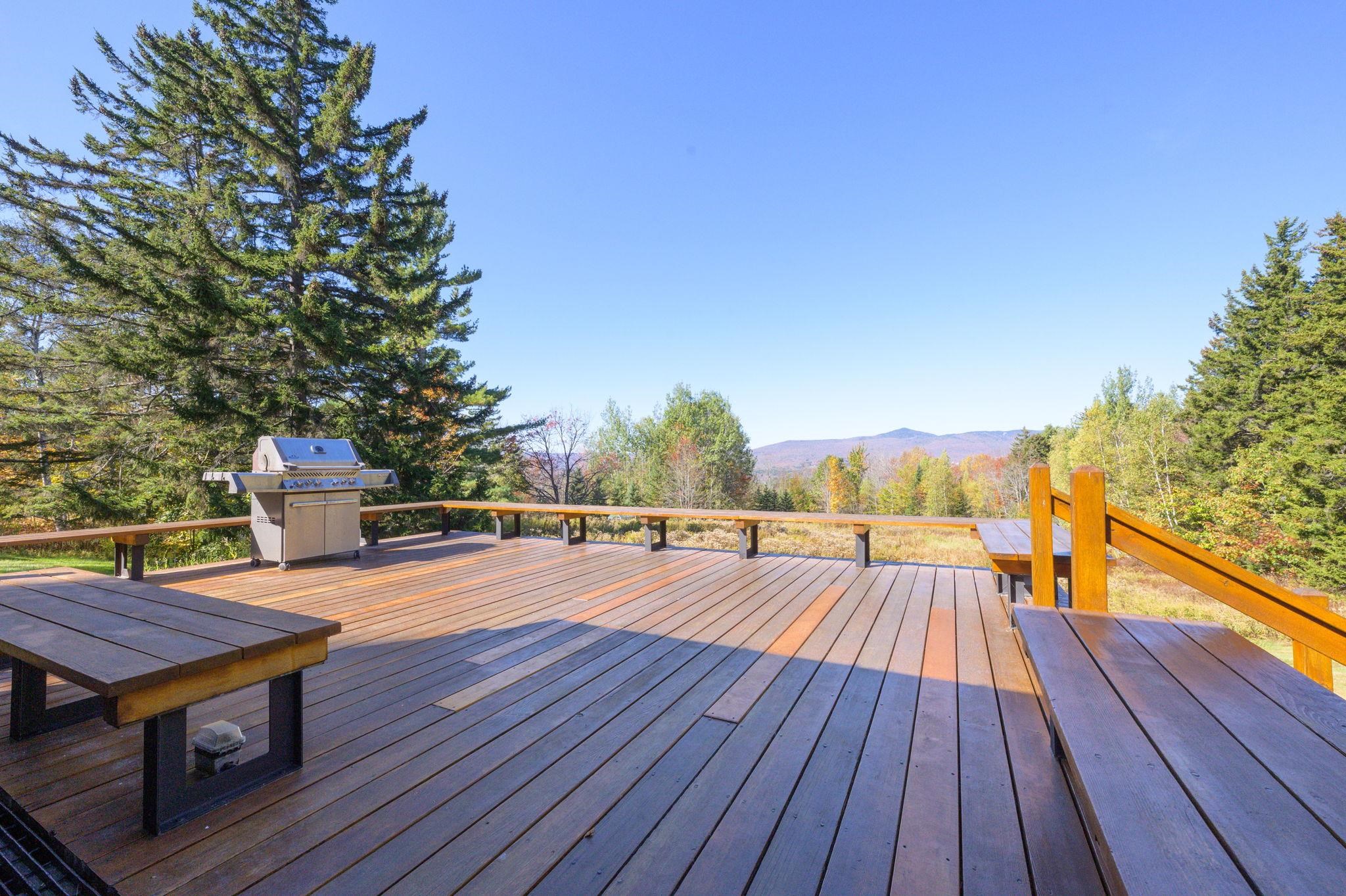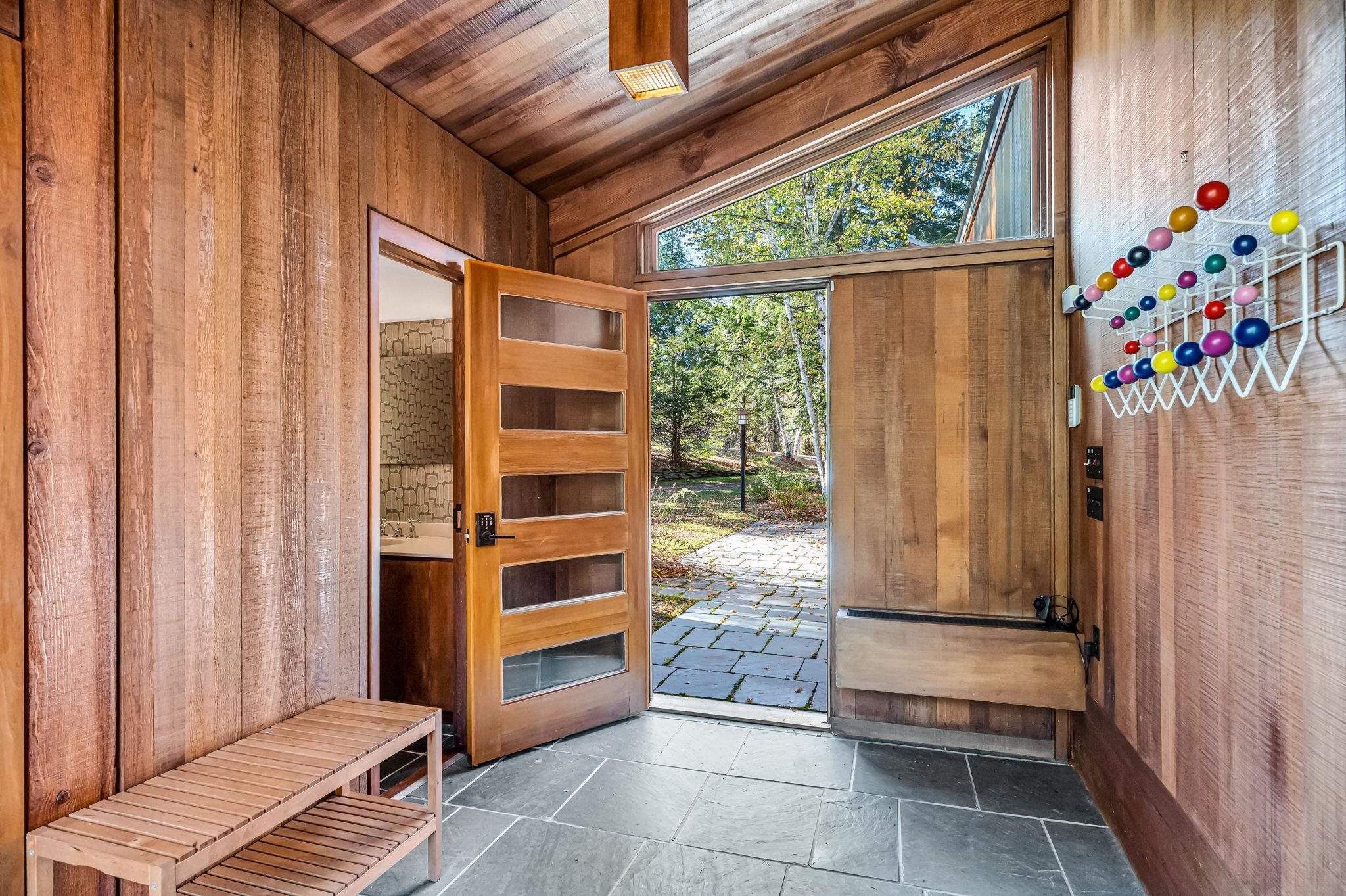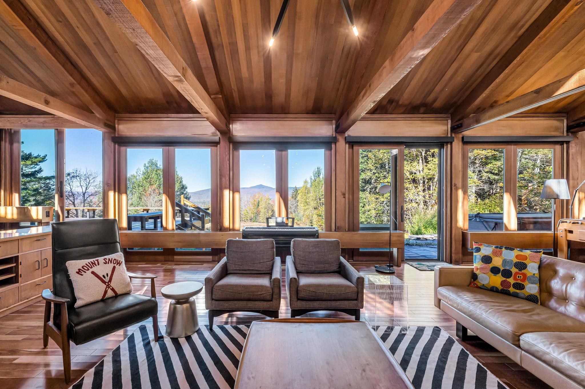 Experience exceptional and elegant Vermont living at this contemporary retreat perched on just over 12 picturesque acres with breathtaking views of Haystack Mountain. This thoughtfully crafted home features quality materials throughout, with striking cedar exterior, remote-controlled shades, and a metal standing seam roof. The main level offers easy living with two en-suite bedrooms, plus two additional bedrooms and full bath, all centered around a spacious living room with vaulted ceilings, large stone fireplace and natural light. An attached oversized garage includes a finished office space above with its own bathroom. Outdoor enthusiasts will appreciate the meadows, mature trees, perennial gardens, and stone walls surrounding the property. Unwind in the hot tub while taking in the mountain views, or explore the multiple stone patios, deck, greenhouse, and a fenced-in chicken coop. The detached barn offers endless possibilities—swing open the doors and transform it into a serene yoga or Pilates studio with sweeping mountain views. A perfect setting for wellness, creativity, or entertaining in harmony with the landscape. The beautifully crafted replica treehouse and rock-climbing wall add a whimsical touch. Located close to the shops and restaurants of Wilmington and a short drive to Mount Snow and the Hermitage ski resorts this property blends comfort, adventure, and unique charm in one spectacular offering.