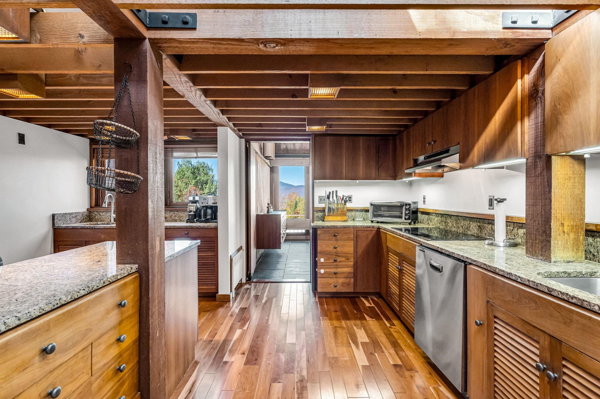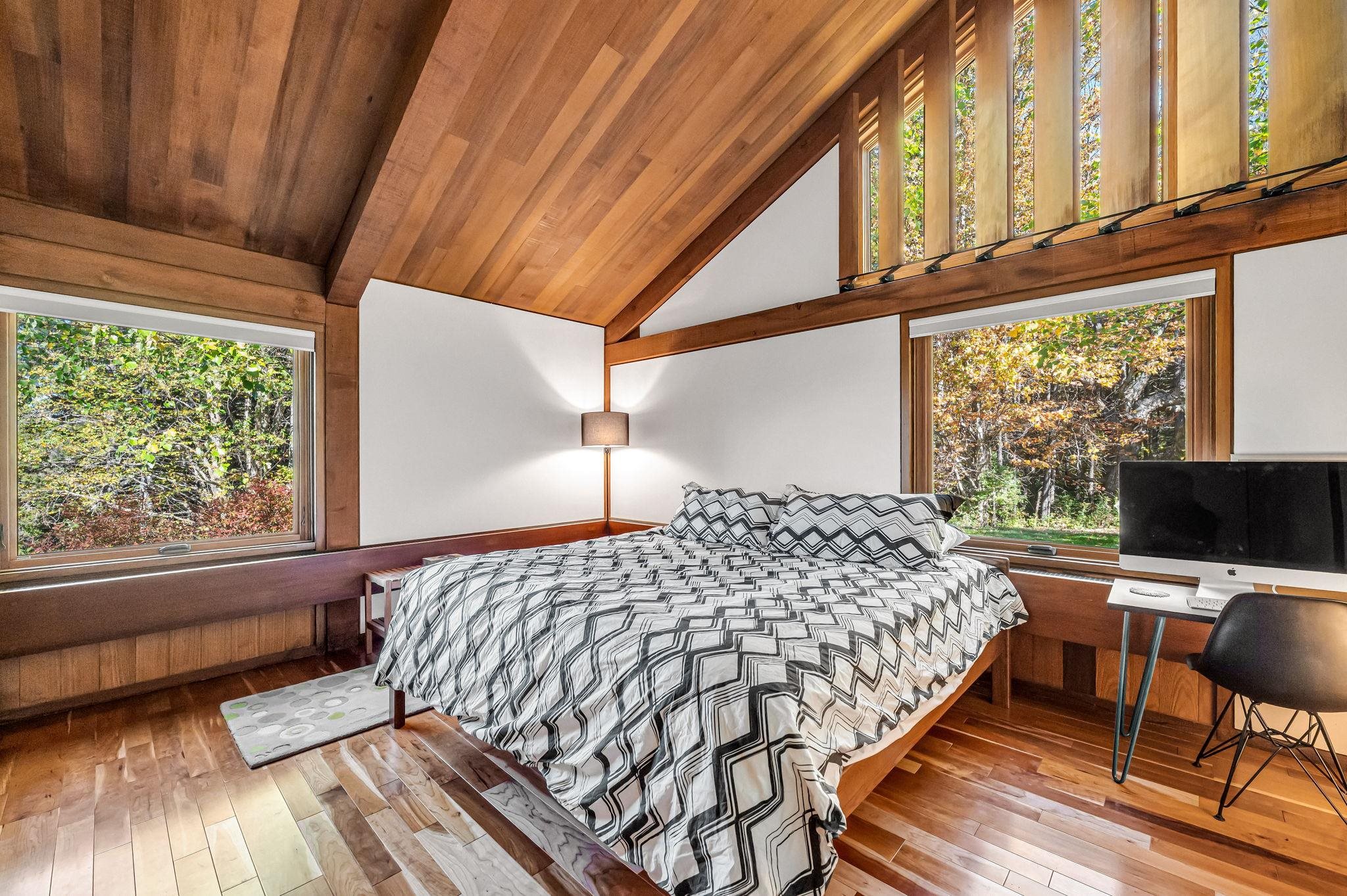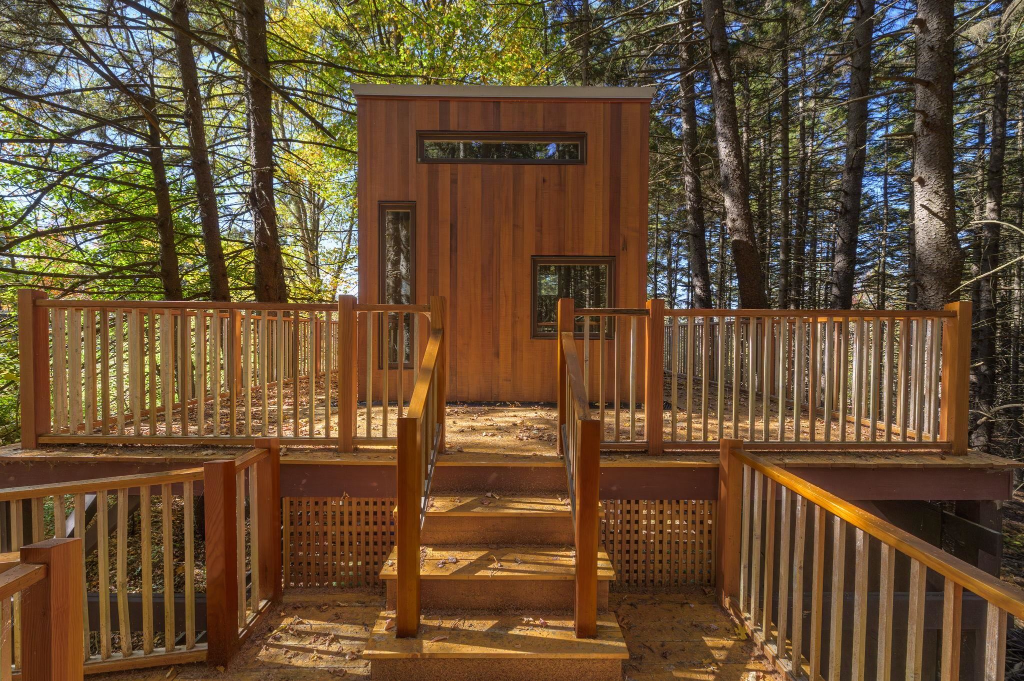 Experience exceptional and elegant Vermont living at this contemporary retreat perched on just over 12 picturesque acres with breathtaking views of Haystack Mountain. This thoughtfully crafted home features quality materials throughout, with striking cedar exterior, remote-controlled shades, and a metal standing seam roof. The main level offers easy living with two en-suite bedrooms, plus two additional bedrooms and full bath, all centered around a spacious living room with vaulted ceilings, large stone fireplace and natural light. An attached oversized garage includes a finished office space above with its own bathroom. Outdoor enthusiasts will appreciate the meadows, mature trees, perennial gardens, and stone walls surrounding the property. Unwind in the hot tub while taking in the mountain views, or explore the multiple stone patios, deck, greenhouse, and a fenced-in chicken coop. The detached barn offers endless possibilities—swing open the doors and transform it into a serene yoga or Pilates studio with sweeping mountain views. A perfect setting for wellness, creativity, or entertaining in harmony with the landscape. The beautifully crafted replica treehouse and rock-climbing wall add a whimsical touch. Located close to the shops and restaurants of Wilmington and a short drive to Mount Snow and the Hermitage ski resorts this property blends comfort, adventure, and unique charm in one spectacular offering.