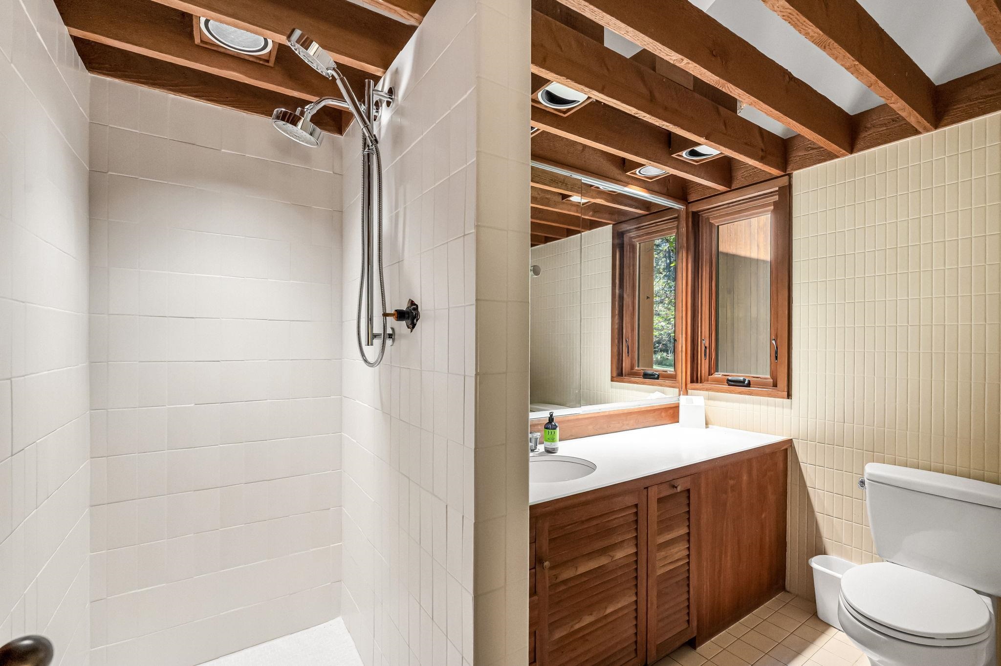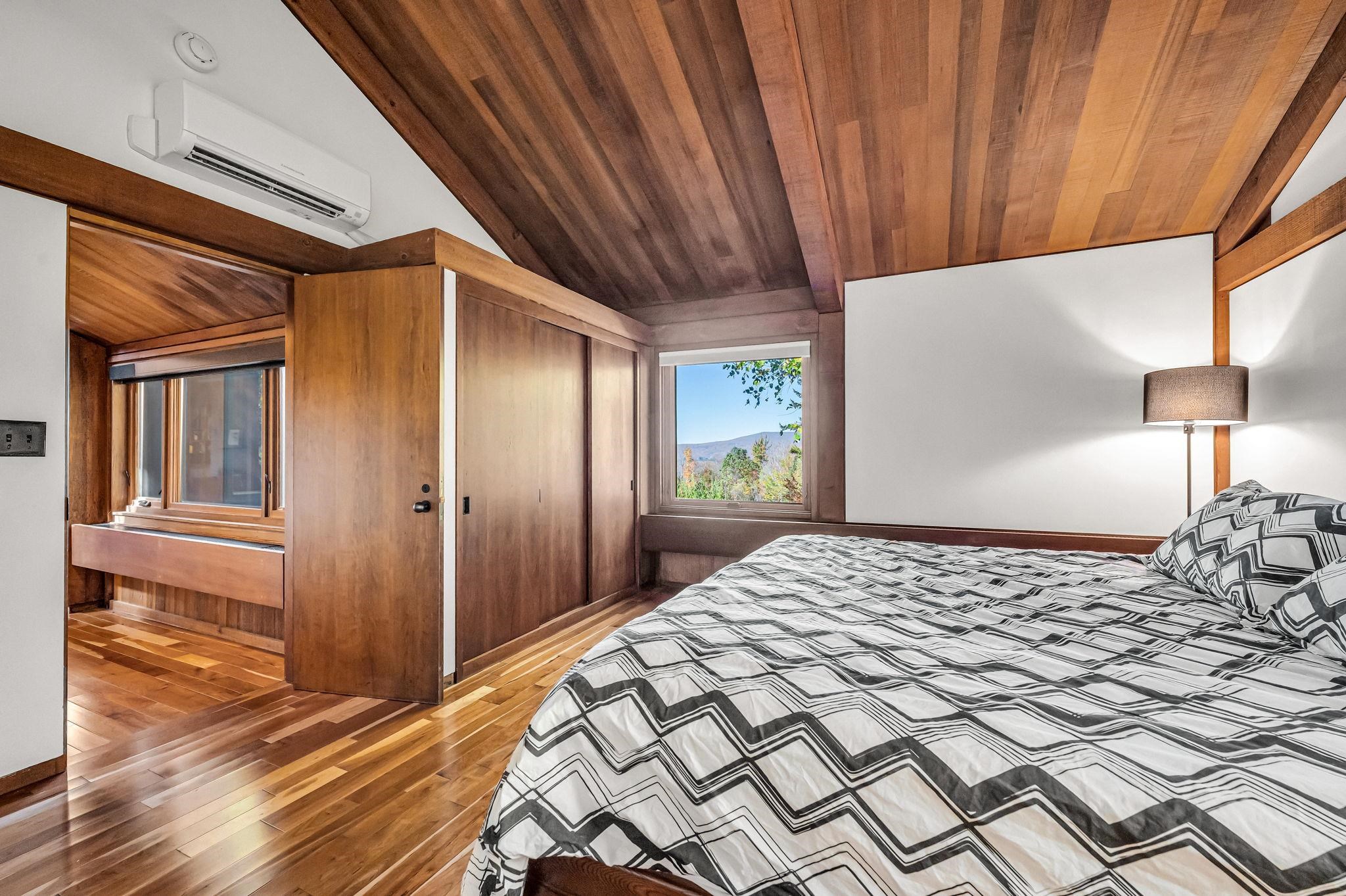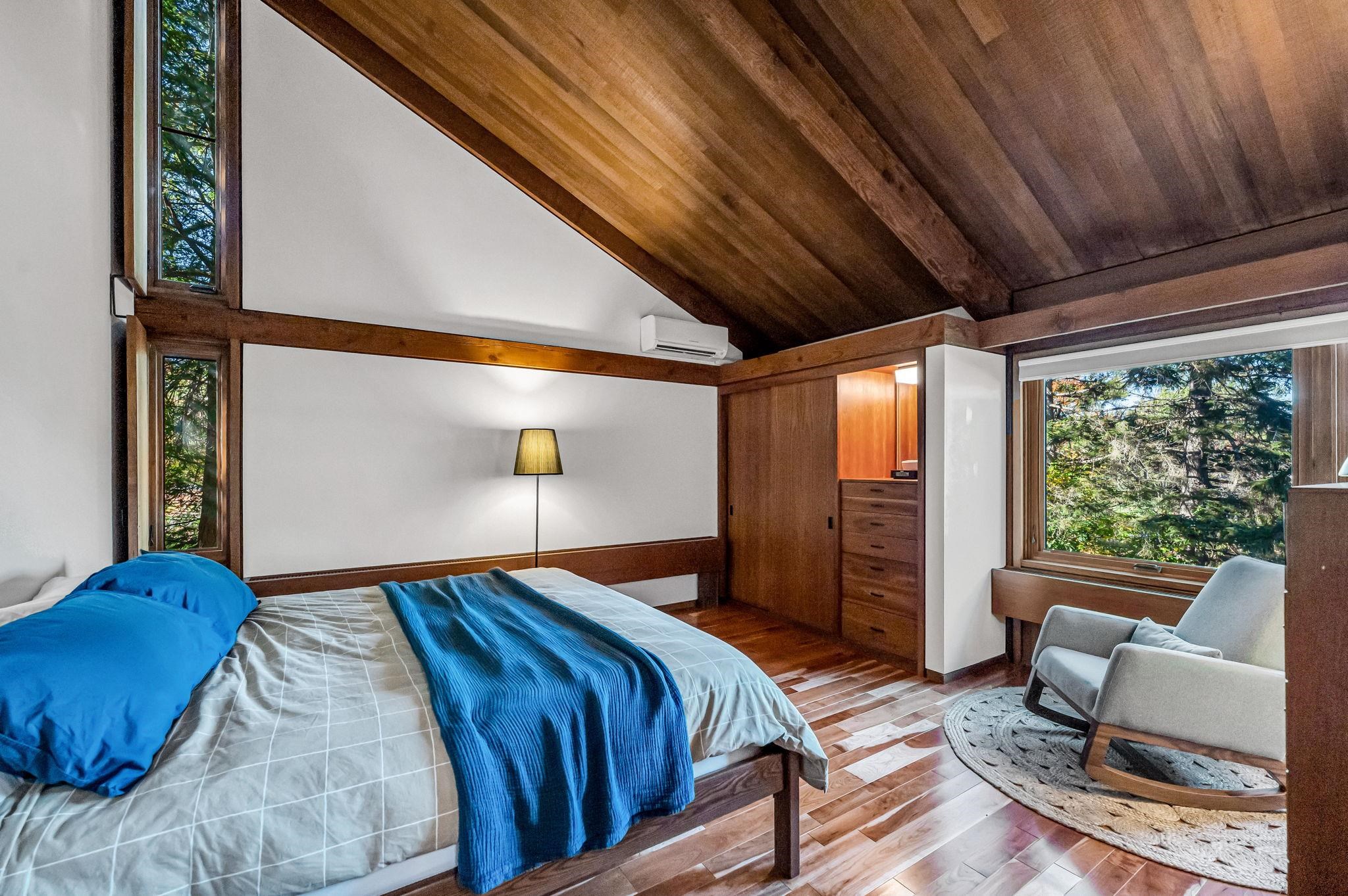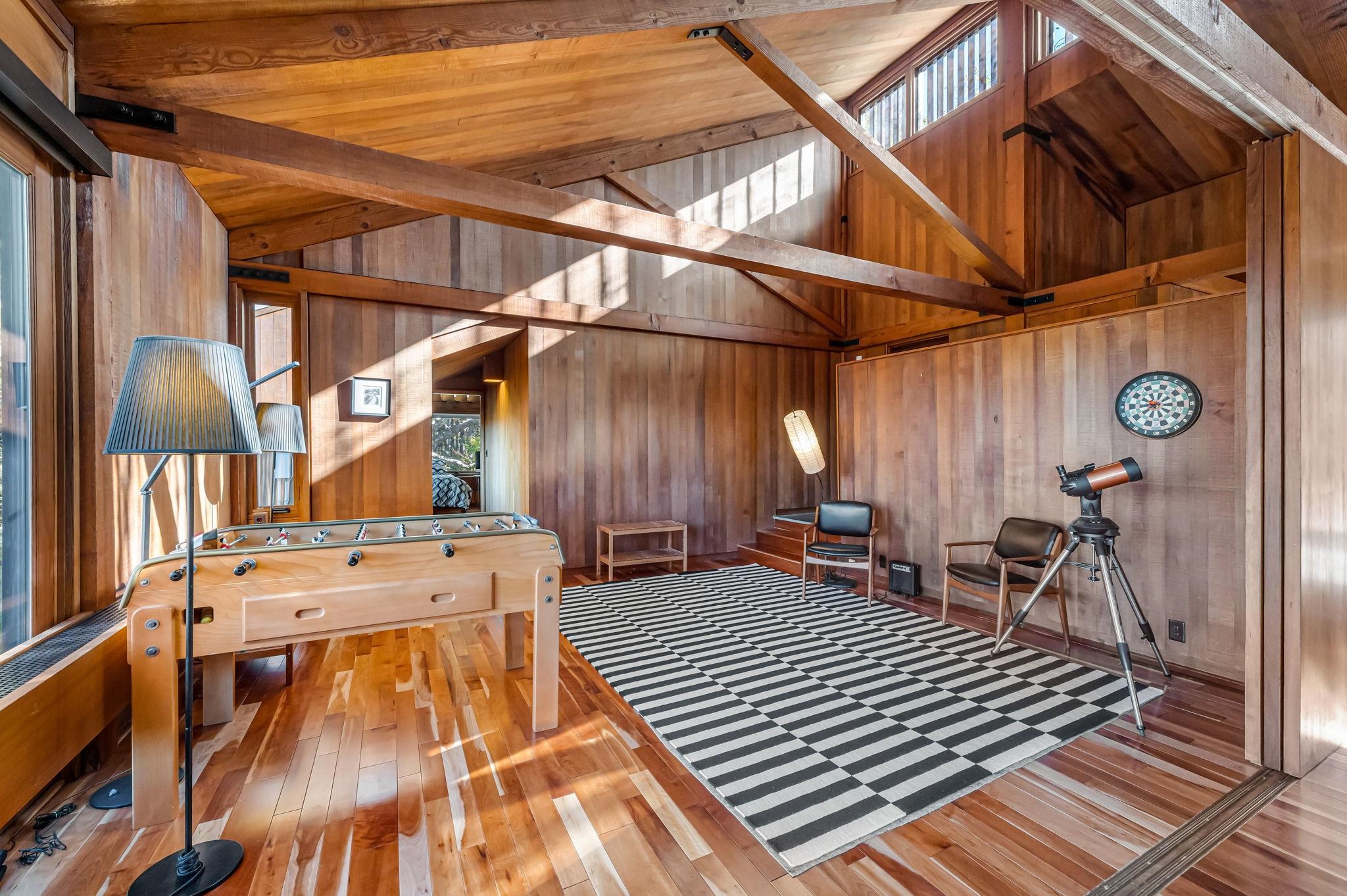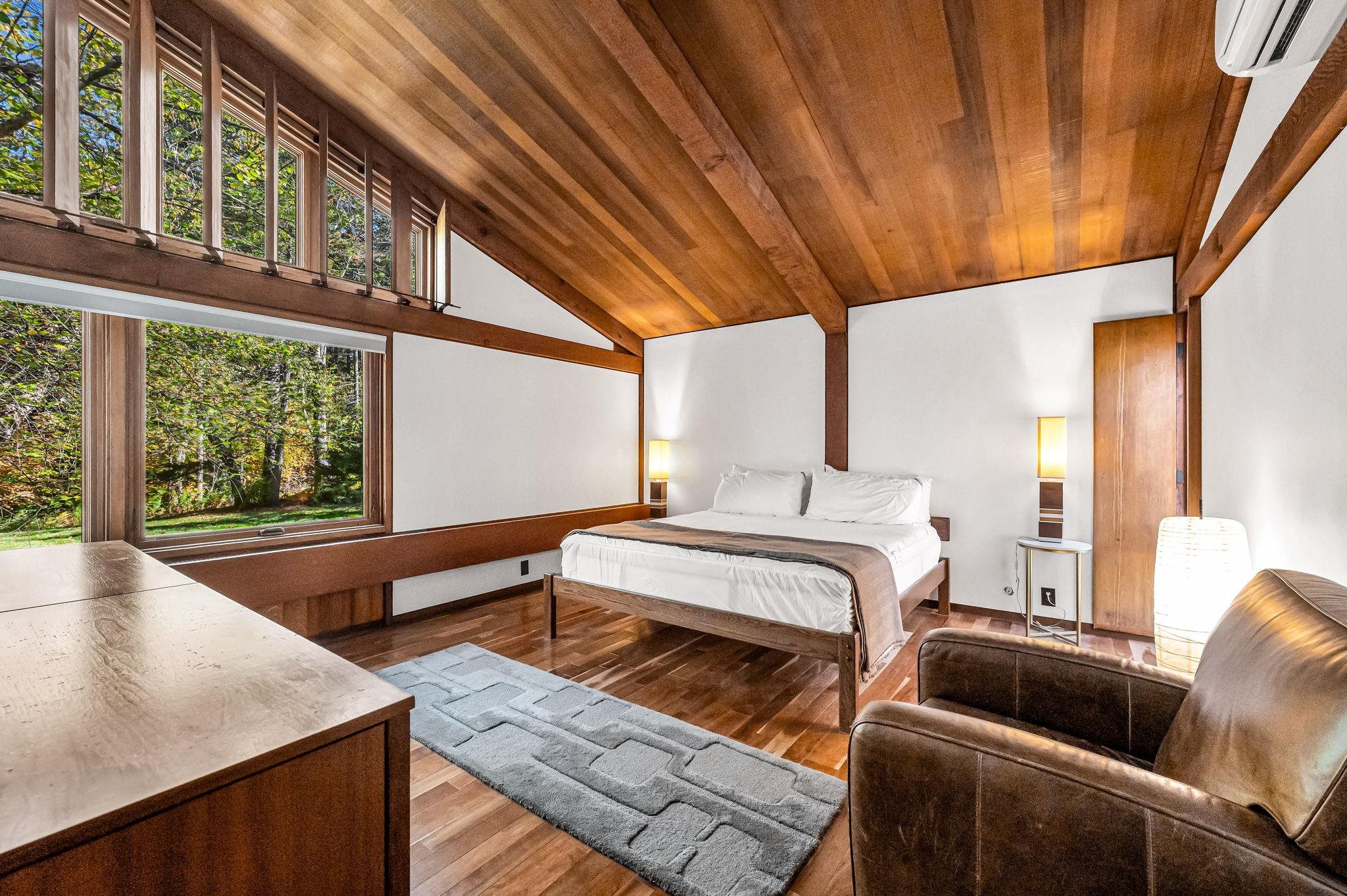 - Blinds, Cathedral Ceiling, Cedar Closet, Dining Area, 1 Fireplace, Hot Tub, Primary BR w/ BA, Natural Light, Natural Woodwork, Skylight, Vaulted Ceiling, 1st Floor Laundry