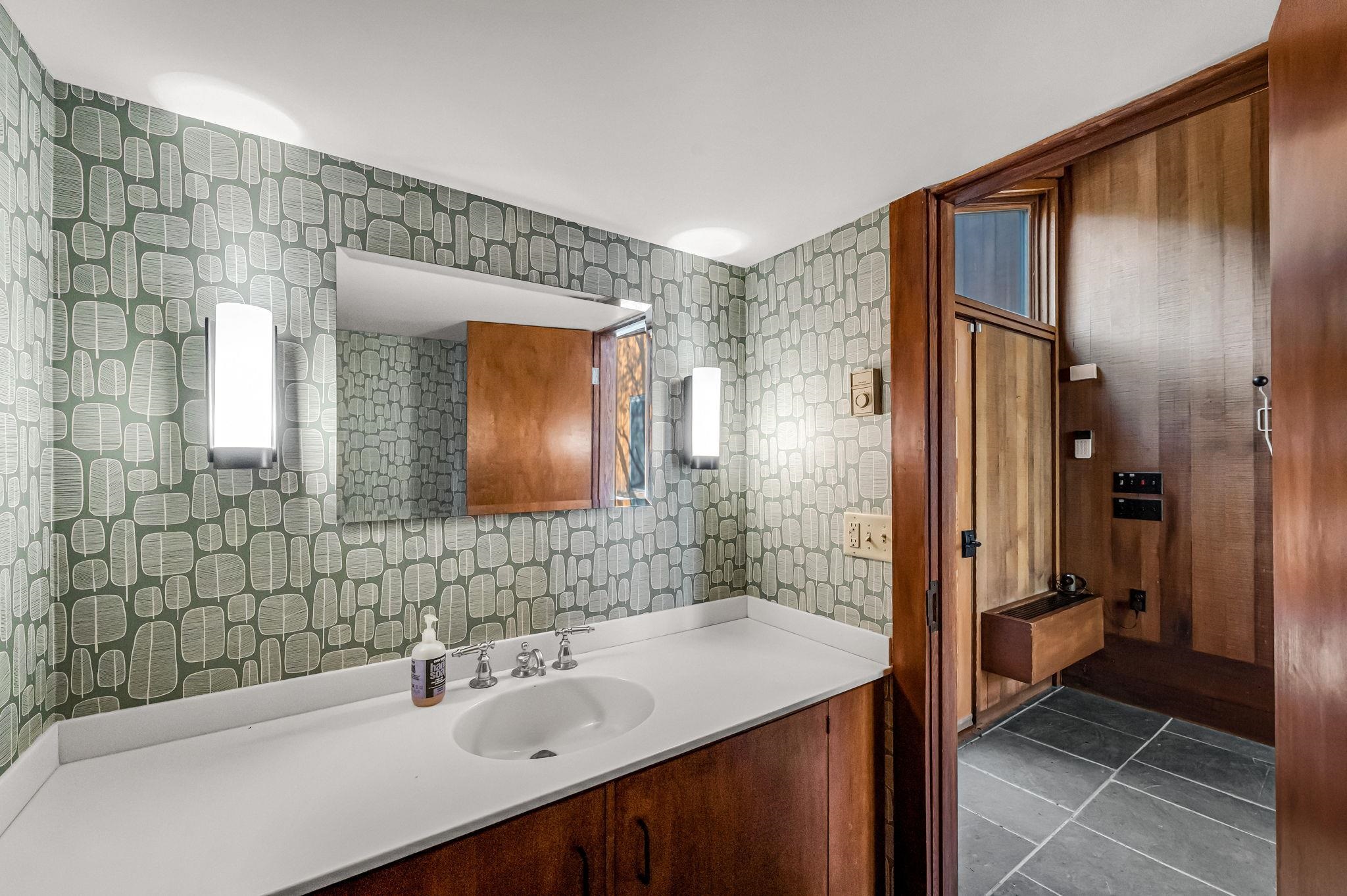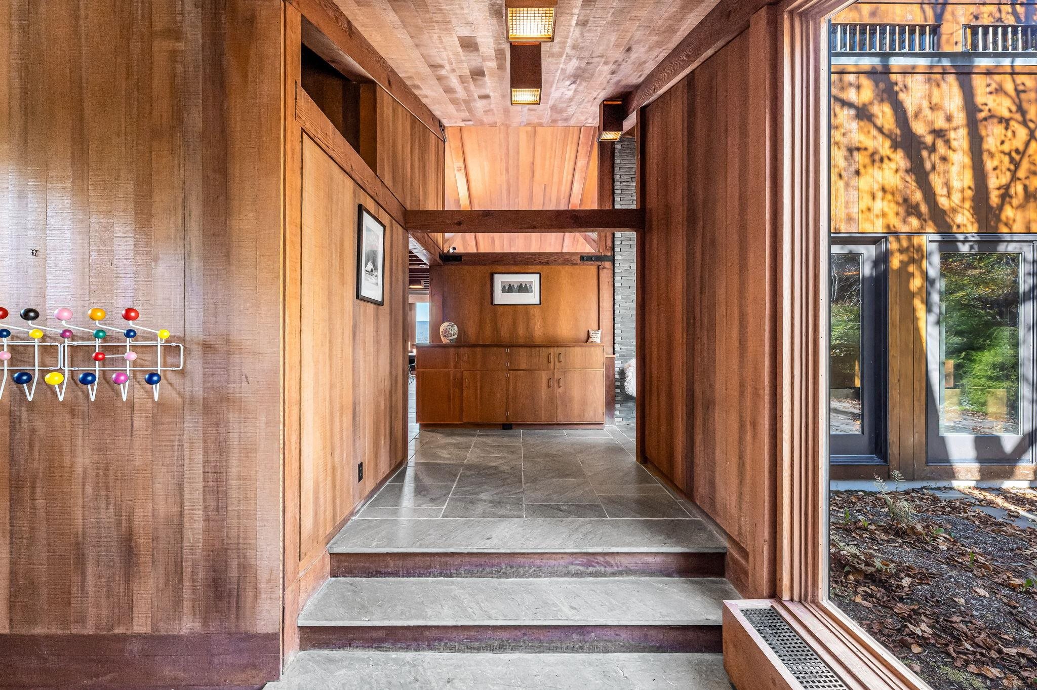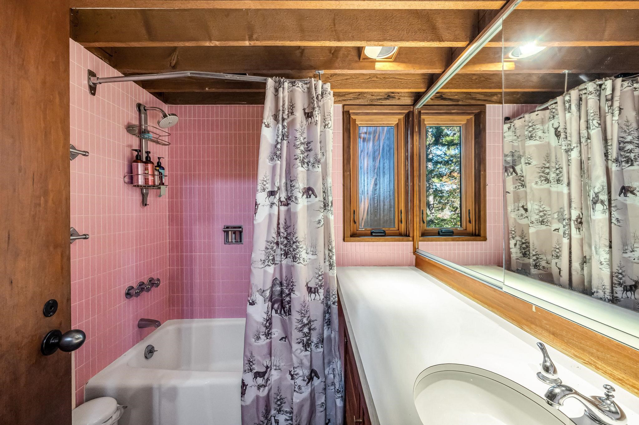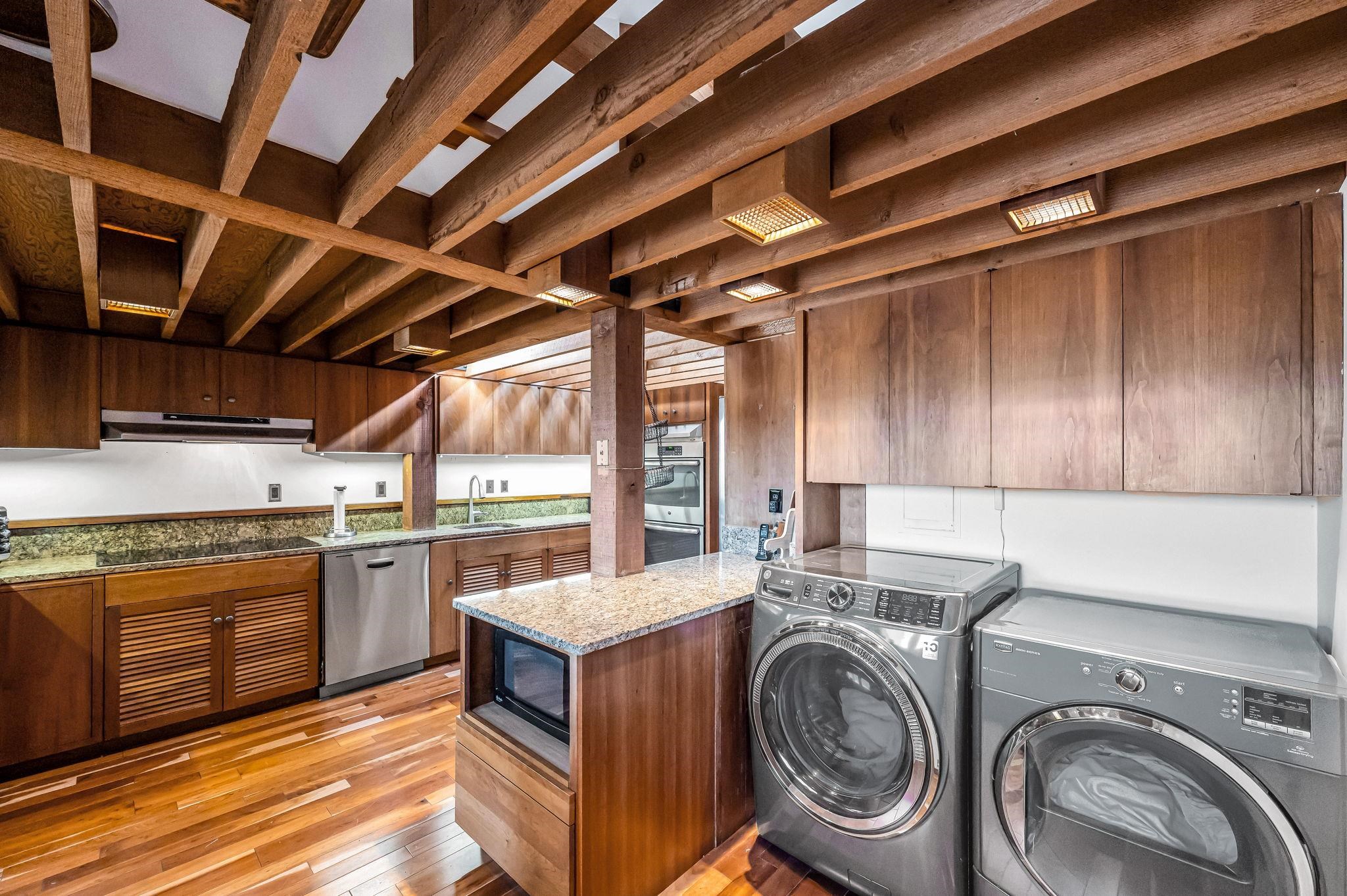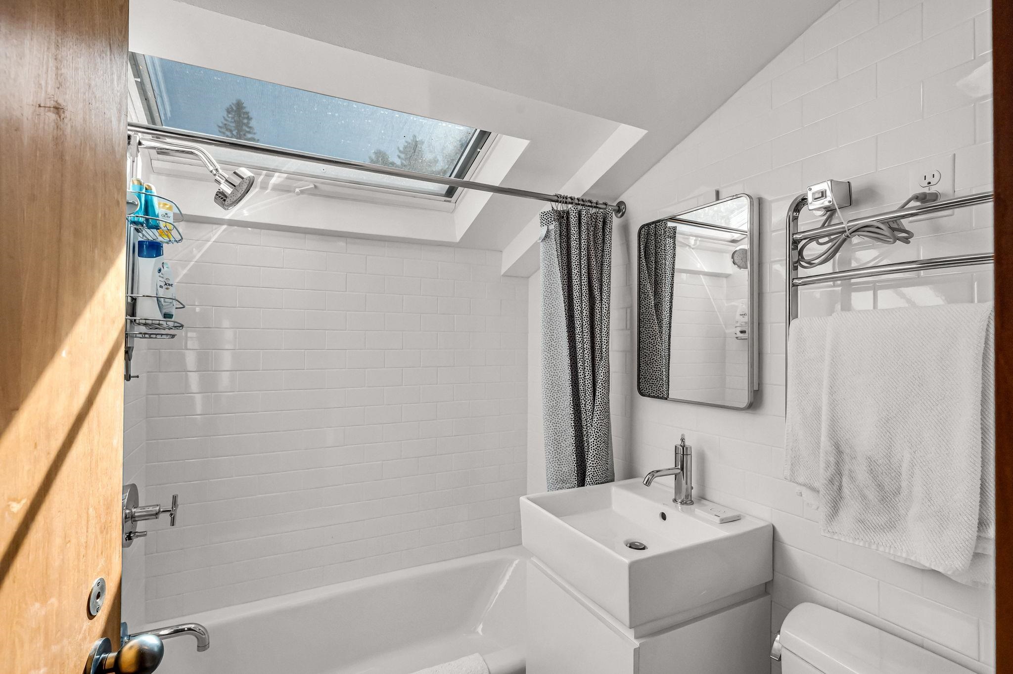 - Blinds, Cathedral Ceiling, Cedar Closet, Dining Area, 1 Fireplace, Hot Tub, Primary BR w/ BA, Natural Light, Natural Woodwork, Skylight, Vaulted Ceiling, 1st Floor Laundry
