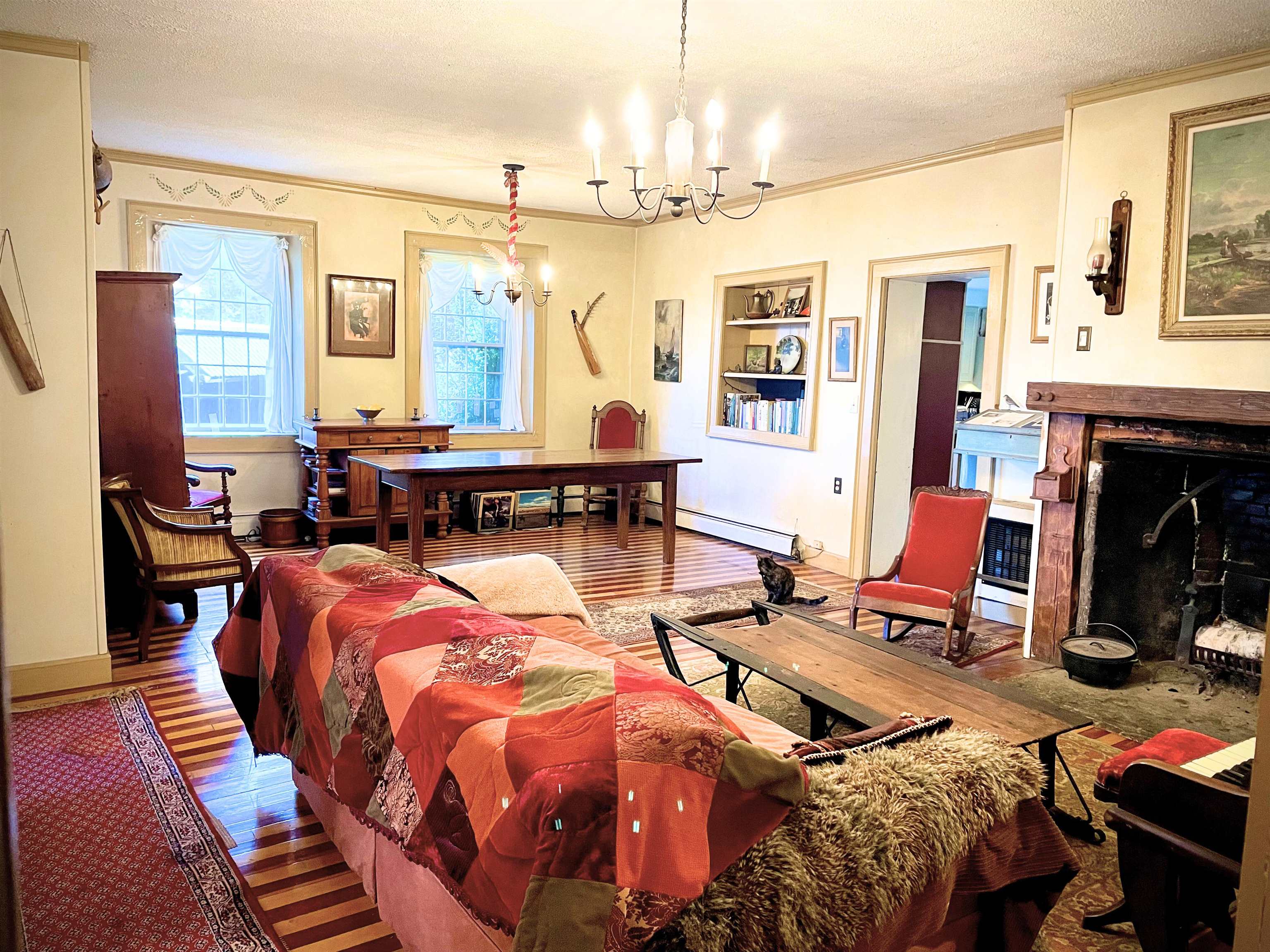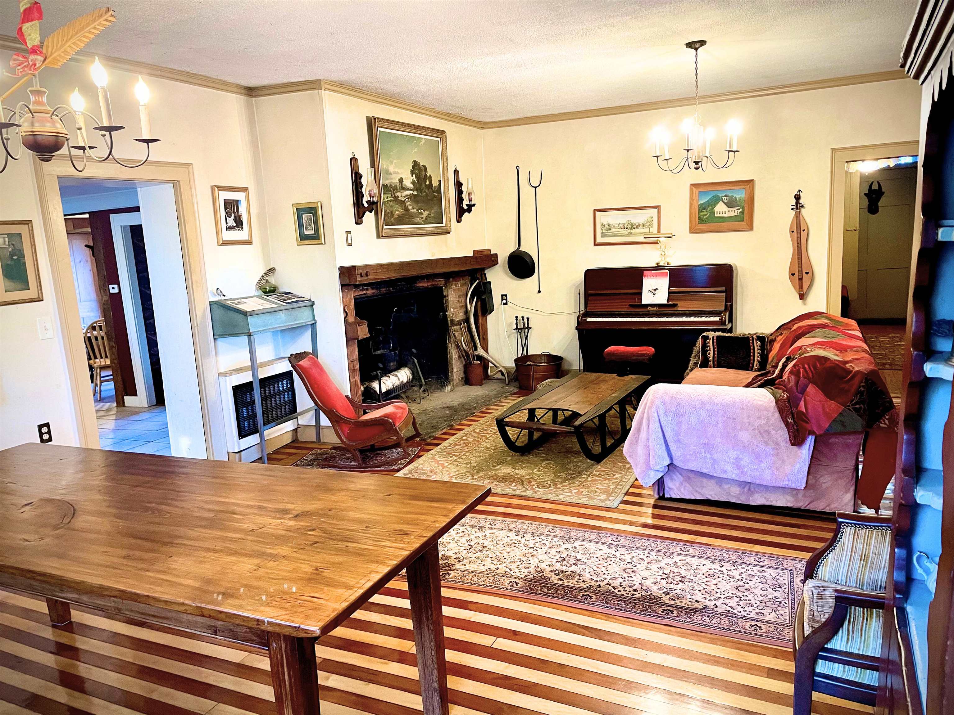 Once a tavern for travelers and a stagecoach stop in the early 1800s, 1607 Massey Road stands as a testament to Vermont’s enduring spirit. This distinguished 1810 Federal style home rests gracefully on over 48 acres of rolling meadow, woodland, and quiet pasture, offering a rare blend of seclusion, scale, and story. With more than 4, 100 square feet of living space, the home welcomes you with generous rooms, wide fireplaces in the living room and bedrooms, and a sense of history in every beam and board. A classic kitchen with a center island opens to a breakfast nook bathed in morning light. Upstairs, a vast attic space invites conversion into a workshop, studio, or retreat beneath the eaves. Outside, a wide entertaining deck overlooks a tranquil pond and dock, where summer reflections stretch long into the evening. Beyond the main home, an old sugar house and barn wait patiently for revival and a return to their maple-making roots or transformation into event or creative spaces. A cabin at the summit offers income potential as a short-term rental or a quiet guest escape. From the hilltop, the views roll endlessly across the Vermont valleys below, a scene unchanged for generations. Private. Peaceful. Poised between past and possibility, this is a property that doesn’t just hold land and history, but the promise of legacy.