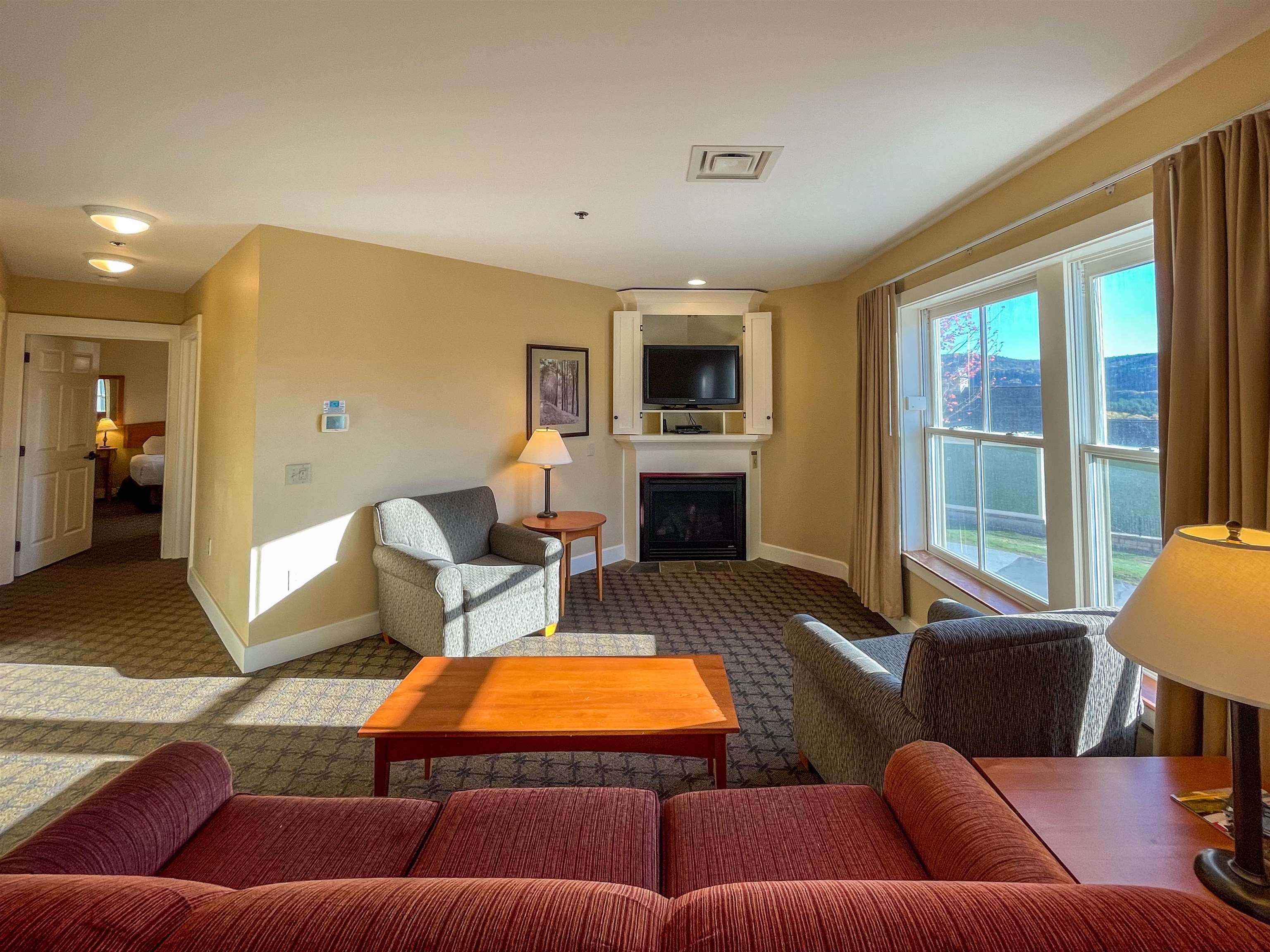 Jackson Gore on Okemo Mountain with this slopeside two-bedroom, two-bathroom corner condominium offering spectacular valley views. Thoughtfully designed for comfort and convenience, this residence features a open-concept living room with a gas fireplace, dining area, and a fully equipped kitchen—perfect for relaxing after a day on the mountain. The primary bedroom offers a king bed, while the second bedroom includes a queen bed, and a queen sleeper sofa in the living room provides additional accommodations. Located in the heart of Okemo’s Jackson Gore Village, this condo has ski-in/ski-out access all winter long. Enjoy underground heated parking, valet service, and gear lockers for ultimate convenience. Resort amenities include a restaurant and bar, cozy lounge areas with wood fireplaces, ski shop, ski school, arcade, and a playground for family fun. After skiing or hiking, unwind in the year-round heated outdoor pool and hot tub or head to The Spring House for access to the indoor pool, hot tub, fitness center, yoga studio, sauna, locker rooms, and pickleball court. Beyond the resort, the Okemo Valley offers an abundance of year-round recreation with a golf course, lakes, hiking trails, and the vibrant village of Ludlow, home to charming restaurants, shops, and local schools. Whether you’re looking for a mountain getaway or an investment opportunity with premier amenities, this Jackson Gore condo delivers the perfect blend of luxury and location on Okemo Mountain. ROFR