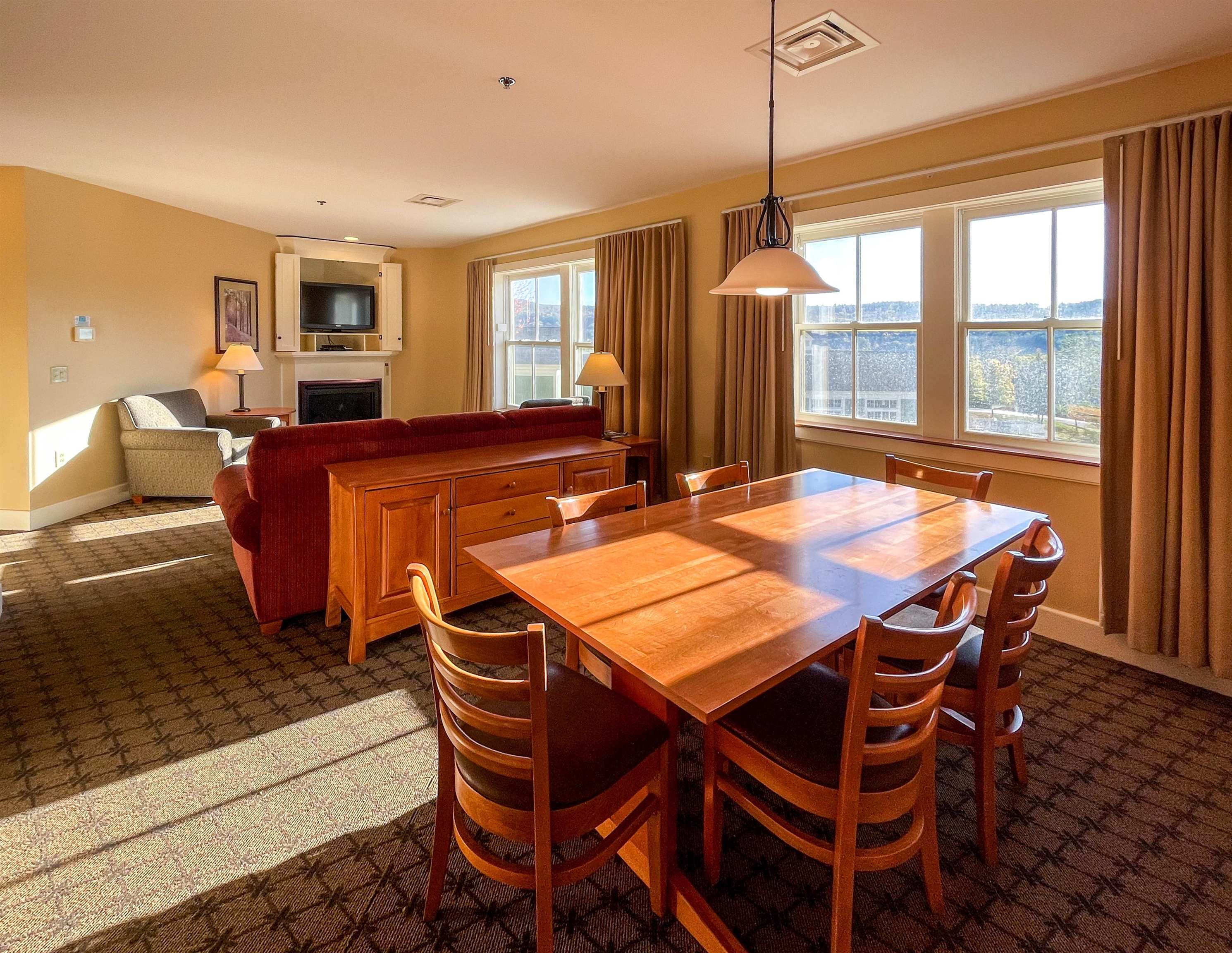 - Dining Area, Draperies, Elevator, 1 Fireplace, Furnished, Hot Tub, Kitchen/Dining, Living/Dining, Primary BR w/ BA, Natural Light, Sauna, Security Door(s), Common Heating/Cooling