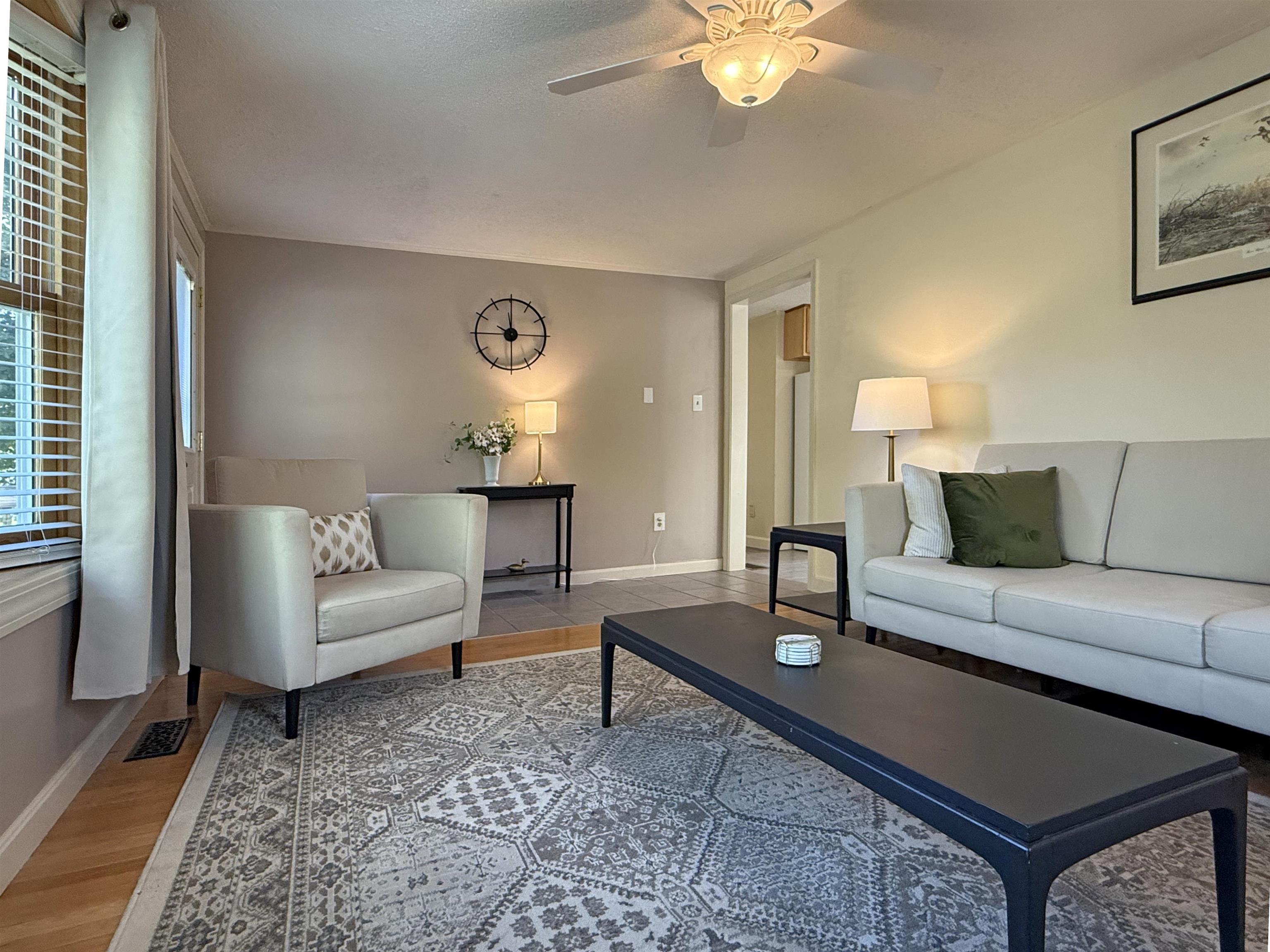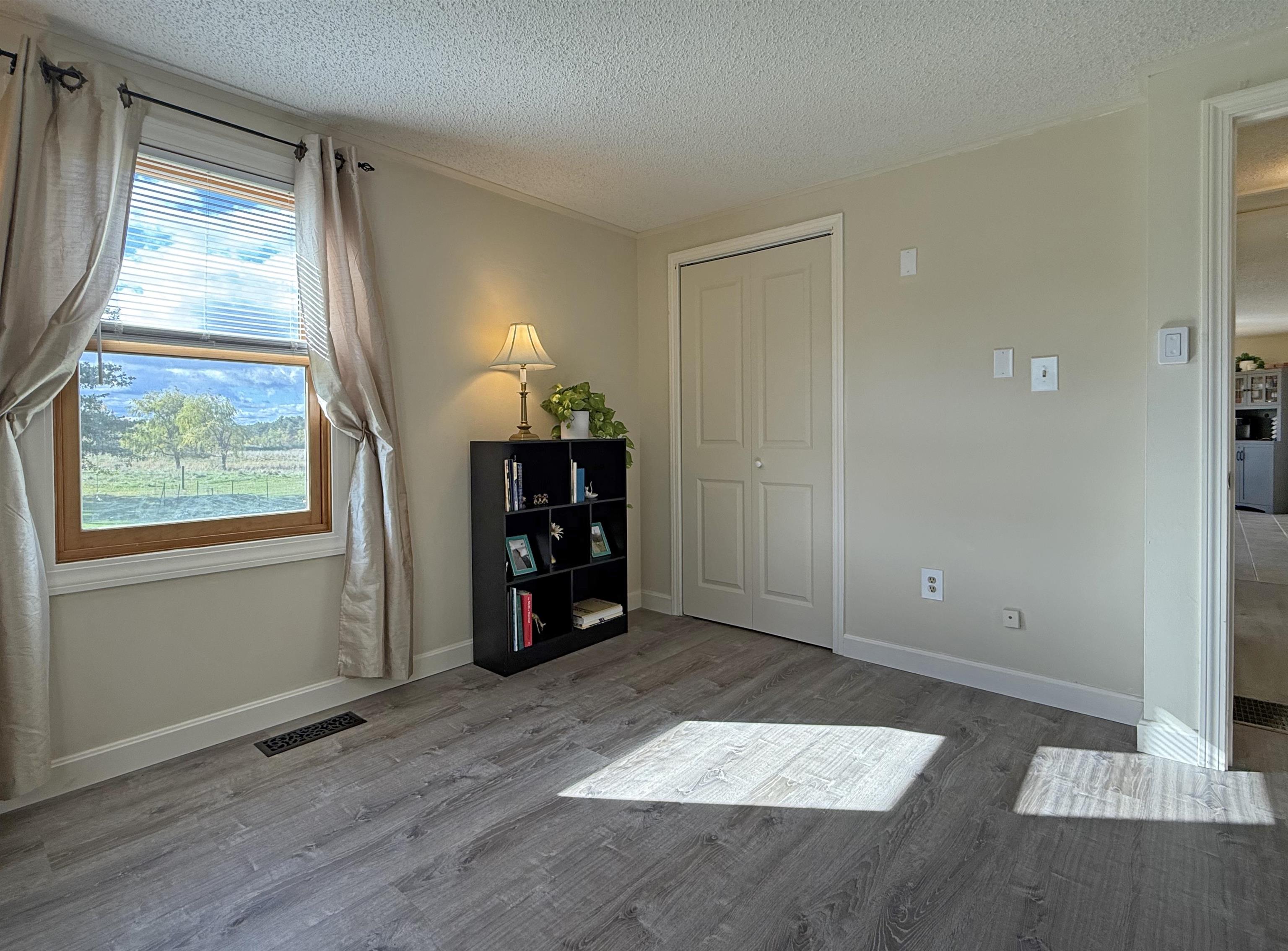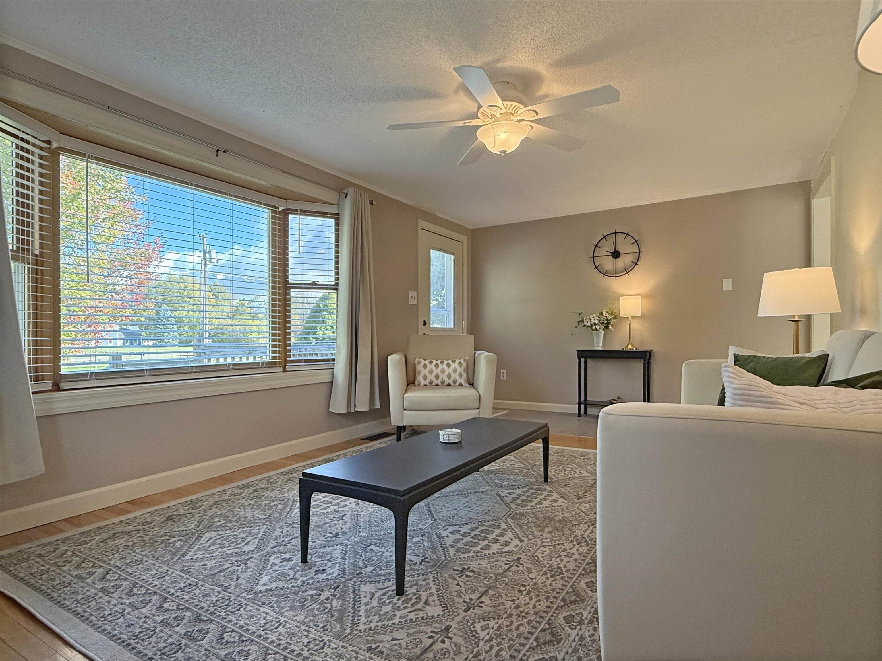 This well maintained, single-level home features 3 bedrooms and 1 bathroom, nestled on a peaceful country lot with pastoral views. Step through the side porch into the inviting eat-in kitchen or enter via the front porch into a tiled foyer that leads into the spacious living room, highlighted by natural wood flooring and a sunny bay window. The living room flows seamlessly into the well-designed kitchen located at the back of the home, offering ample counter space—perfect for cooking and entertaining in a warm, welcoming environment. A short hall connects the main living area to the full bathroom and three comfortable bedrooms, providing a thoughtful separation of living and sleeping spaces. The tidy basement includes a laundry area, the home's mechanical systems, and offers plenty of additional space for storage or hobbies. Outdoors, you’ll find two decks and a level 2-acre yard—ideal for gardens, play, and relaxation. Newly planted shrubs along the property line enhance privacy and curb appeal. Additional features include a detached two-car garage with an extra attached bay and two detached sheds, providing ample space for vehicles and enclosed storage. Vinyl siding and a newer roof ensure minimal maintenance. Don’t miss the opportunity to explore this charming home—check out the 3D virtual tour!