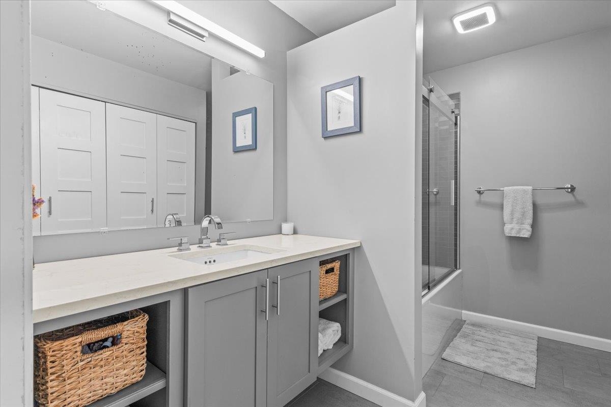 Don't miss out on one of the largest and most unique Overlook East at Spear end units. This 2-bedroom 1, 374 square foot townhouse has been totally renovated with top quality materials and features. The spacious living and dining area feels even larger thanks to an open 10x13 alcove. This unit has large, oversized windows many of which have been replaced in the past three years to make it an exceptionally bright home. The kitchen, which has been completely remodeled, boasts new custom cabinets, quartz countertops, and a coffee/appliance bar which adds extra counter space and storage. There is a large solid wood breakfast bar which opens up the kitchen to the rest of the living area. Updated ceramic tile flooring in the kitchen, entry, and both bathrooms. The full bath upgrades include a large new vanity with plenty of storage below, an oversized soaking tub, a glass tile shower surround, sliding glass shower doors, a low flow toilet, and a new light fixture. All interior doors have been replaced with 5-panel solid doors and four new windows have been installed within the past three years. An extra-long detached garage with overhead shelving which provides ample storage. Overlook at Spear offers a pool and tennis court, as well as easy access to I-89, Downtown Burlington, and UVMMC. Szymanski Park is easily accessible just a short way down the bike path, which is just minutes from your front door.