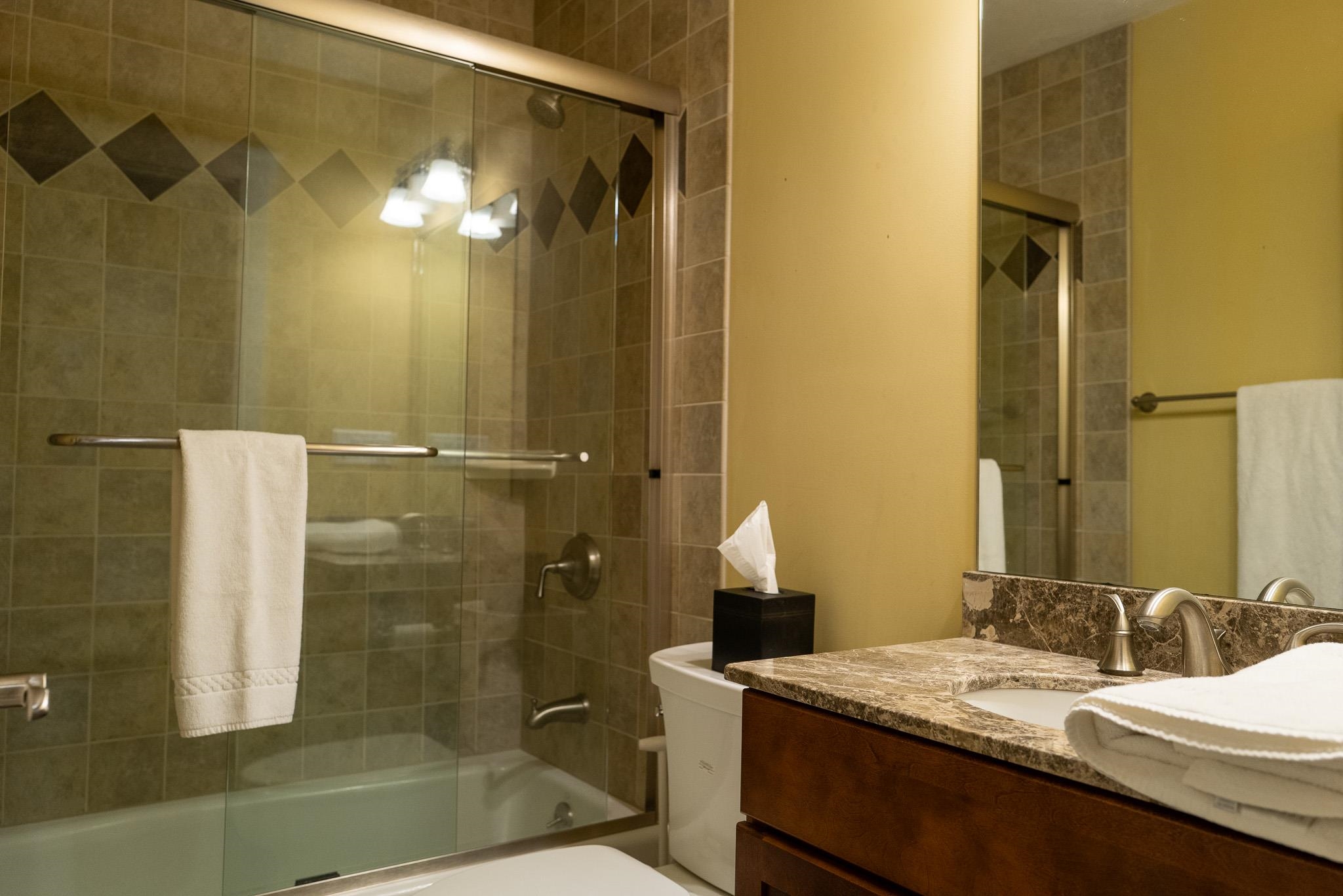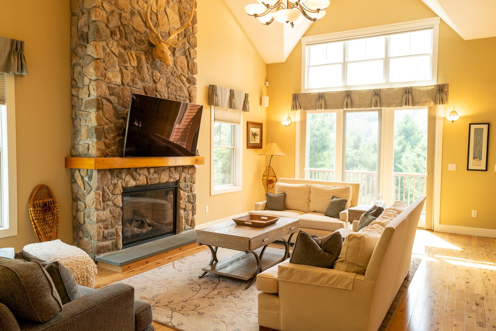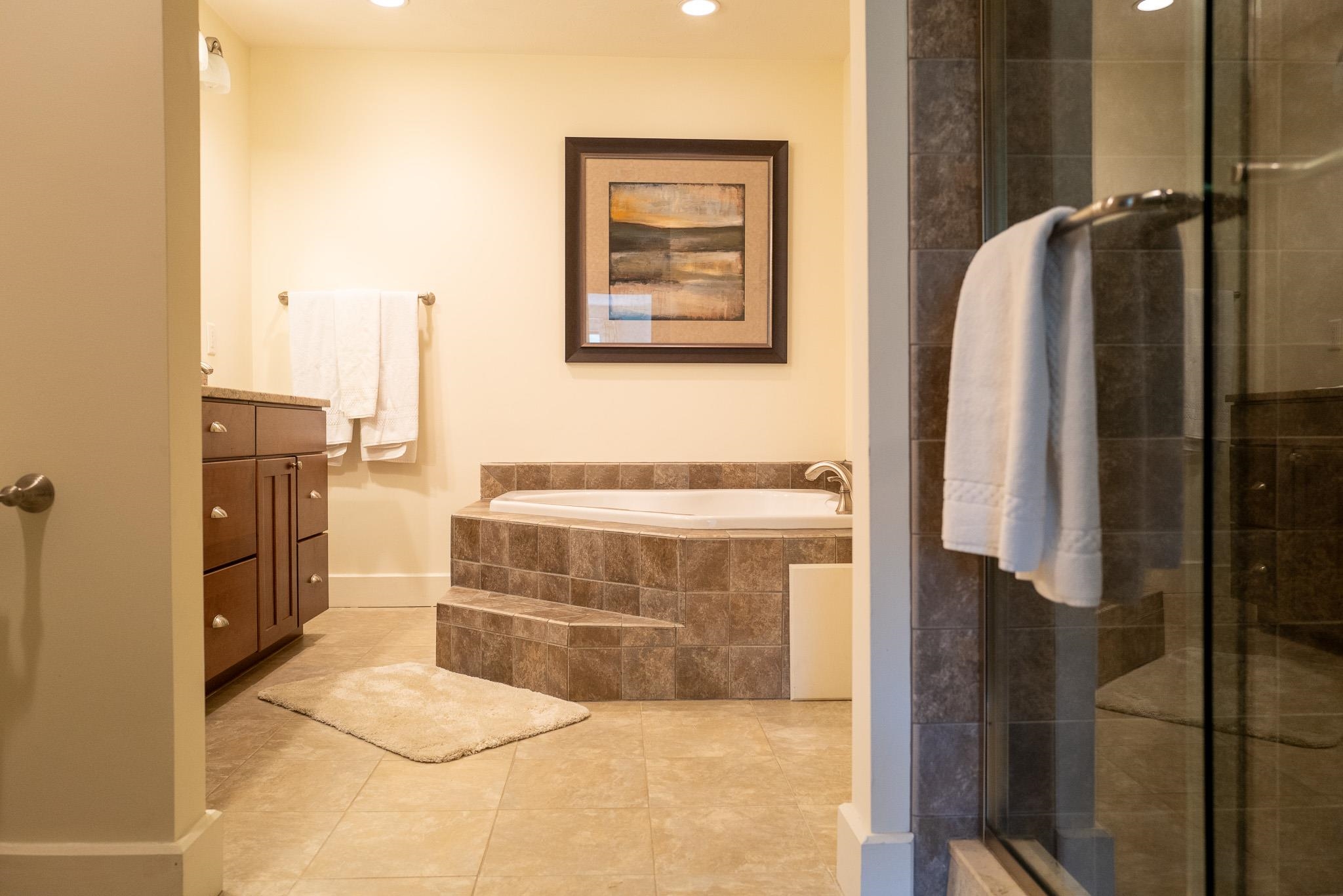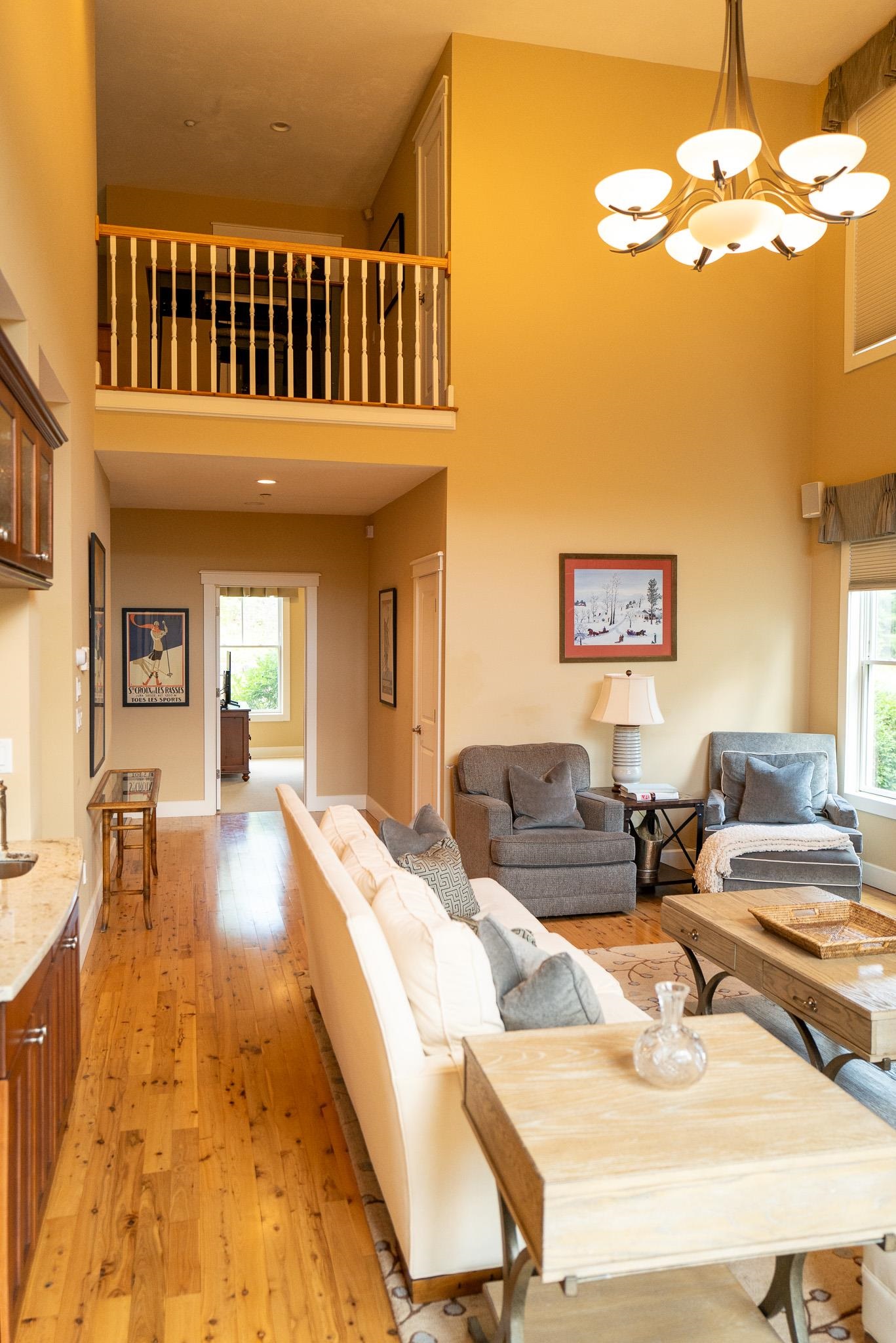 This magnificent 5-bedroom, 4.5-bath townhouse, spanning over three tastefully designed floors, will captivate you with its elegance. The open floor plan combines contemporary aesthetics with practical design. The living room, graced with hardwood (hickory) flooring, a gas fireplace, large windows, and a vaulted ceiling, creates an ambiance of warmth and grandeur. Each bedroom exudes tranquility, boasting wooden flooring, large windows, and ample closet space. Two bedrooms feature en-suite bathrooms, and two additional bathrooms service both the common space and the two additional bedrooms. A Large jetted tub off the primary bedroom is wonderful after a day of outdoor activity! The upgraded kitchen is a chef's dream, featuring an 8’ kitchen island, double ovens, two dishwashers, a farmer’s sink, stainless steel appliances, and quartz countertops. Adjacent to the kitchen is the dining area. The lower level features another large living and entertainment space, complete with a wet-bar, mini fridge, and a large flat screen TV. A laundry room and owner’s closets add to the home's utility. With well-maintained roads and a plethora of nearby restaurants, the neighborhood offers the best of convenience and lifestyle. Envision the life that awaits...Experience it, appreciate it, make it your own. Let this be the backdrop to your new memories.