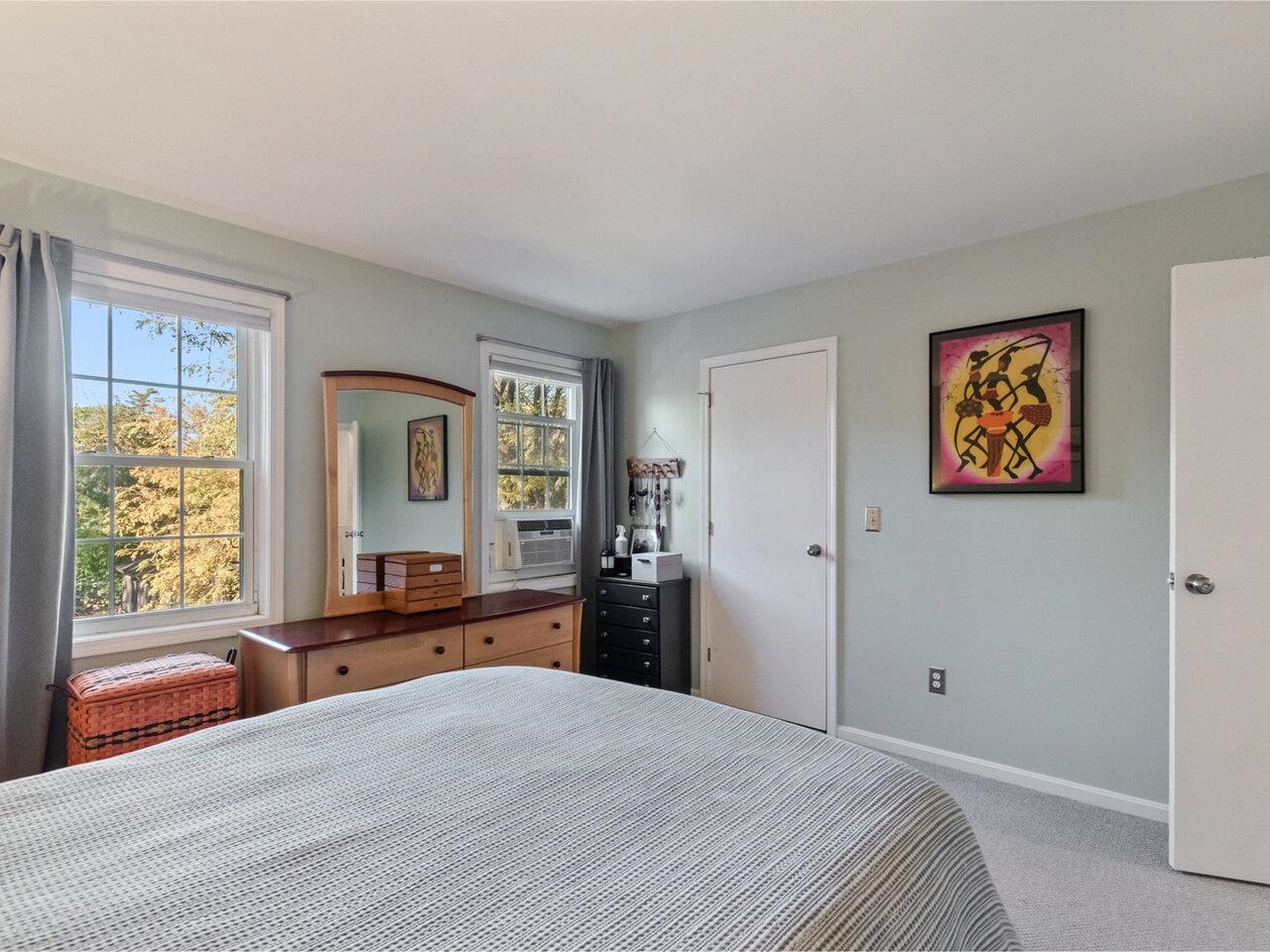 You will love this beautifully updated Cardinal Woods townhome in South Burlington. The first floor features gleaming wood floors and a renovated kitchen with stainless appliances and rich cherry cabinetry that showcases a pass-through to the bright, open dining and living area. The living room slider opens to a private deck and charming yard perfect for relaxing or entertaining. The second level offers two spacious bedrooms, a modern full bath with contemporary updates, and a laundry closet complete with newer stacked washer and dryer. Convenience continues with a first-floor half bath, covered carport with storage, and access to community tennis courts and tons of common acreage. This sought-after South Burlington location offers the best of both worlds - set in a peaceful neighborhood yet just minutes to shopping, dining, schools, and the airport. A wonderful place to call home.