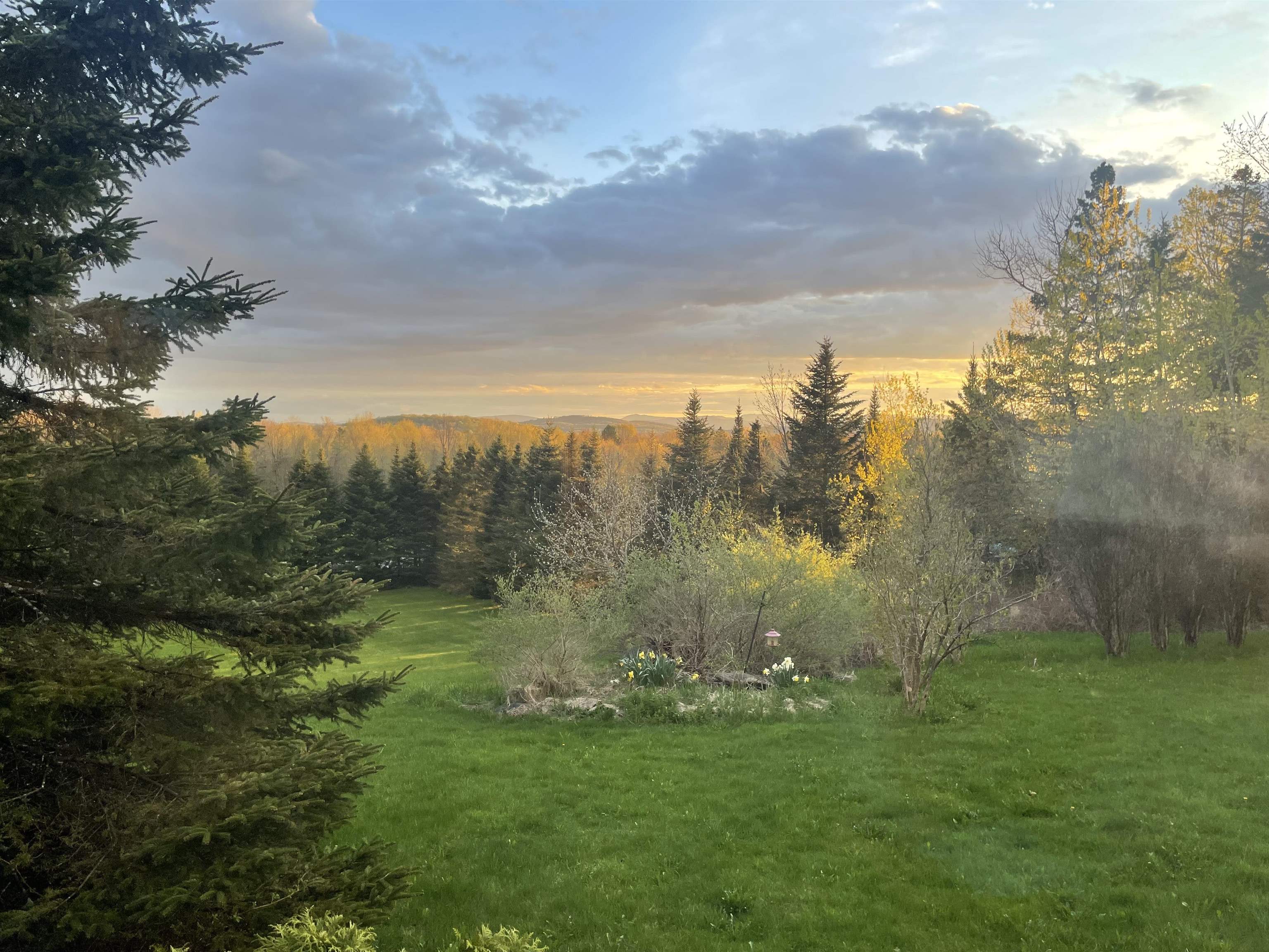 Perched atop more than 10 scenic acres, this inviting Cape-style country home offers the perfect blend of comfort, space, and natural beauty. Step inside through the attached two-car garage into a spacious mudroom; ideal for transitioning through Vermont’s vibrant seasons with ease. The sunny eat-in kitchen features gleaming stainless steel appliances and opens directly onto a back deck; perfect for letting in the breeze or hosting guests during warmer months. Entertain with ease in the formal dining room or gather in the expansive living area, complete with large picture windows and a cozy pellet stove for supplemental heat. Lastly, you have a full bath on the main level complete with washer and dryer. Upstairs, you’ll find four generously sized bedrooms, all with ample closet space, and a second full bath. Need more room? The finished basement offers incredible flexibility, featuring an exercise room, an additional living space, a ¾ bath, and two bonus rooms; ideal for home offices, hobby spaces, or guest overflow. Outside, enjoy breathtaking views, your own small pond, and a walking trail. Nature lovers will appreciate the bounty of established fruit trees and berry bushes, including blueberry, blackberry, pear, cherry, apple, and peach. This home truly has it all; peaceful privacy, abundant space, and modern conveniences, including high-speed internet brought in by the current owners. A must-see Vermont gem!