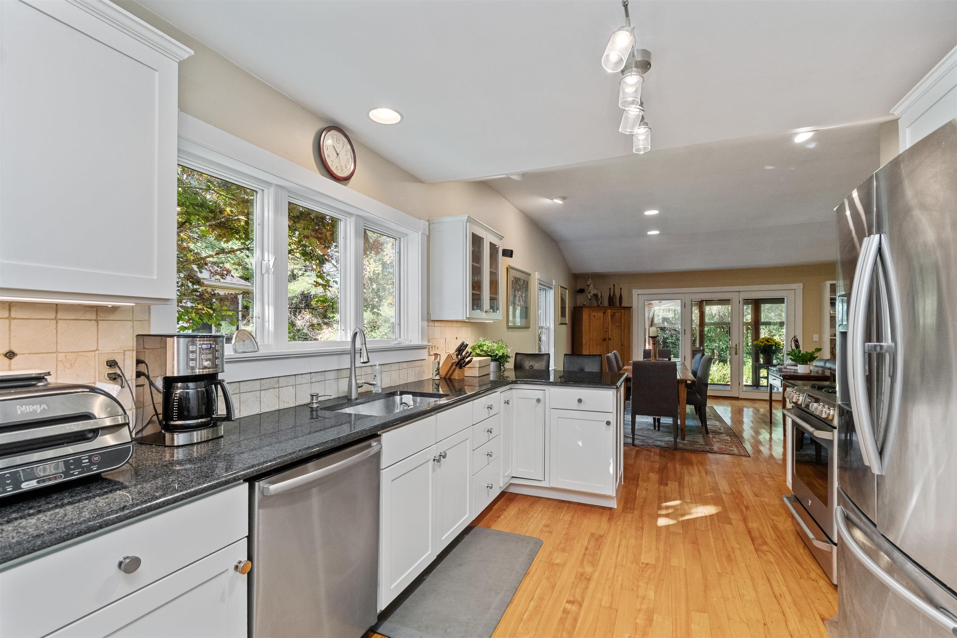 Beautifully updated 2-bedroom, 2-bathroom one-level home in the desirable Bittersweet Village neighborhood! From the moment you enter the large foyer, you’ll feel the warmth and care that have gone into maintaining this lovely property. The open-concept living area boasts hardwood floors, high ceilings, abundant natural light, a large dining area, and a cozy gas fireplace- perfect for relaxing or entertaining. The adjacent kitchen features granite countertops, a tile backsplash, stainless steel appliances, and a large sink, combining style and function. The spacious primary bedroom offers hardwood floors, natural light, a walk-in closet, and an updated en suite bath with built-ins and a double-sink granite vanity. A second bedroom sits toward the front of the home, along with a beautifully updated ¾ bath featuring a marble-topped vanity and glass-enclosed shower. Additional highlights include first-floor laundry, an attached two-car garage, and ample storage throughout. The full unfinished basement offers even more storage or potential for future expansion. Enjoy seamless indoor-outdoor living with a screened-in porch featuring tiled floors and access to the back deck for grilling or enjoying nature. Recent updates include freshly painted ceilings, trim, and doors (2025) and newer gutters (2023). Surrounded by lovely landscaping and just minutes from Williston’s shops, restaurants, and I-89, don’t miss this opportunity to be the second owner of this exceptional home!