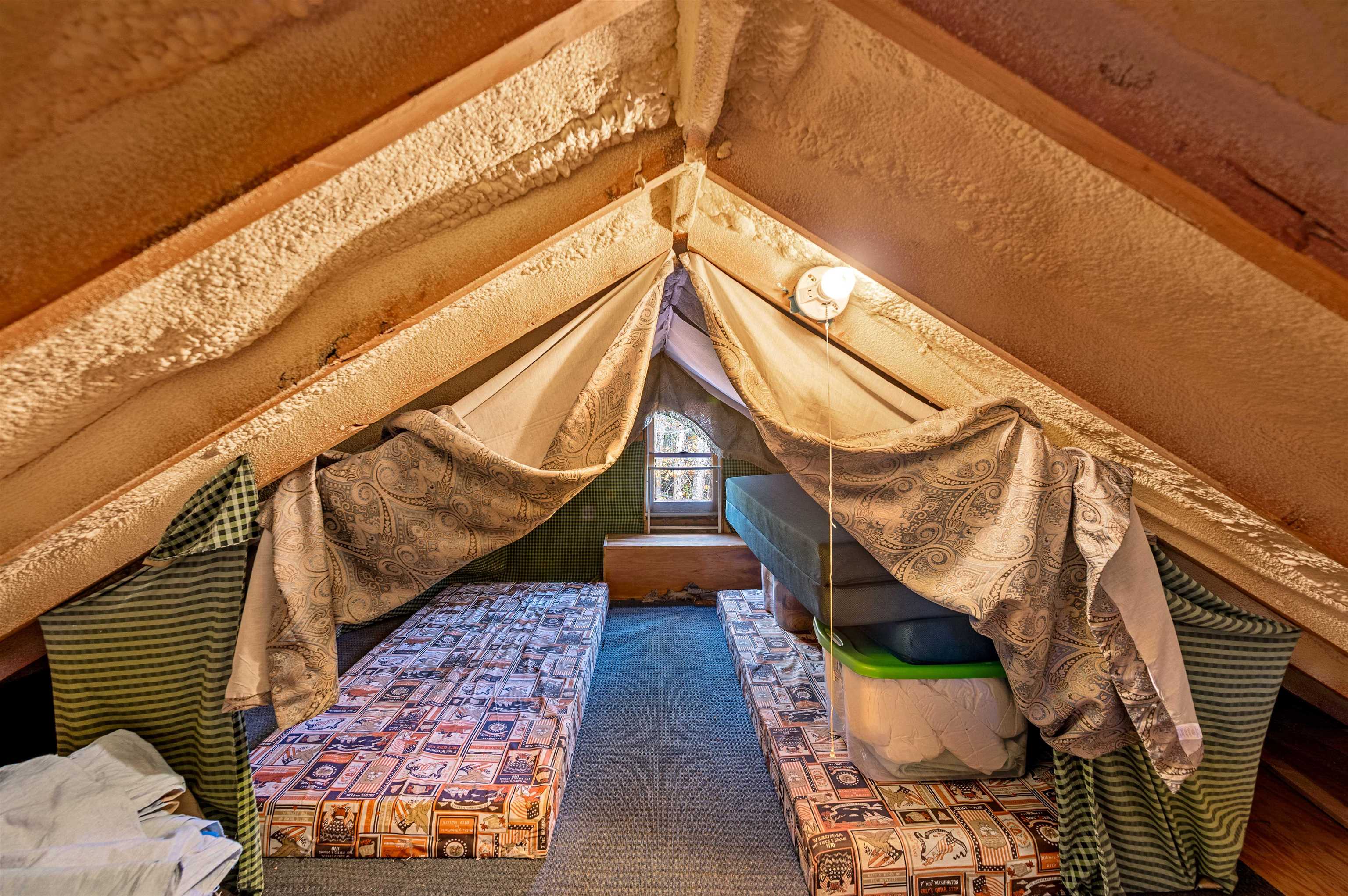Hidden deep in the woods of Groton, this updated off-grid camp sits on 24 peaceful acres surrounded by nature. Whether you're looking for a weekend retreat, a hunting base, or a spot to explore snowmobile trails, this is where you unplug and breathe a little easier. Inside, the updates hit that sweet spot between rustic and ready. A push-start Honda 6500 generator hums to life with ease, the drilled well means real showers, and propane keeps the hot water and fridge running without fuss. You get the soul of a classic Vermont camp without sacrificing basic comfort. Owner has thoughtfully installed a french drain and support posts below frost wall. Also, a 2009 Polaris IQ for winter fun, should you want to hike in and enjoy the snowmobile trails. 3" spray foam in flooring and attic, and solar for convenient lighting. Levi Pond is just a half-mile walk away, perfect for paddling, fishing, or quiet reflection by the water. The land is a mix of forest and trails, with plenty of space to explore. Come fall, the colors light up the landscape. In winter, you're steps from the VAST trail network and endless backwoods adventure. If you're craving quiet mornings, starry nights, and a place to truly get off the map, this might be your spot.