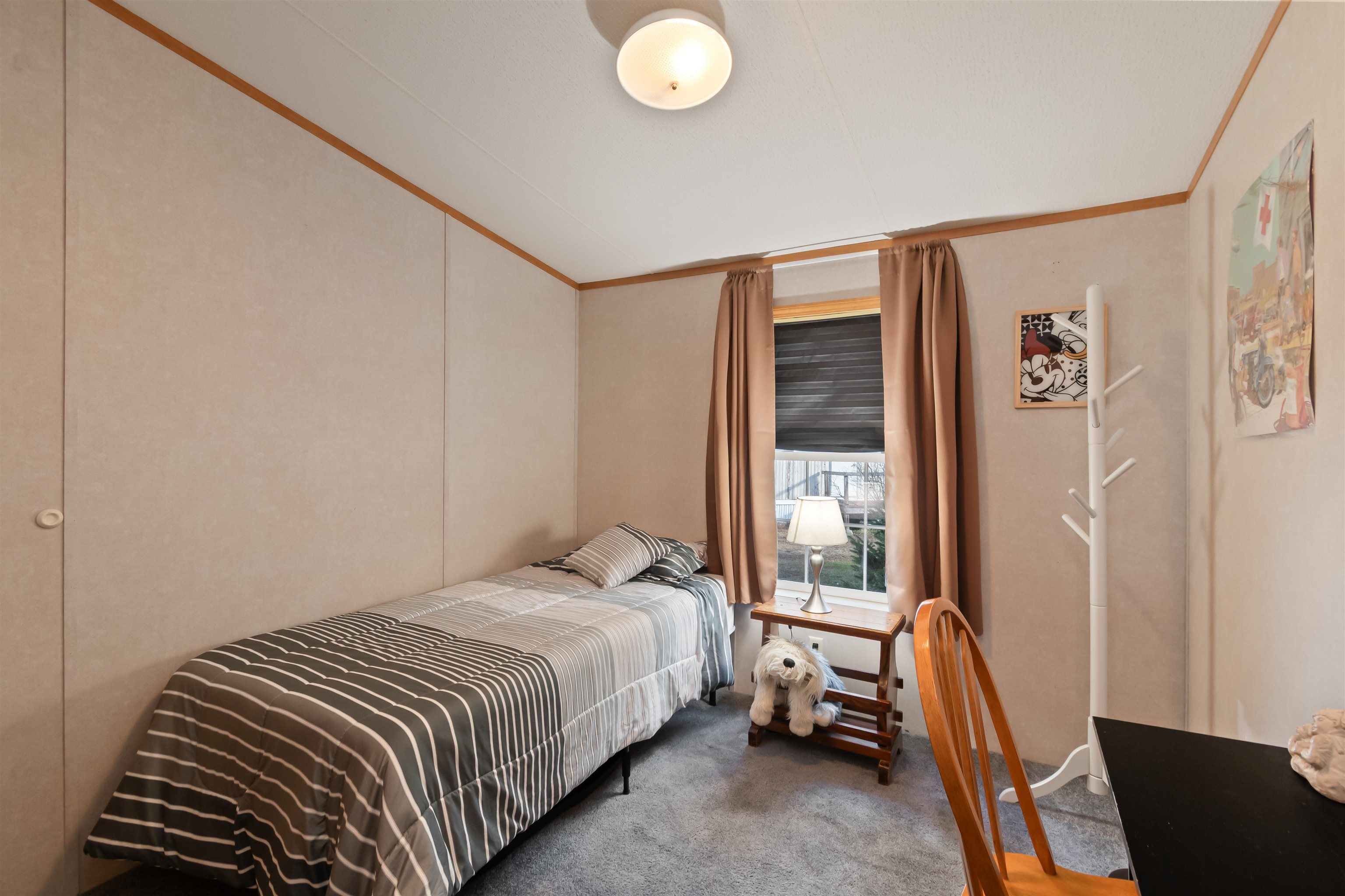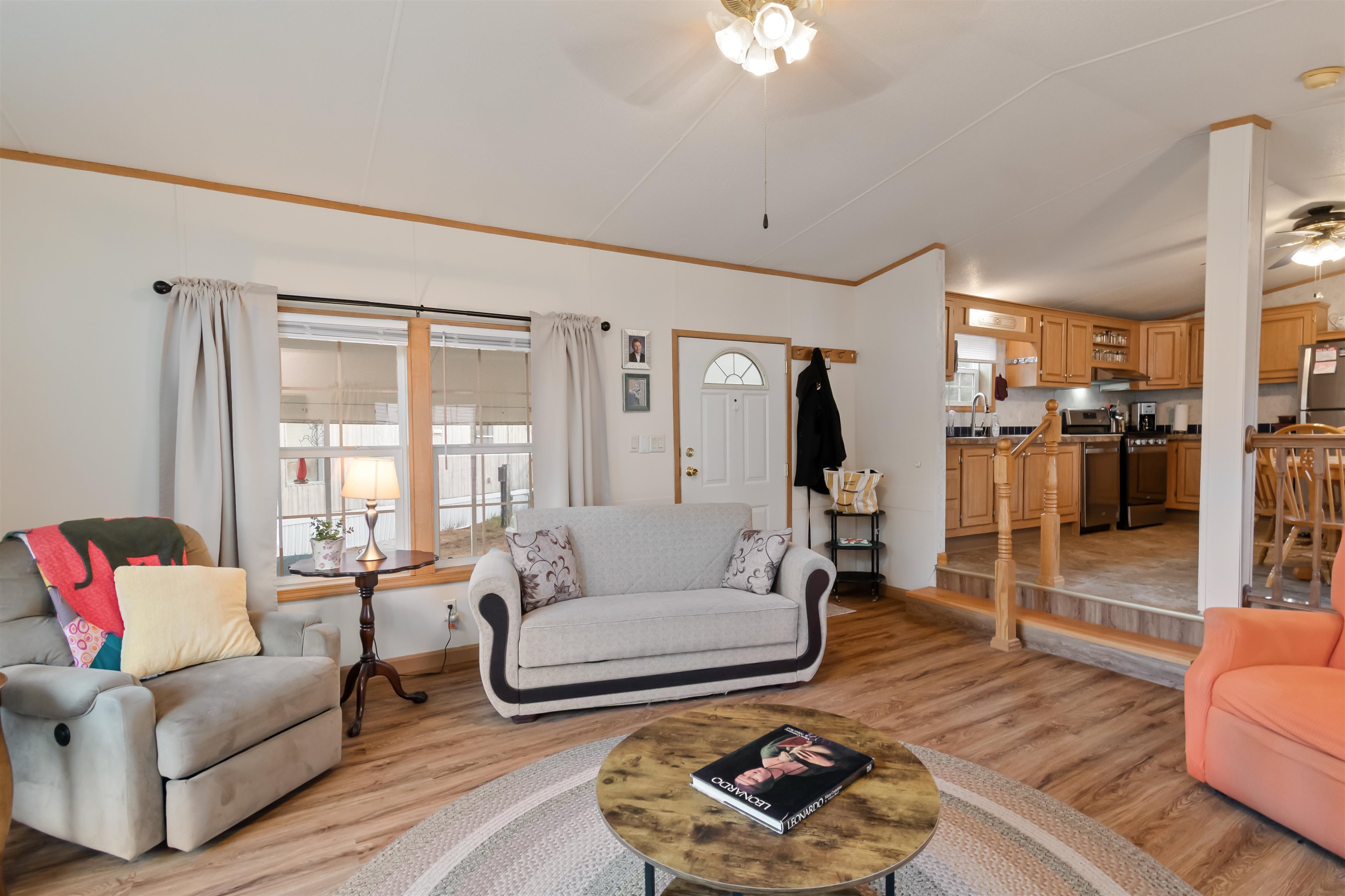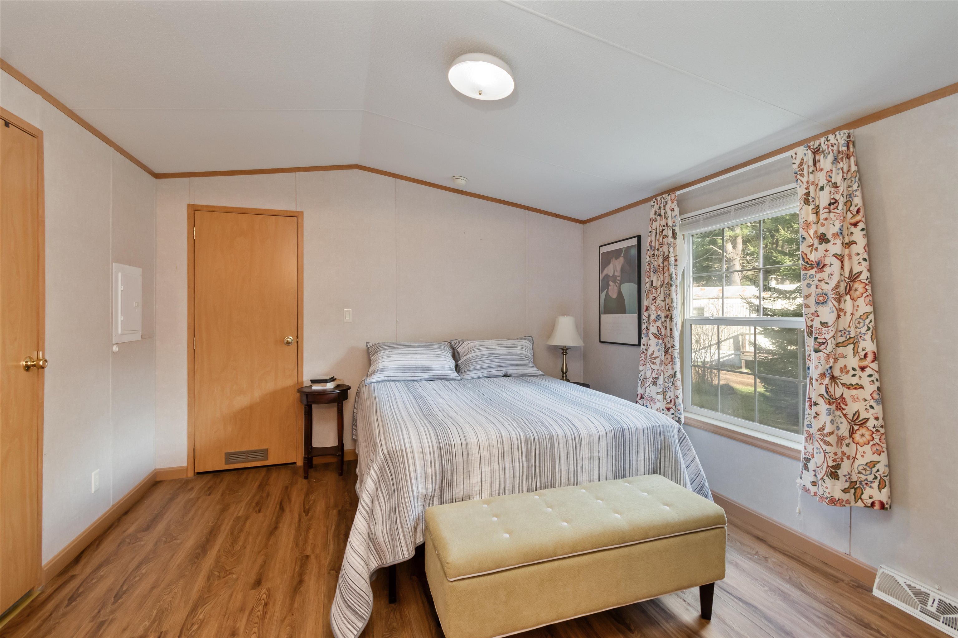 Come to our Open House this Saturday 10/25 from 12 noon to 2pm! Well cared for customized mobile home with 15.5' width and 76' length has a beautiful picture window in front, a large and larger bedrooms than most single-wide mobile homes. Come see -Sandy Pines is one of the nicest mobile home parks in Central VT! Greenery all around, good space between the homes and tall pines in the background. Easy access to a wide path that allows you walking, biking XC skiing and snowmobiling and connection to the Lamoille Rail Trail. A large covered deck at the front entrance of the home leads you to a sunken living room with extra ceiling height, a large high quality eat-in kitchen and ample sized 3 bedrooms/2 bathrooms beyond. Updates in 2022: laminate flooring in living room and primary bedroom, microwave. Updates in 2023: roof, water heater, stove and vented hood, refrigerator, dishwasher, furnace, central AC compressor. If you're in the market for an existing single-wide mobile home in a park you can't do better than this one!