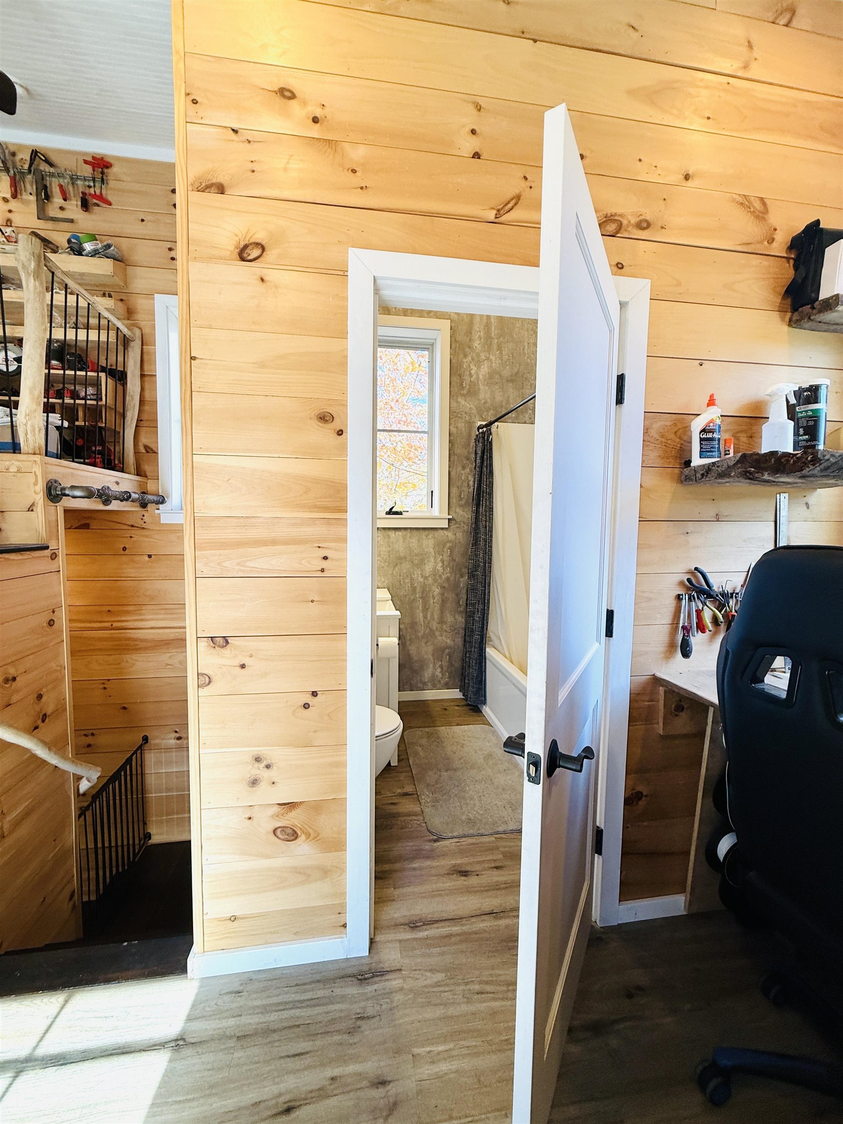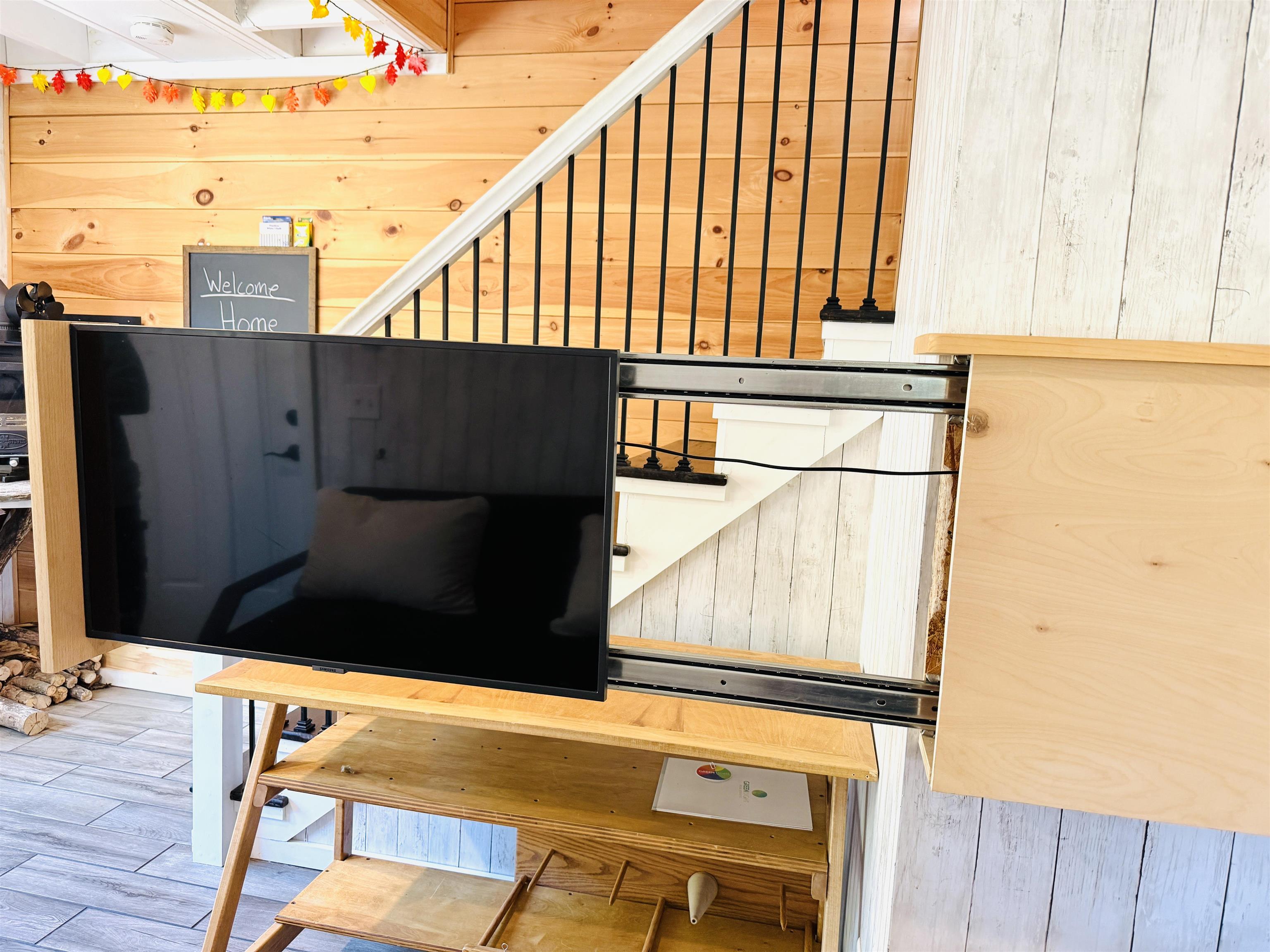 Escape to modern simplicity and sustainable living in this architect-designed tiny home, offering over 600 square feet of beautifully efficient space. Thoughtfully crafted with quality materials and an emphasis on self-sufficiency, this home seamlessly blends innovation, comfort, and connection to nature. The living area features ceramic tile flooring, tongue-and-groove paneling, and a cozy woodstove. Clever design touches include a hidden built-in TV and a space-saving dining table that lowers from the rafters. The well-appointed kitchen boasts butcher block counters and high-end efficiency throughout. A whole-house ventilation system ensures exceptional air quality. The bedroom opens to a large deck/carport with integrated drainage in the decking. The en suite bath features an oversized soaking tub and stylish finishes. This fully electric home is powered by seller-owned solar panels with Tesla wall batteries for energy storage. Insulated and ventilated composite siding protects the structure by keeping heat in and moisture out. Designed for flexibility, the property can operate on-grid or off-grid and includes Starlink internet for reliable connectivity. Situated on 11.9 peaceful acres along a quiet, well-maintained road, the property offers both open meadow and mature forest. Septic and well are designed for 4 bedrooms, so there’s potential to build an additional three-bedroom residence. Experience the beauty of intentional living—modern, sustainable, and ready to enjoy.