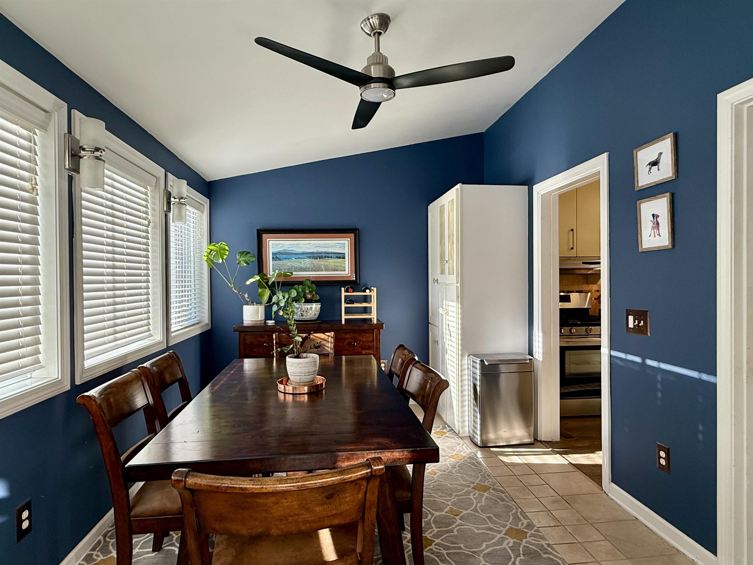 - Blinds, Ceiling Fan, Dining Area, Primary BR w/ BA, Natural Light, Natural Woodwork, Indoor Storage, Walk-in Closet, Programmable Thermostat, Basement Laundry