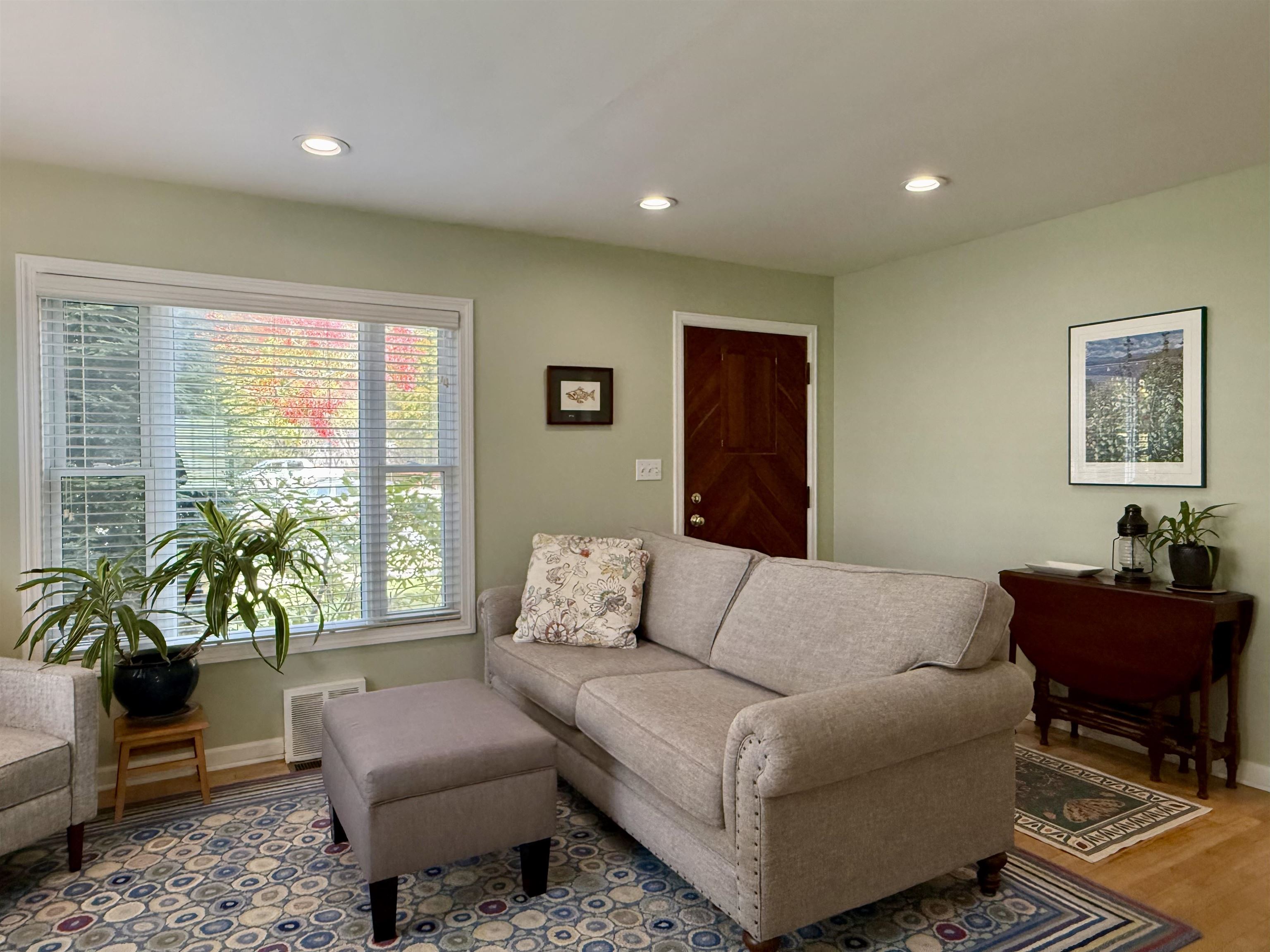 Welcome to 110 Iroquois Avenue, where you will fall in love with the charm of the home's original features, along with the modern updates that have been made over the last several years! Enter through the unique front door into the cozy living room, freshly painted and adorned with hardwood floors, large, updated windows and a cozy gas Hearthstone stove. As you walk through the rounded archway, you'll find two first floor bedrooms with hardwood flooring, a full sized bathroom, closet space in all rooms, and the stairs leading up to the second floor primary suite. This open space area was untouched living space that the seller constructed in 2020, complete with a large 3/4 bathroom! Plush carpeting, ample space for a sitting area, office space and a walk in closet, this bright space will be where you will want to spend your time. Downstairs, the galley kitchen has an amazing amount of cabinet space, updated appliances and leads into a large dining room, with lots of natural light. You can access your full basement from the dining room, as well as your outside deck and one car garage. The real showstopper is the fully fenced in yard with mature trees and landscaping, that make you feel like you are living out in the country, while being located within walking distance of schools, shopping, restaurants and the Champlain Valley Expo. Some notable updates include; heat pump, furnace, basement drainage system, water line and sewer line. Don't miss out on seeing this beautiful home!