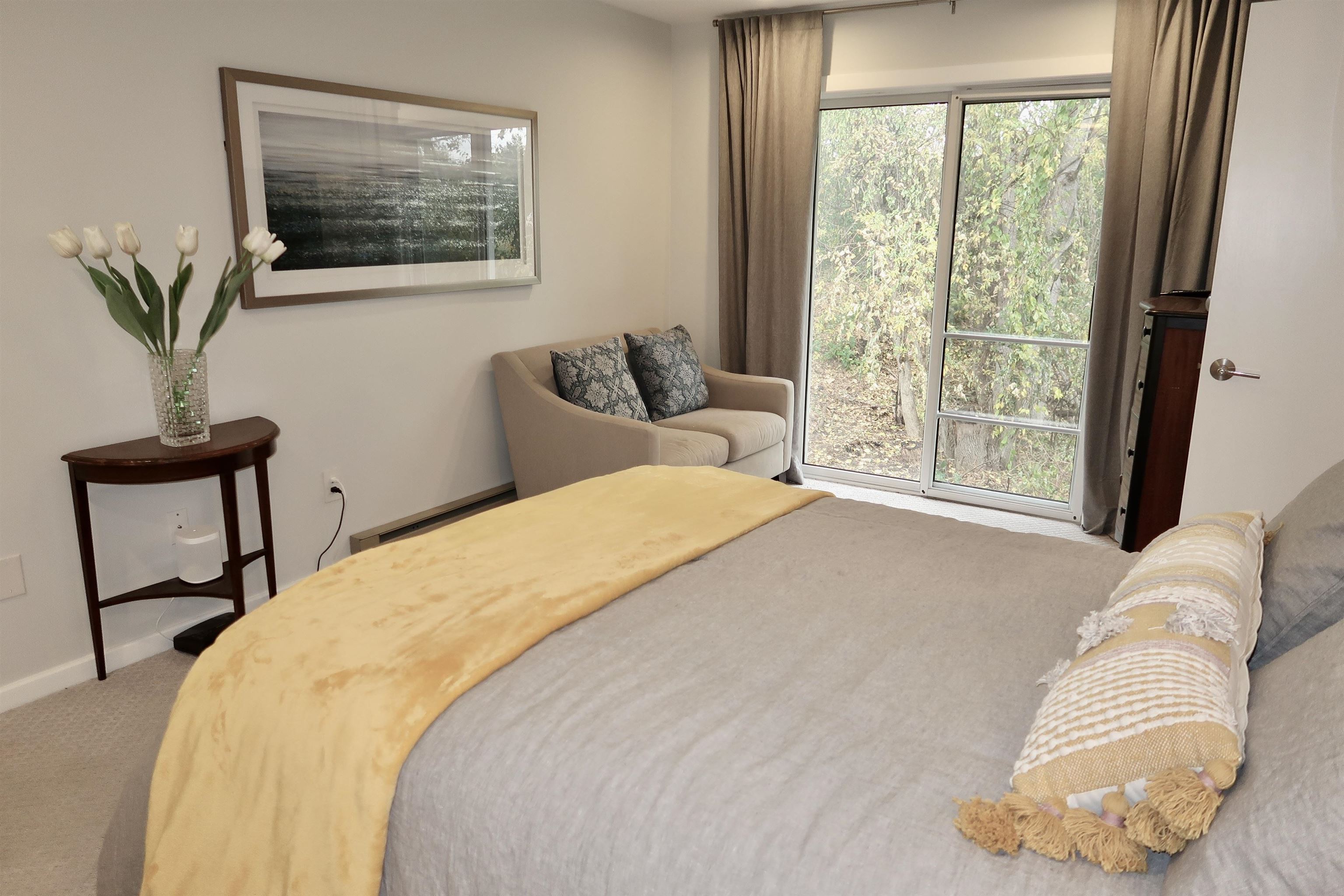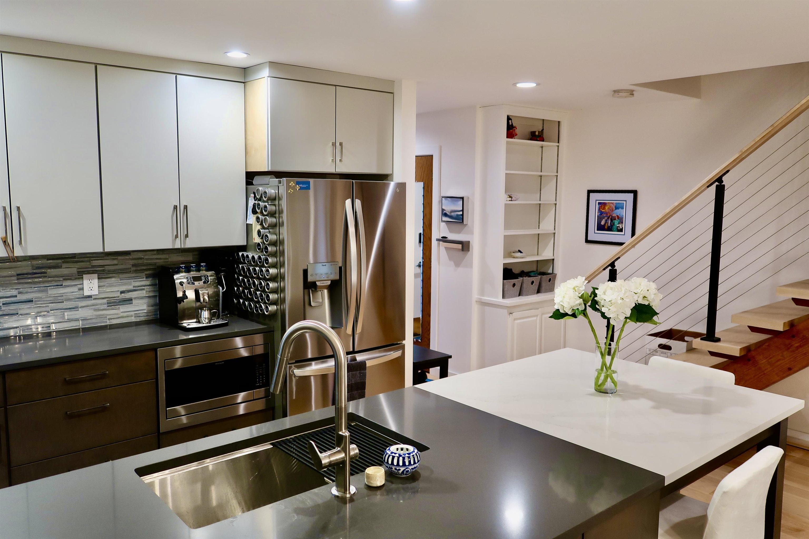 Experience luxury lakefront living in this fully renovated condominium in The Landings—one of the area’s most desirable communities. Rebuilt from the studs up, every inch has been thoughtfully designed for comfort and style. The expanded kitchen features quartz countertops, glass tile backsplash, peninsula seating, and stainless appliances. The sunken living room offers a quartz gas fireplace, recessed lighting, and access to one of three private outdoor spaces. A flexible first-floor den/office/bedroom opens to a peaceful patio. Upstairs, the primary suite includes a private balcony and spa-inspired bath with heated tile floors and pebble shower. The second bedroom features an en suite bath and bonus room—ideal for a gym or studio. Updates include engineered maple flooring, heat pumps, smart controls, new wiring and plumbing. Enjoy a detached garage with storage, deeded mooring, and shared dock. With 1, 100 feet of lakefront, pool, tennis/pickleball courts, and EV charger, this is lakefront living at its best—just minutes to restaurants, shopping, UVM, and I-89. DELAYED SHOWINGS until OPEN HOUSE Saturday 10/25 11-1pm.