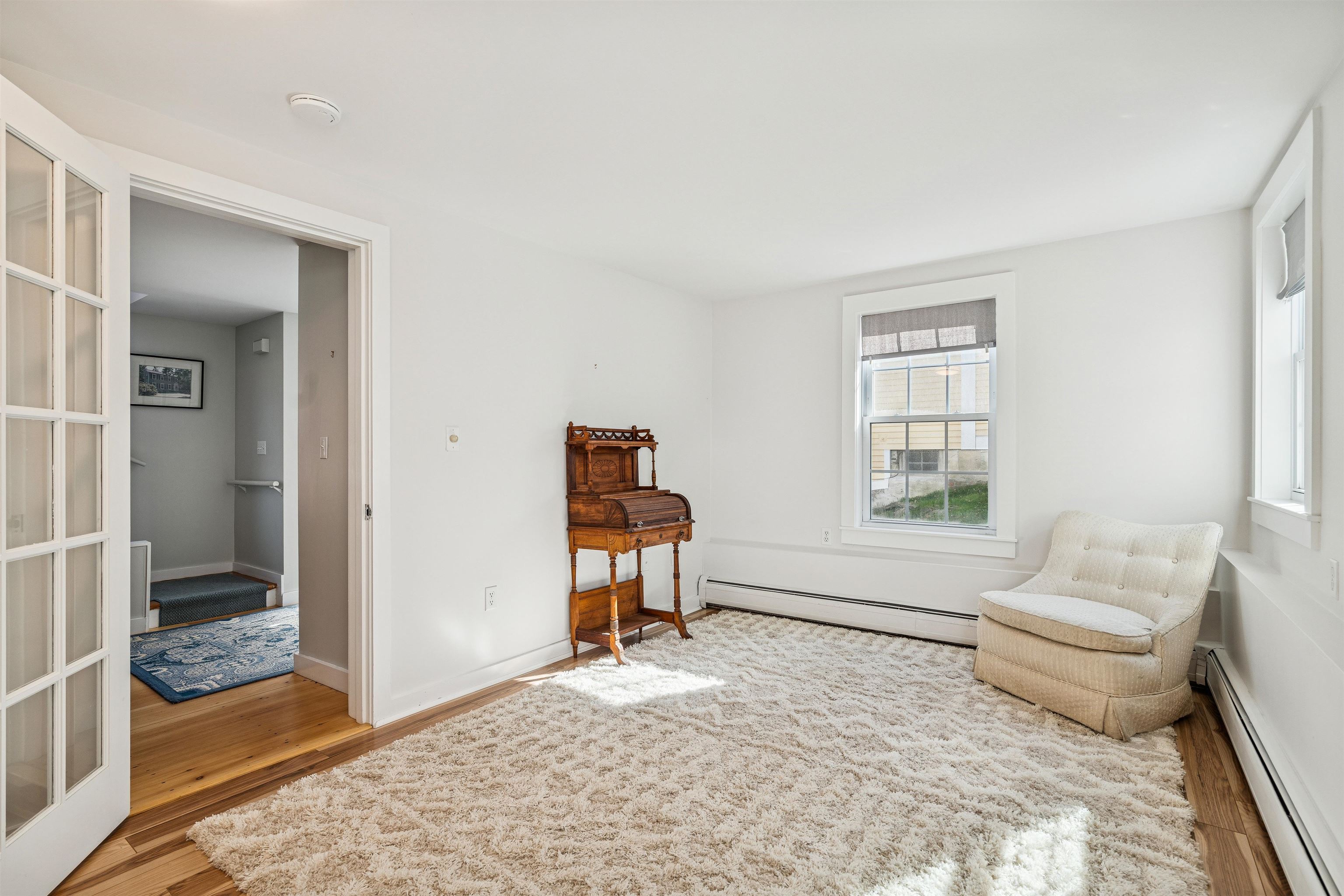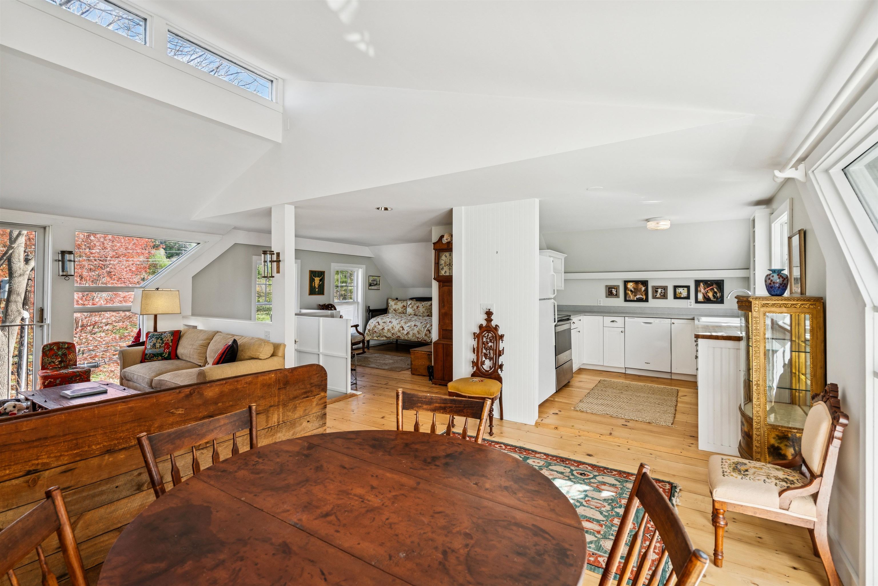 Idyllic Village condo located a short distance from the Woodstock Country Club, the elementary school, and downtown restaurants and shopping. Perched at the top of Terrace St., there are lovely views across to Mt. Peg, the golf course and Vail Field. Around back, the sunlit deck welcomes you for a morning coffee or dinner on the grill. Tiered gardens and wood steps rise to an upper level grass yard and common area. Inside, beautiful wide pine floors run throughout the condo on both floors. On the main level there are two large bedrooms, both of which share a full bath and there is a spacious foyer with open stairs to the second floor. Upstairs, the floor plan is open and bright. The living room, which has high vaulted ceilings and views across South Road, connects to the dining area, which opens to the kitchen. There are sliding glass doors to the back deck and warm afternoon sun shines in. Across the top of the stairs is an office/den, ideal for a pullout couch, with a 3/4 bath attached. Convenient in town living either as a primary residence or second home getaway.