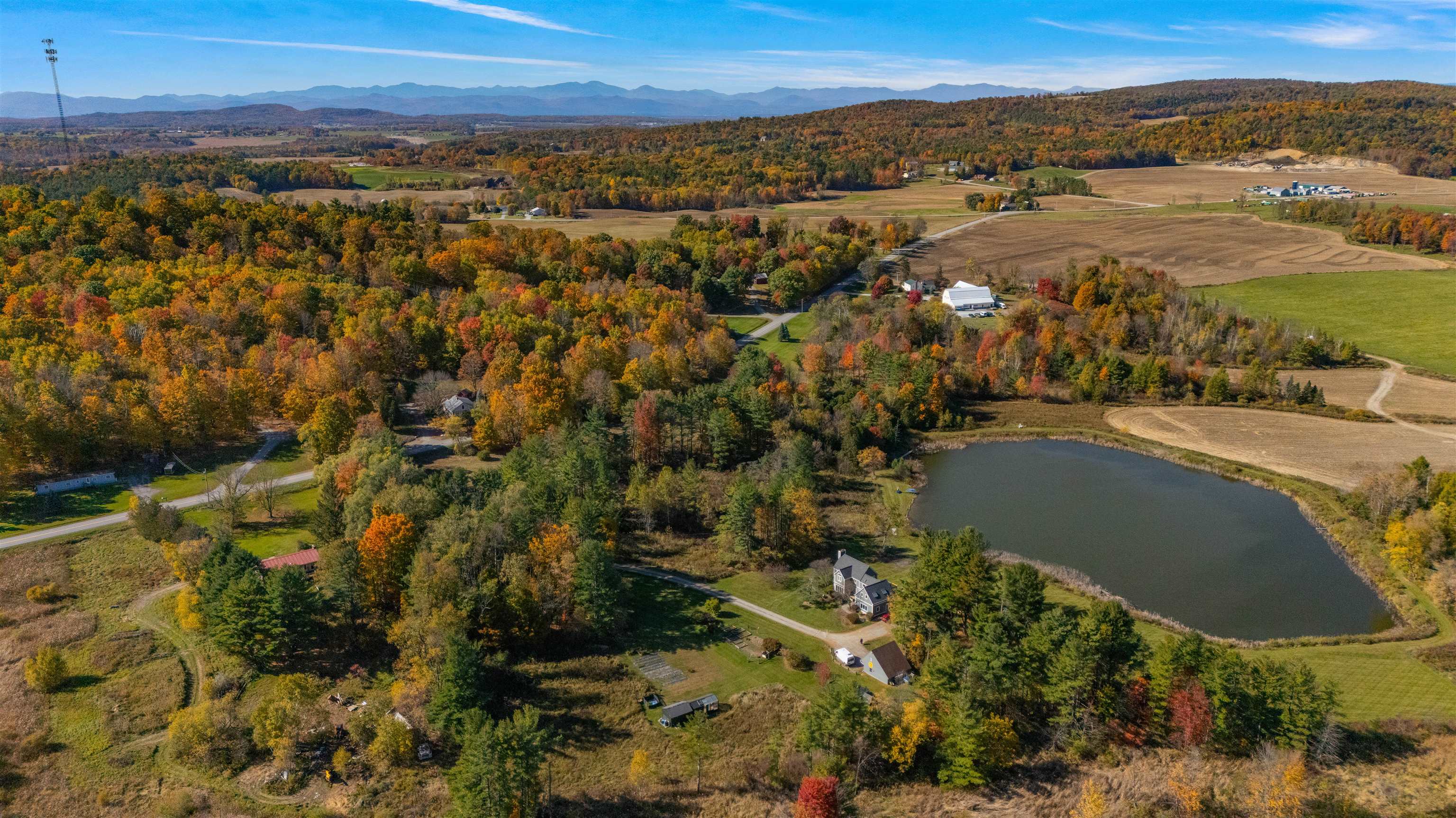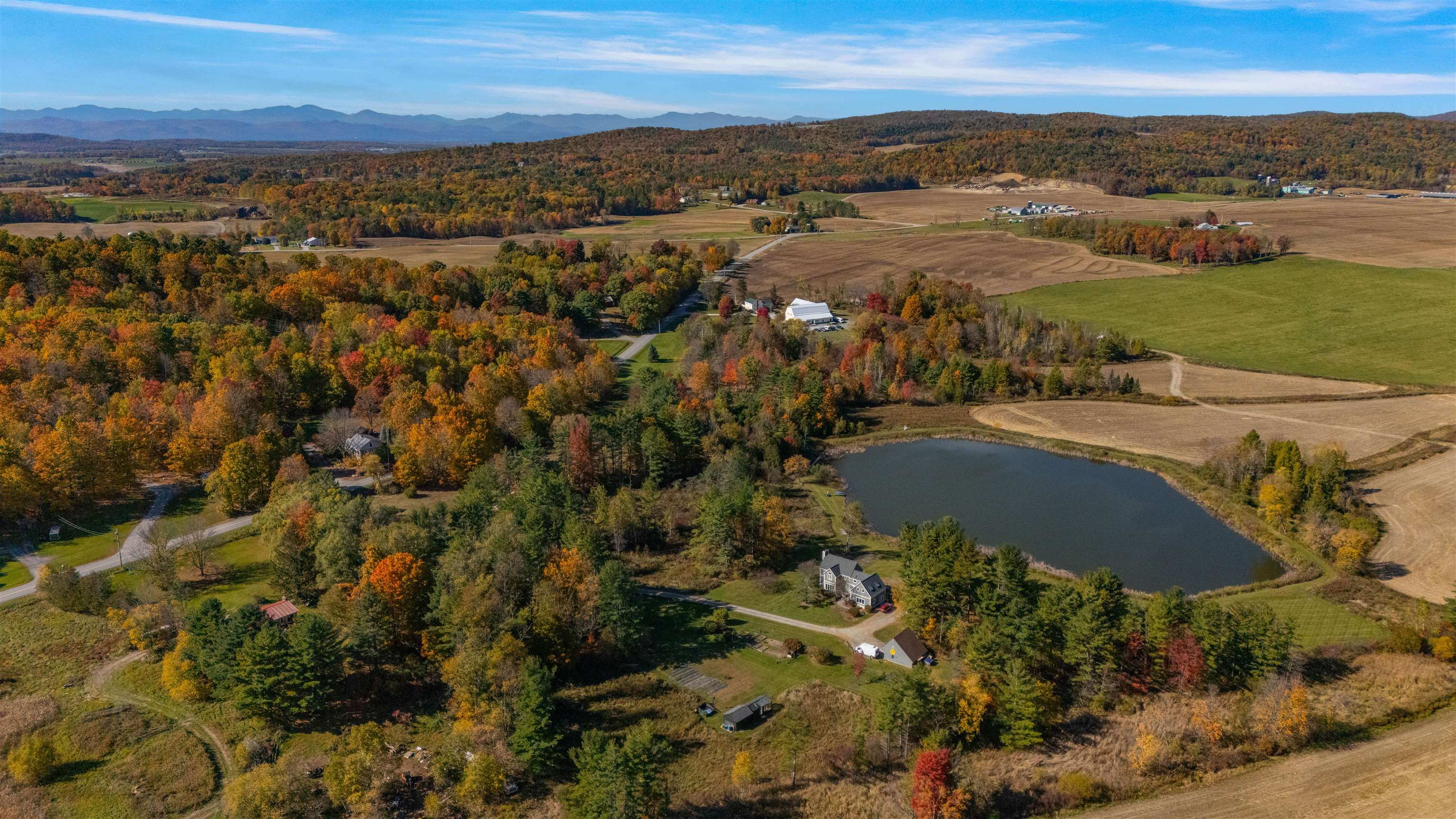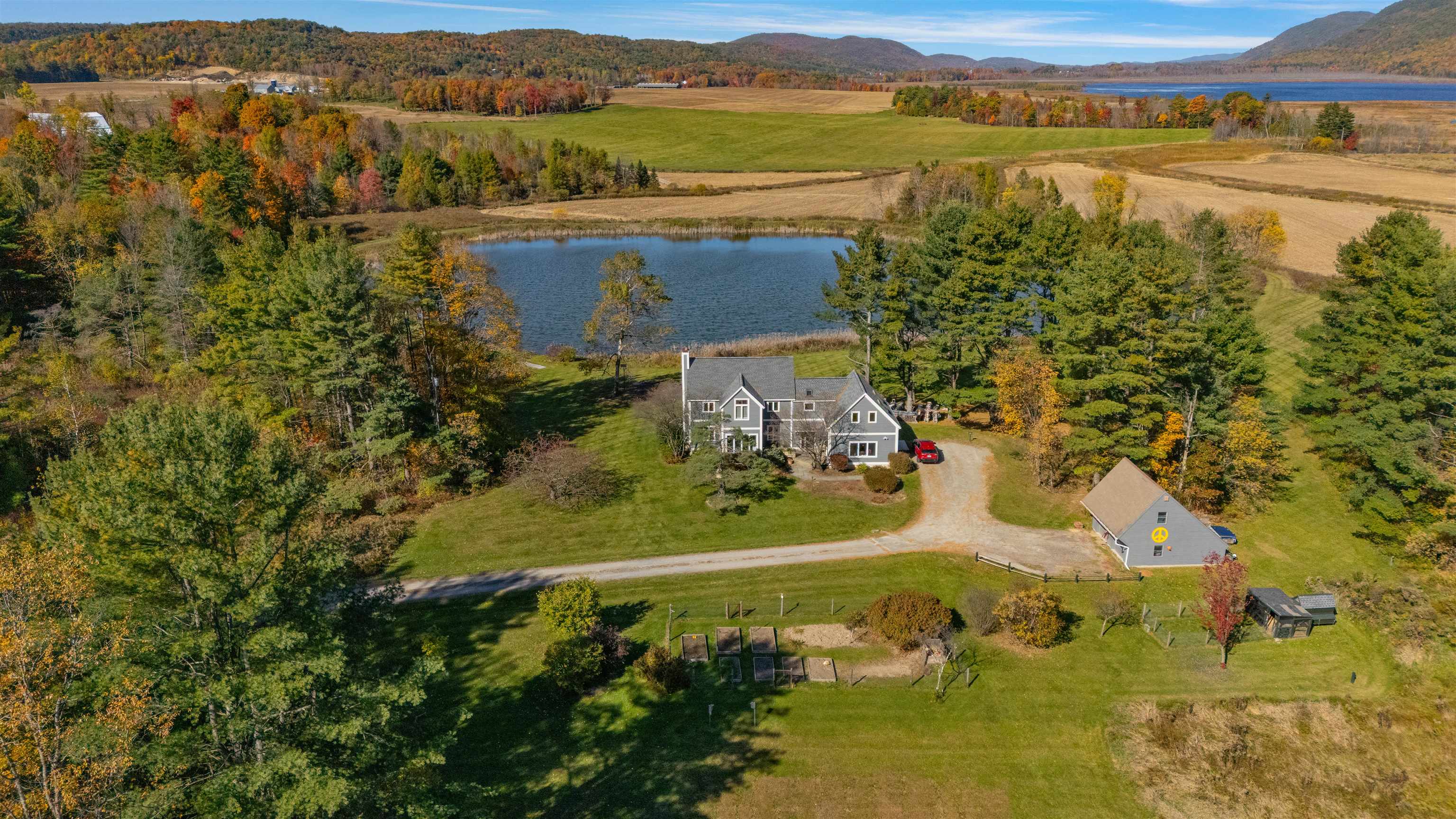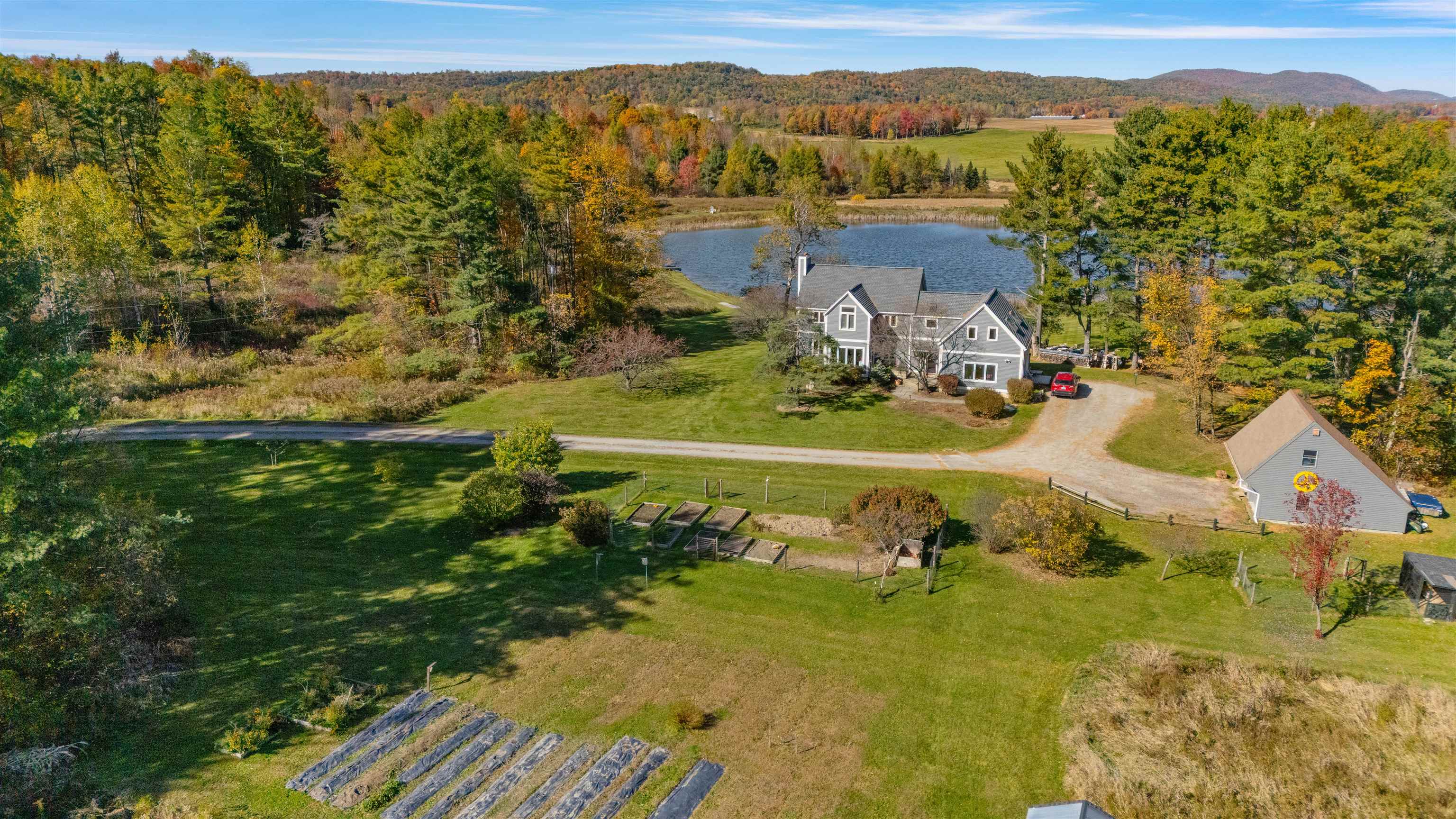 This beautiful contemporary home is hidden from view in a quiet valley just outside Bristol Village. Built to take advantage of one of the most spectacular views in Vermont, this home offers light and comfort in every space. Enjoy sunsets over the private pond, rolling hills, and farm fields. Look north and catch the peek-a-boo views of the southern end of Bristol Pond and the long views of the Hogback Mountains. The eastern side of the home faces the open raised garden space, the Greenhouse and another incredible mountain view. There is a sense of awe in every season, from cool dips in the pond or reading your favorite novel by the pond on a summer evening, skating and snow covered hills in the winter or the amazing foliage that is currently putting on a show. Ample room family and guest, with the flexible layout and private spaces. Once used as a family compound, there are three kitchens creating private living areas. The main level is an open concept space with exposed beams, and wood flooring. As each room flows to the next, there a little extra, including a lovely screened side porch off the kitchen, the slider and deck from the dining room, or the soapstone woodstove and eye popping views from the living area. Also, a two car garage with walk up storage area, a chicken coop,
