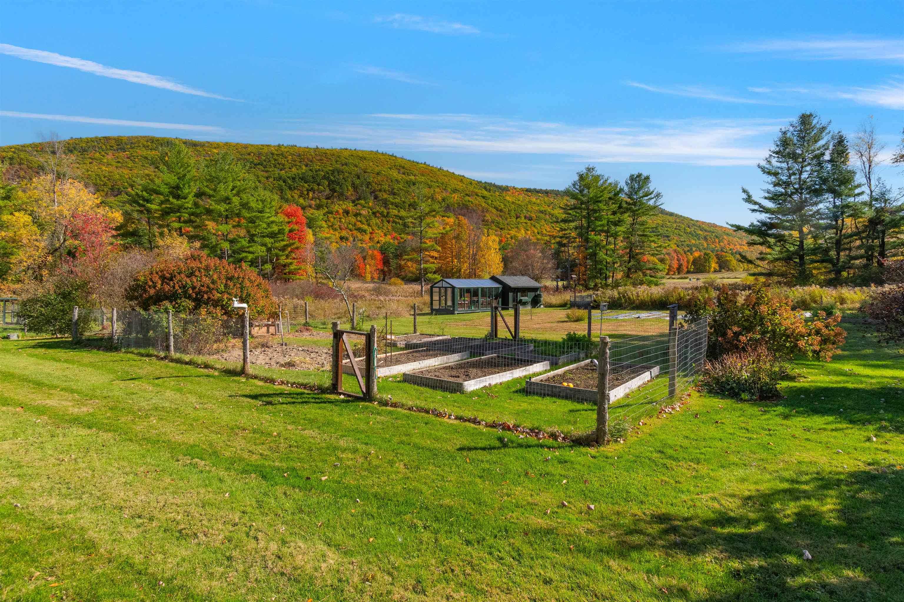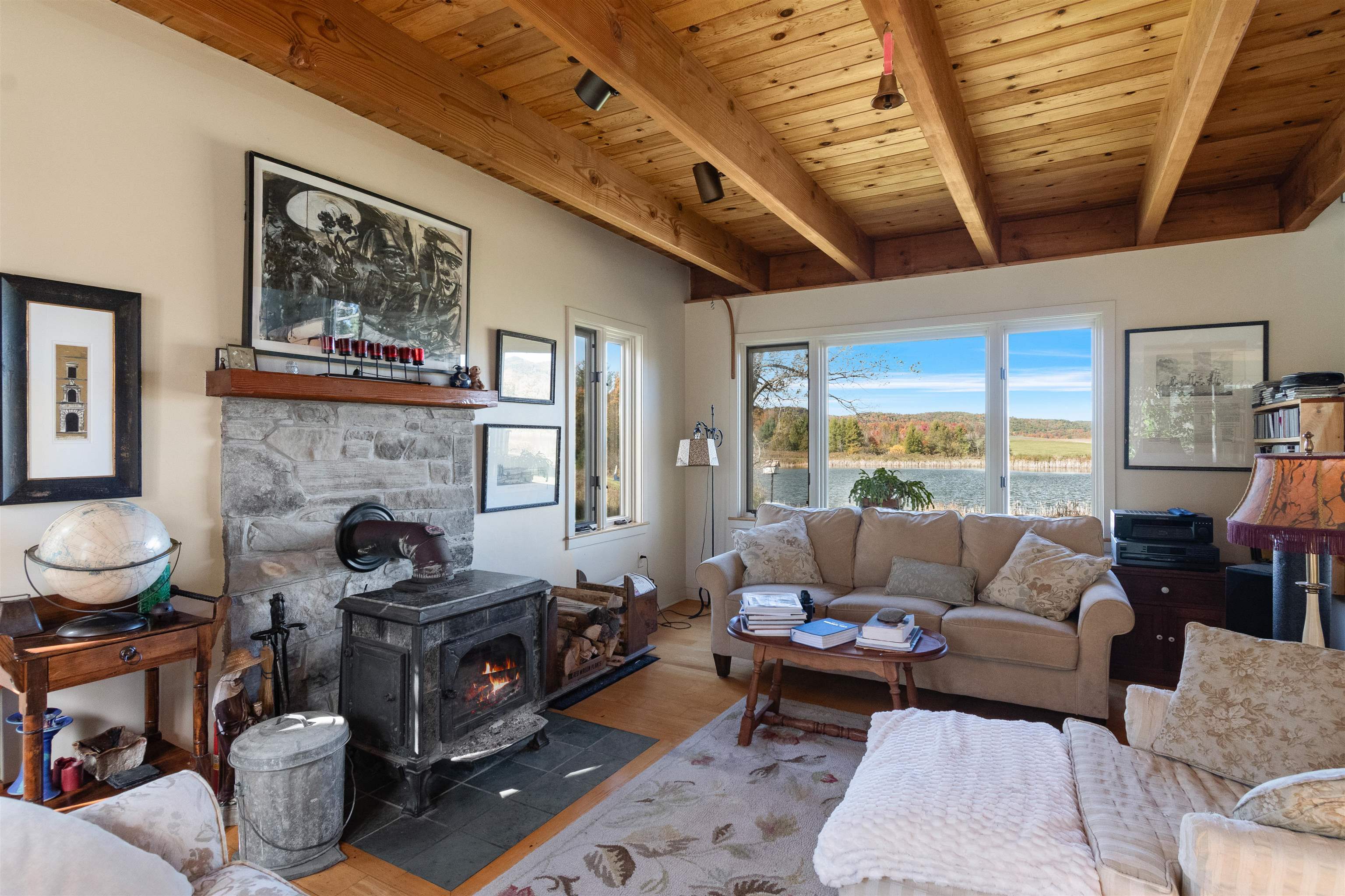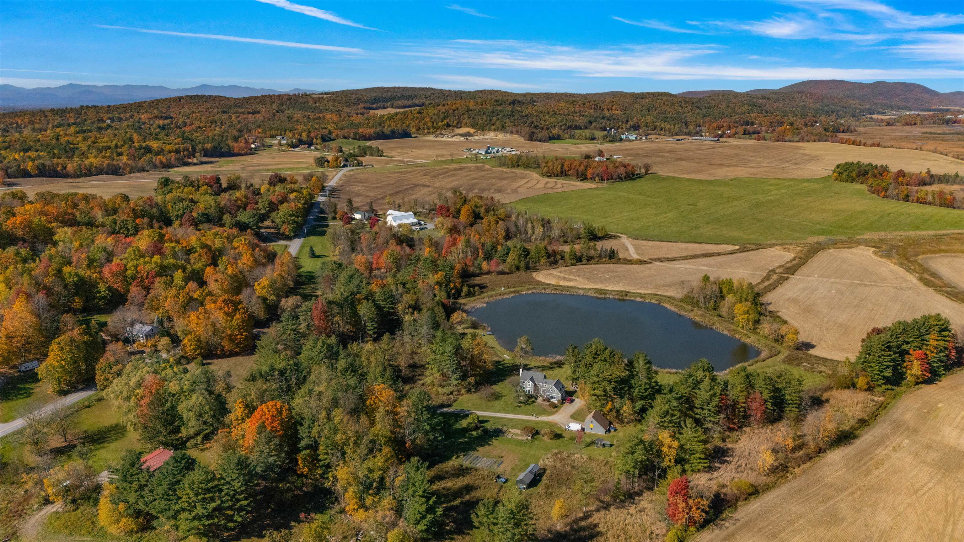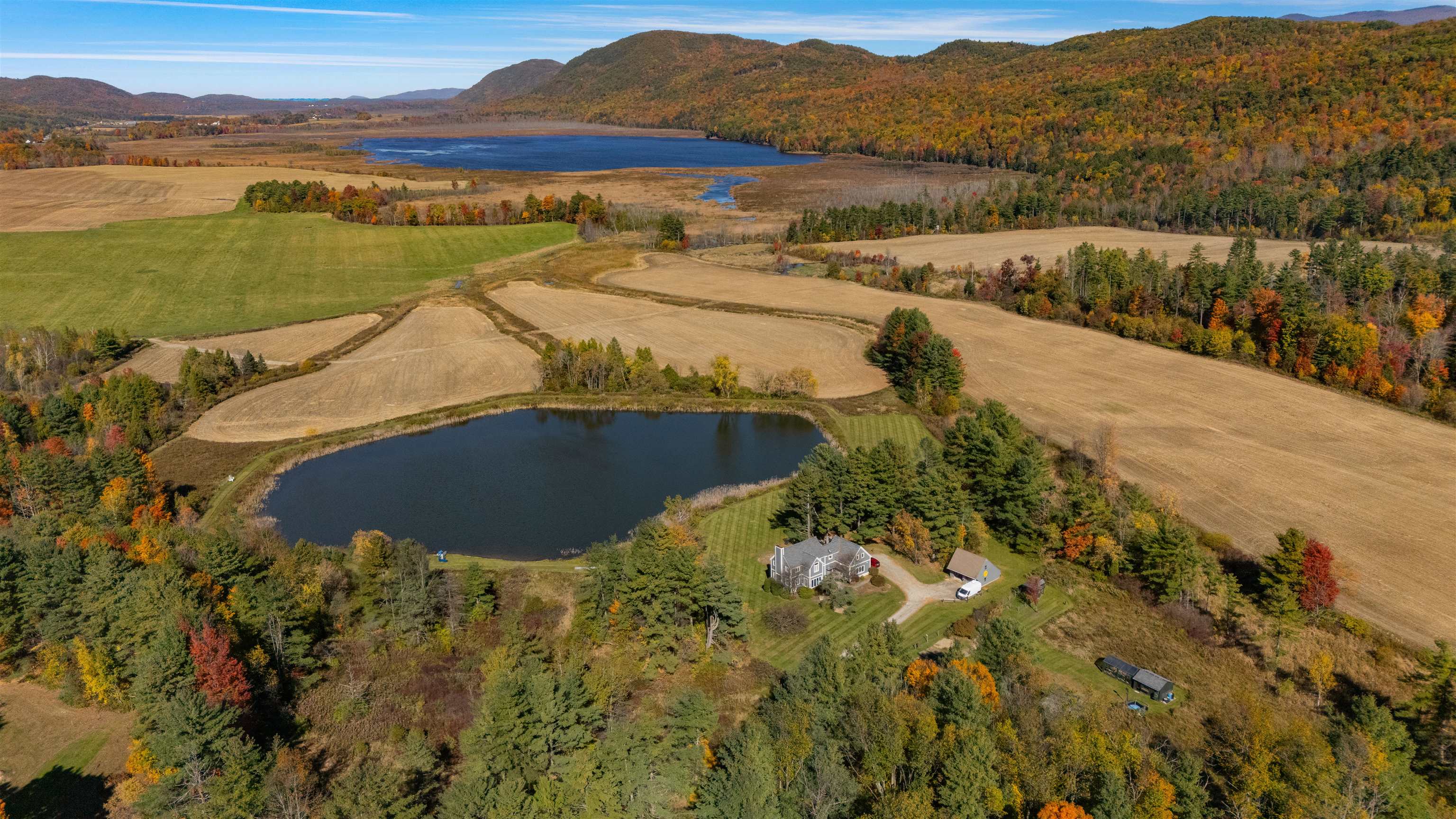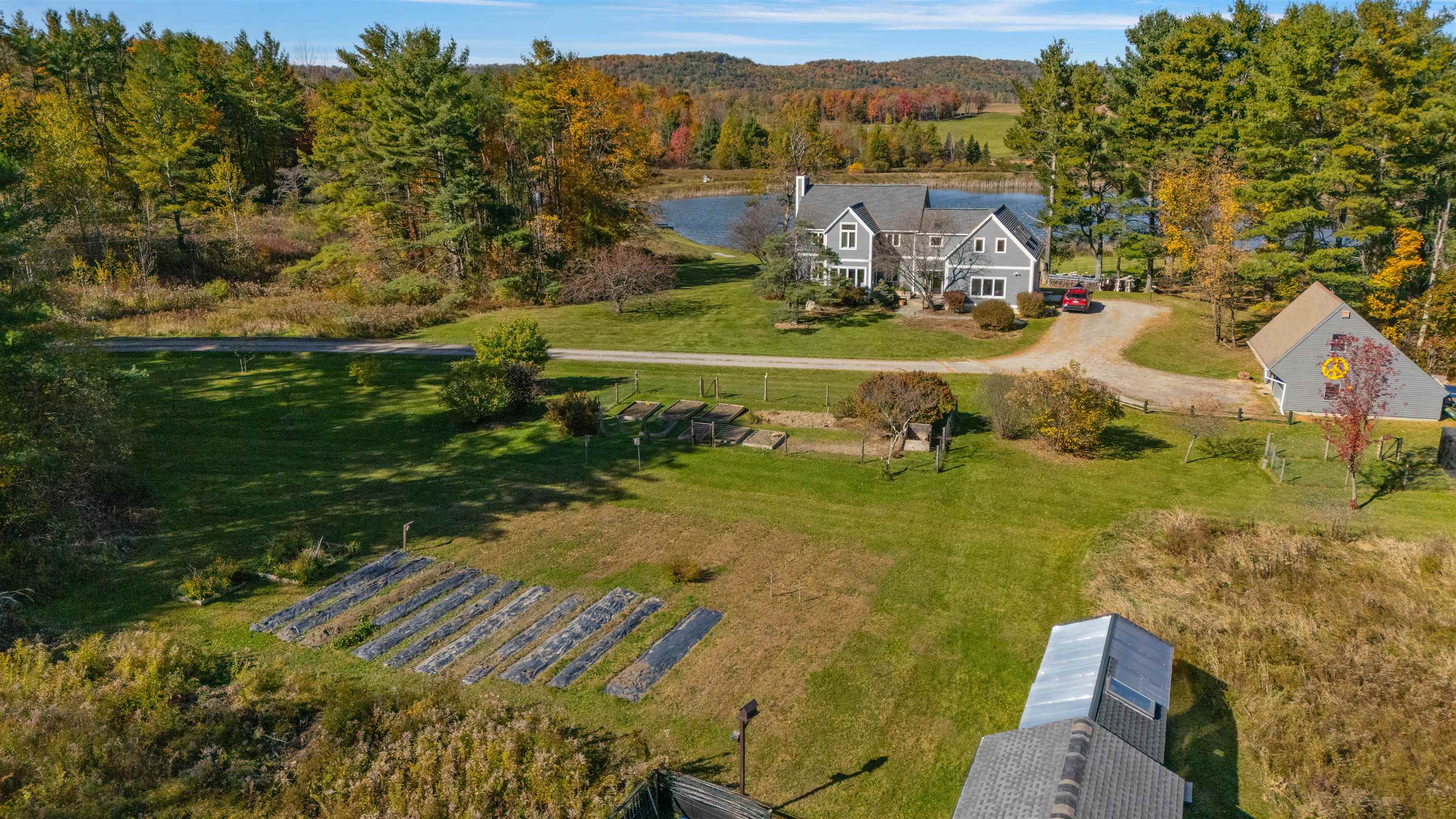 This beautiful contemporary home is hidden from view in a quiet valley just outside Bristol Village. Built to take advantage of one of the most spectacular views in Vermont, this home offers light and comfort in every space. Enjoy sunsets over the private pond, rolling hills, and farm fields. Look north and catch the peek-a-boo views of the southern end of Bristol Pond and the long views of the Hogback Mountains. The eastern side of the home faces the open raised garden space, the Greenhouse and another incredible mountain view. There is a sense of awe in every season, from cool dips in the pond or reading your favorite novel by the pond on a summer evening, skating and snow covered hills in the winter or the amazing foliage that is currently putting on a show. Ample room family and guest, with the flexible layout and private spaces. Once used as a family compound, there are three kitchens creating private living areas. The main level is an open concept space with exposed beams, and wood flooring. As each room flows to the next, there a little extra, including a lovely screened side porch off the kitchen, the slider and deck from the dining room, or the soapstone woodstove and eye popping views from the living area. Also, a two car garage with walk up storage area, a chicken coop,