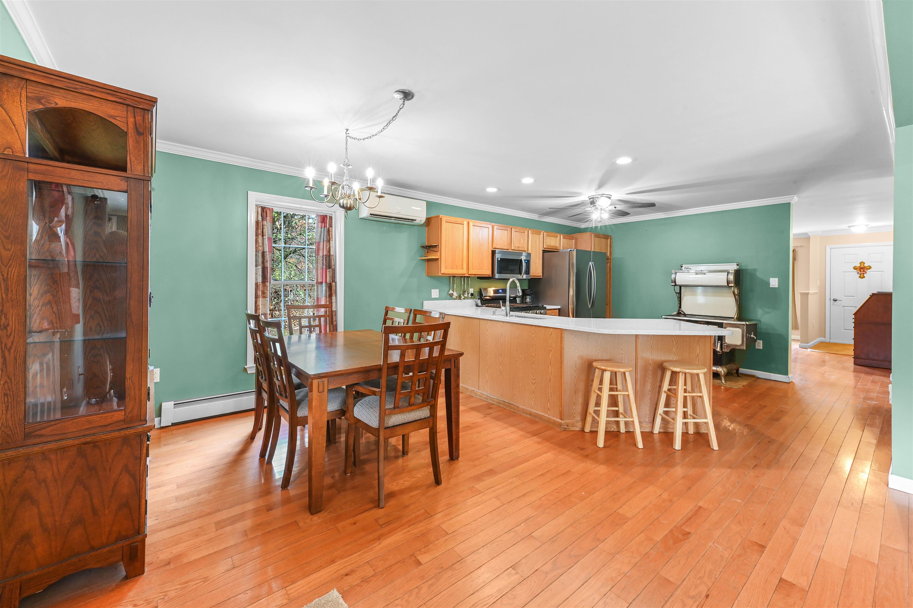 Move-In Ready 3 bed two bathroom Home situated on 3.67 acres of land in Historic Bakersfield Village. Vermont Energy efficiency is a standout feature, with owned solar panels and three mini-split units providing year-round comfort while keeping utility costs low. This is a spacious home, perfectly situated in the heart of Bakersfield. Built in 2014 with low-maintenance living in mind, this home offers a rare combination of modern convenience and small-town charm. Inside, you'll find a thoughtfully designed layout featuring a first-floor bedroom, full bath, and laundry ideal for single-level living. The kitchen is beautifully updated with new appliances and stunning quartz countertops, perfect for everyday use and entertaining. The home is further enhanced with electric-powered awnings, offering shade and convenience at the touch of a button. Other upgrades include new carpeting and a combination washer/dryer. Set on a large lot with a well-maintained yard, this property offers both space and potential. Road frontage at the back side of the lot presents a unique opportunity to subdivide (subject to local approvals). Two sliding doors lead to a sizeable deck great for entertaining. Don't miss your chance to own this move-in ready gem in one of Vermont’s most picturesque communities.