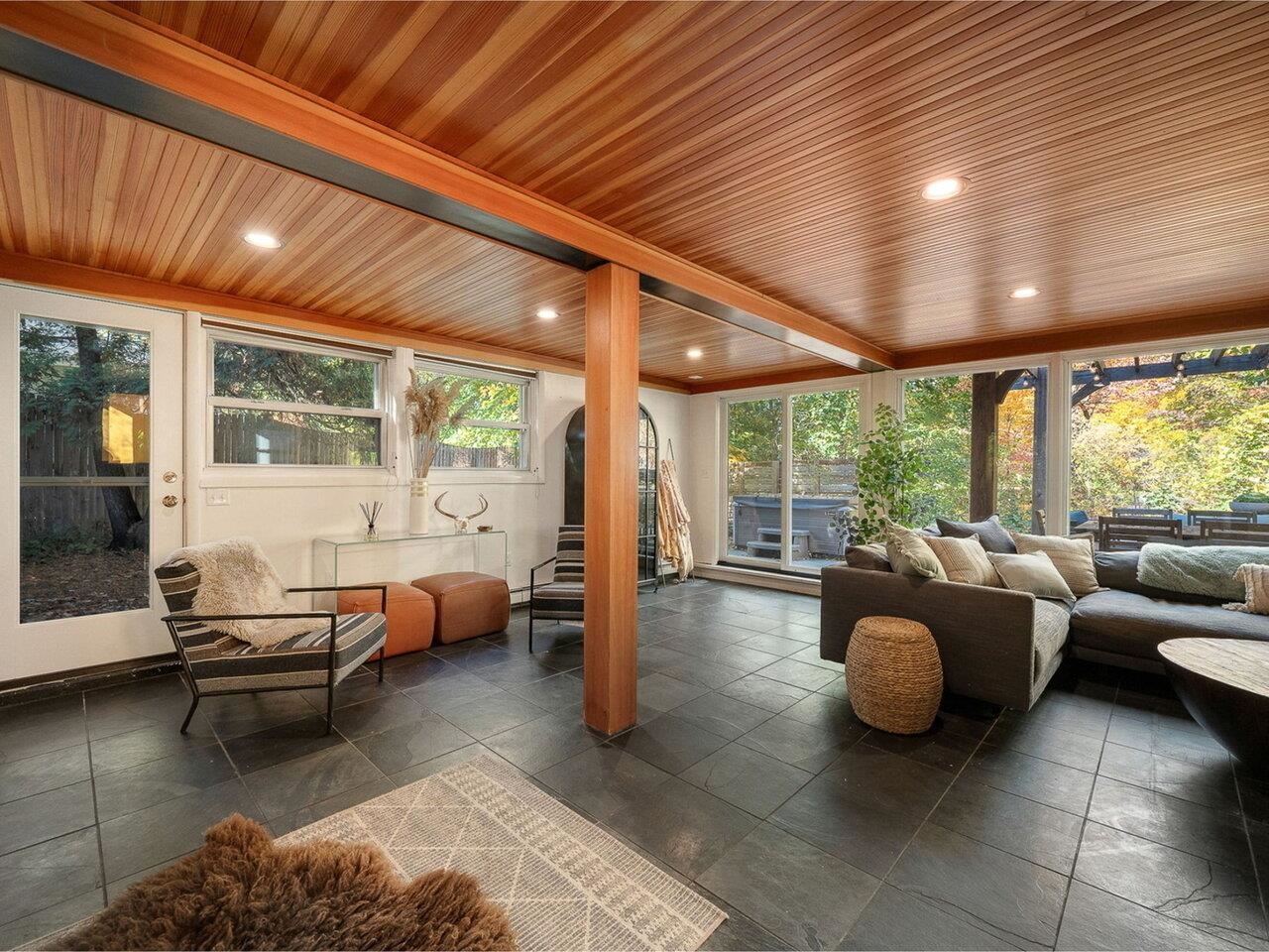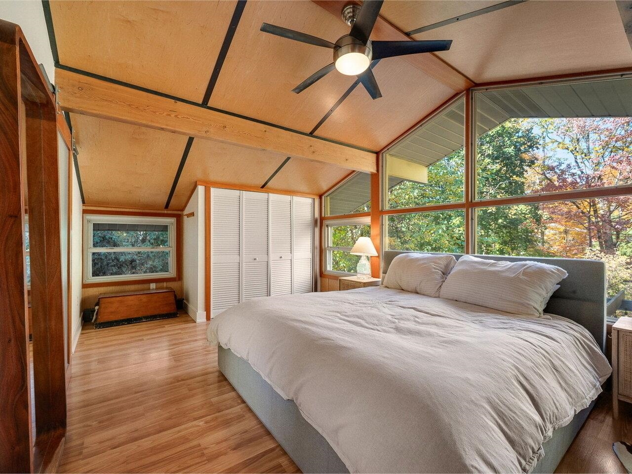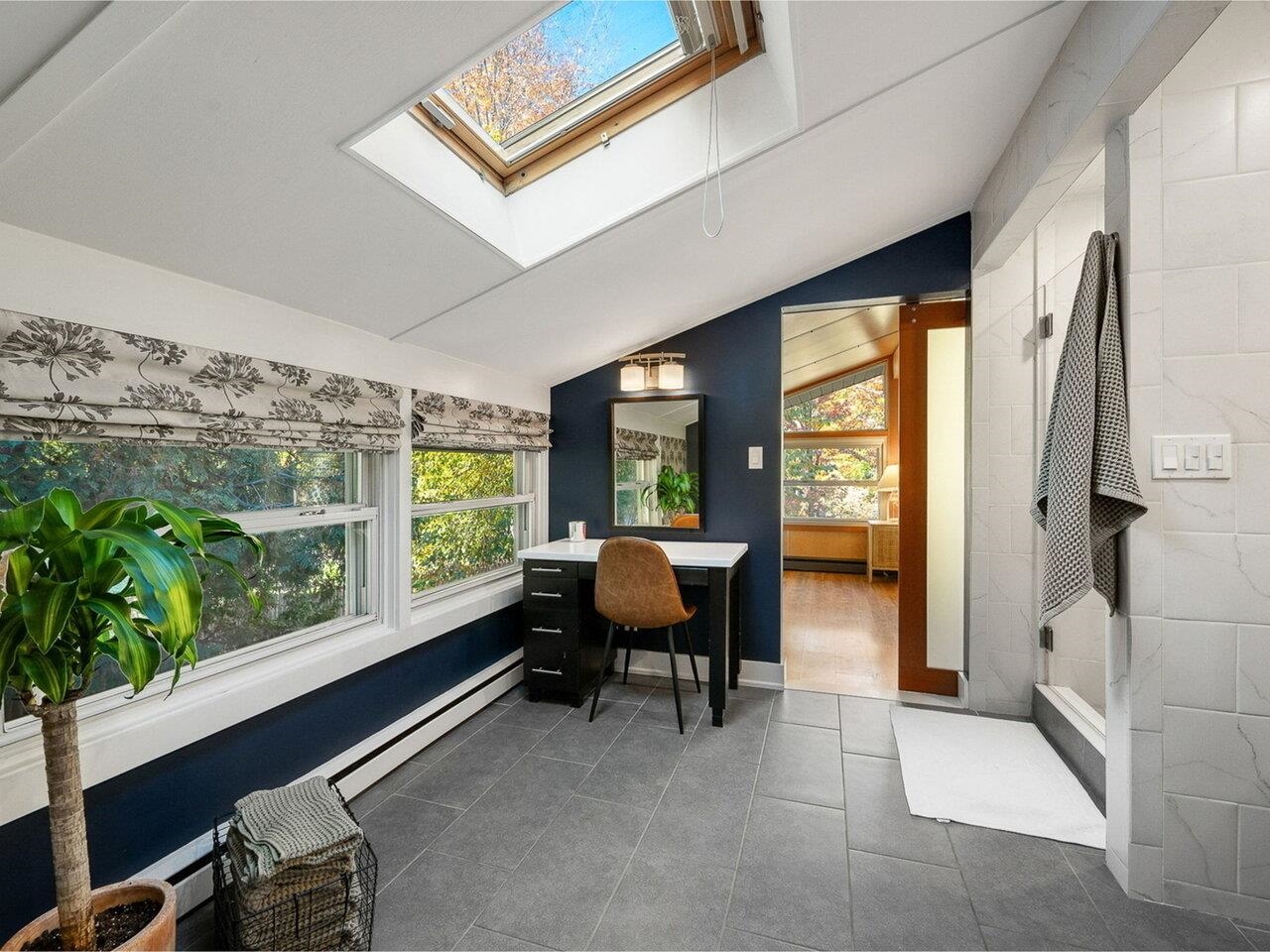 Welcome to this fantastic home in Burlington’s South End Hill Section located in the desirable Prospect Parkway neighborhood! Upon arrival you will appreciate the home’s curb appeal: a bluestone walkway, mature landscaping, custom driveway pavers, & attractive cedar shakes & garage doors. Greet guests & unload your baggage in the spacious entryway that connects the garage to the home - a beautiful space with radiant floor heat & 15’ floor-to-ceiling windows bringing in sunlight all day. All 3 bedrooms & an updated guest bath are on the upper level. Primary en suite has floor-to-ceiling windows, wood-burning fireplace, lots of closet space, & an updated ¾ bath with tiled shower & additional closet. The main level has an open floor plan, great for entertaining, kitchen upgrades, & a cozy living room with slate floors that opens to bluestone patio with stone walls, fire pit, & pergola. Backyard is fenced in. Privacy guaranteed with land to the north protected by city, cannot be developed. Recent practical updates & maintenance: new roof (2024), new flooring in kitchen/dining/laundry room (Oct 2025), professionally cleaned windows, dryer vent/ furnace/chimney cleaned & ready upon move in. Location is convenient to Burlington’s bustling South End, abundance of restaurants, grocery stores, waterfront, downtown & I-89. 1.5 hrs to Montreal, 3.5 hrs to Boston. Just an hour to 4 ski resorts: Stowe, Sugarbush, Bolton & Smugglers Notch! OPEN HOUSE SAT 10/25 11am-1pm.