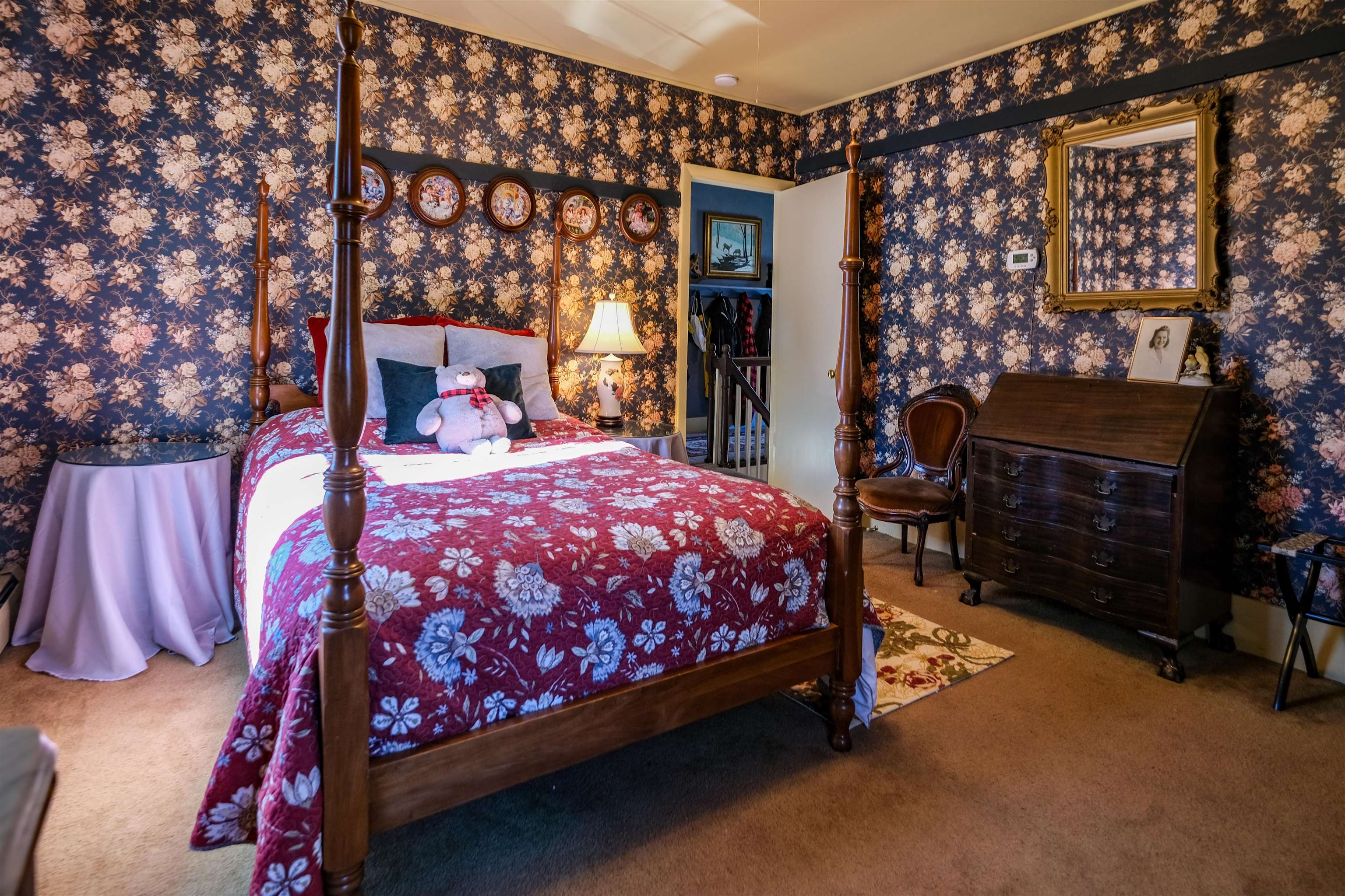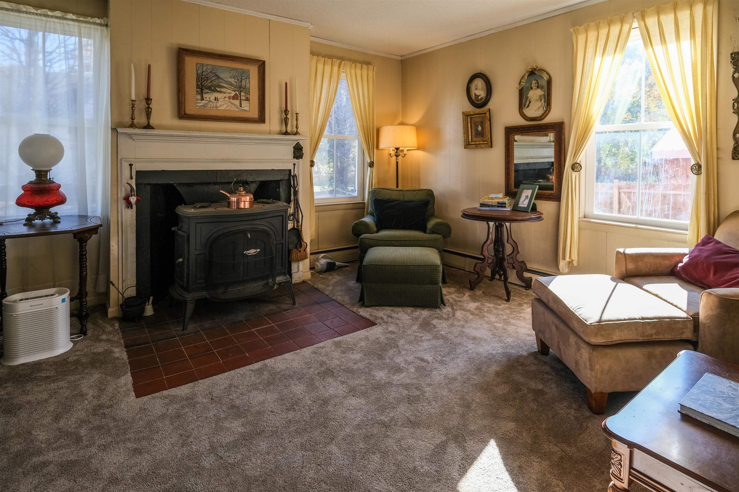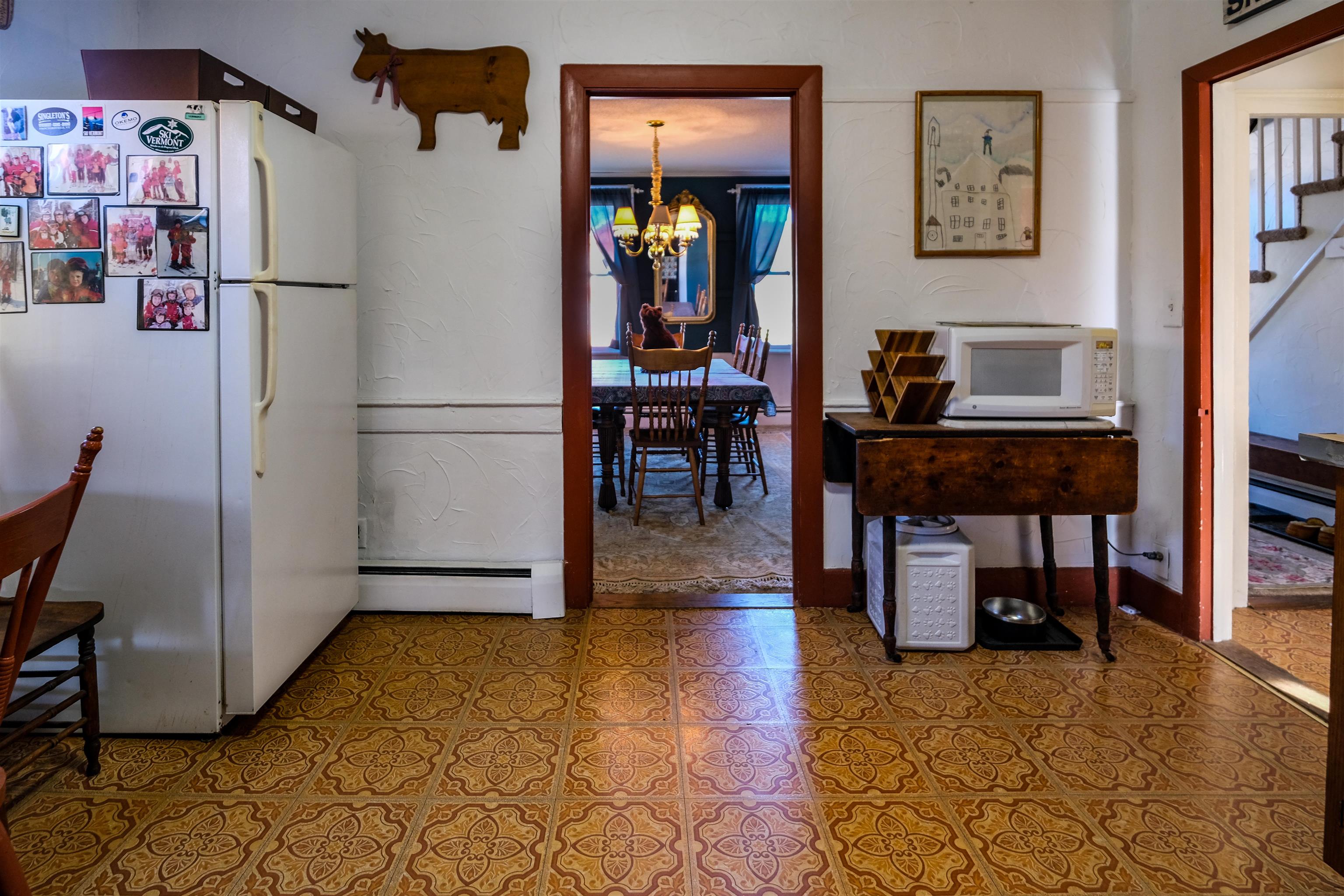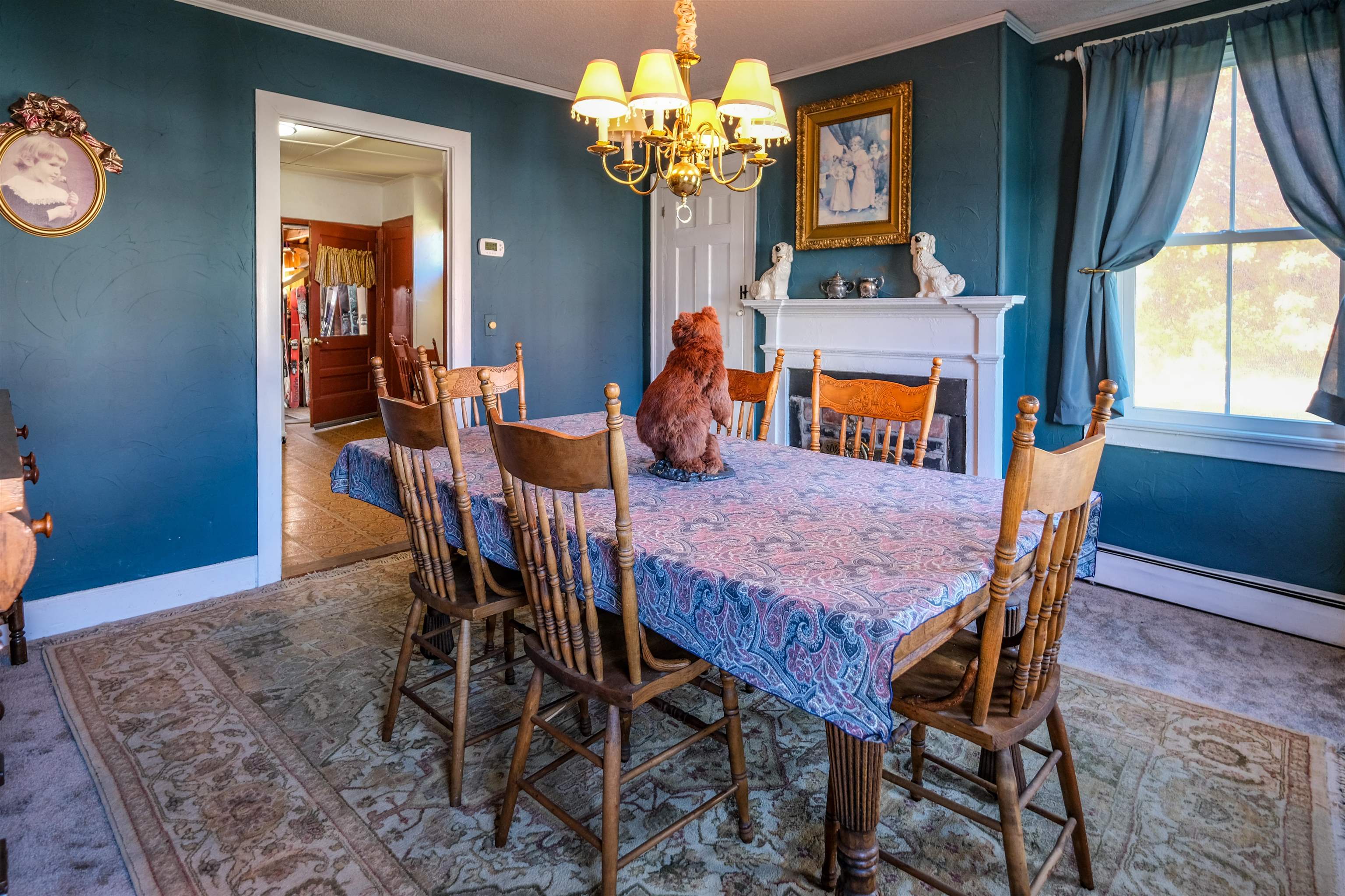 - Dining Area, Wood Fireplace, 3+ Fireplaces, Furnished, Kitchen/Dining, Natural Light, Natural Woodwork, Indoor Storage, Wood Stove Insert, Walkup Attic