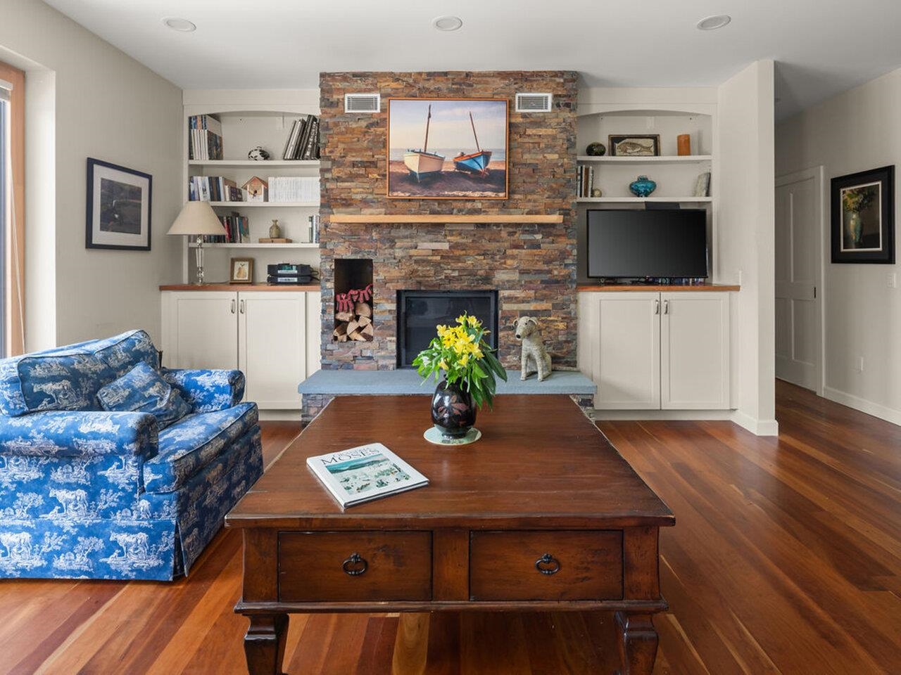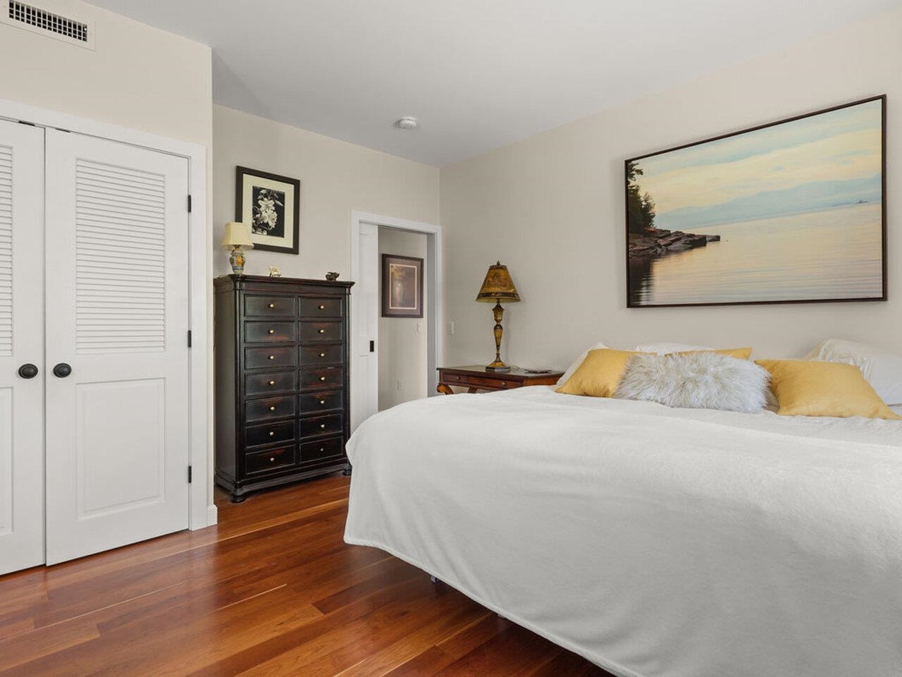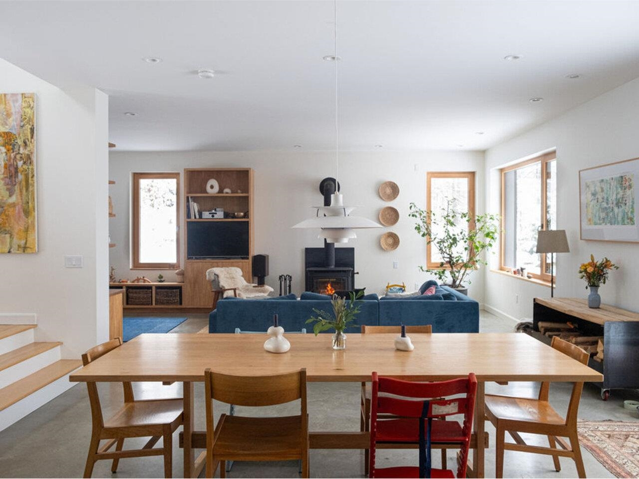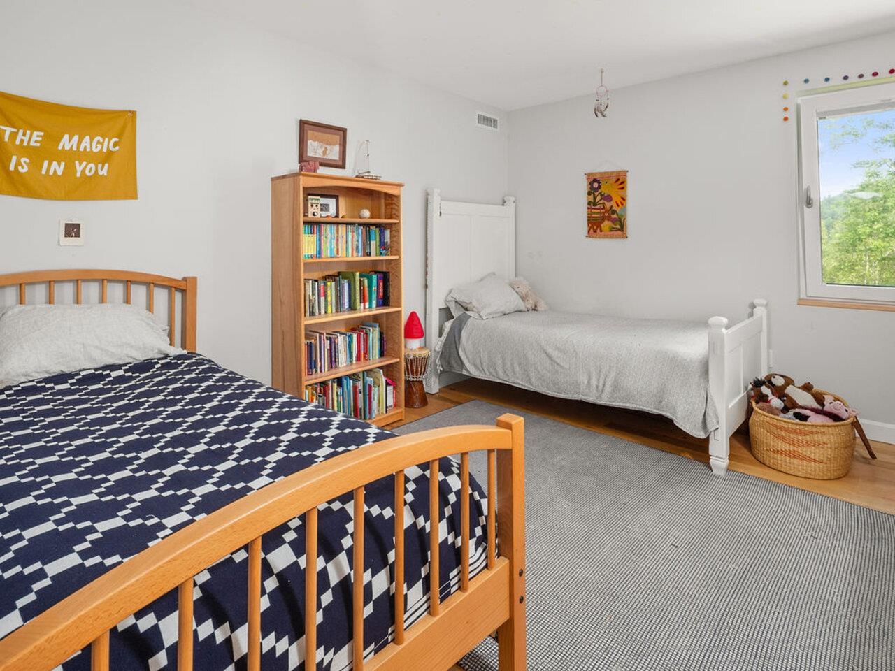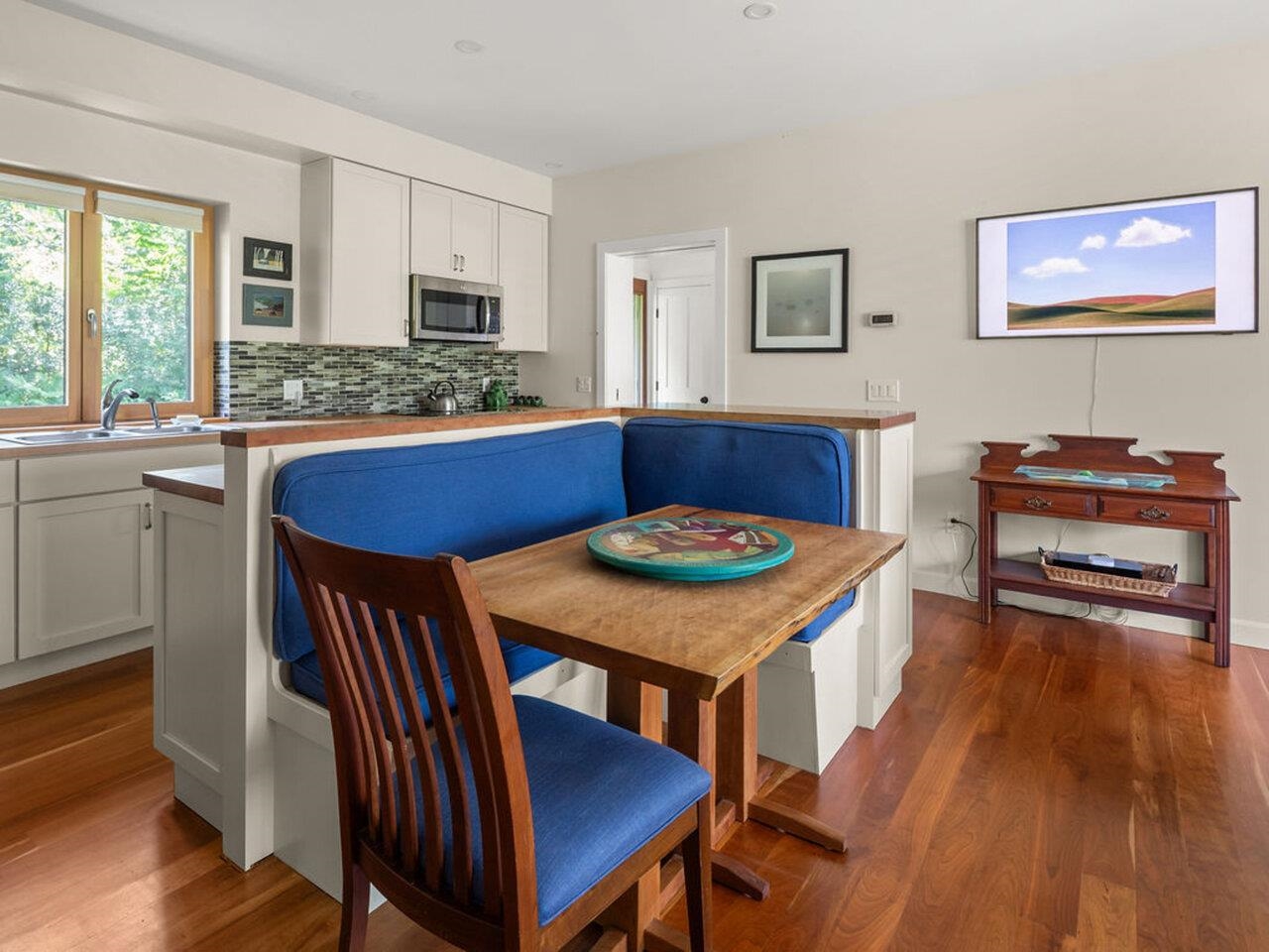 Discover unparalleled modern design and energy efficiency in this modern Farmhouse located on 1.74 acres in a very desirable Richmond neighborhood. Situated on a dead-end dirt road with adjacent access to biking trails, this 4, 100 sq ft residence with an ADU offers highly sustainable building and construction. The home features a concrete slab foundation, an 18" wall system, and triple-pane Zola Euro windows. The main house showcases a massive open living/dining/kitchen space. The cook's kitchen features Carrara marble countertops, a 6-burner Bertazzoni Duel Fuel range, custom island and spacious walk-in pantry. The second floor features 3 spacious bedrooms and a spa-like marble and subway-tiled bathroom. Finishes include polished concrete and maple flooring, plus open shelving and built-in cabinets crafted from ash sourced from the property. A convenient guest room with a Murphy Bed offers first-floor flexibility. The property includes a full Accessory Dwelling Unit (ADU)/In-Law Apartment with an open kitchen/living/dining area anchored by a striking fieldstone fireplace with Stuv insert, cherry wood floors, butcher block counters, and its own steam shower and laundry area. The exterior boasts pine tar siding. A courtyard, concrete retaining walls, 2-car garage and EV charger complete the property. Close to I-89, Richmond Village, a short drive to UVM Medical, Burlington Airport and many local ski areas.