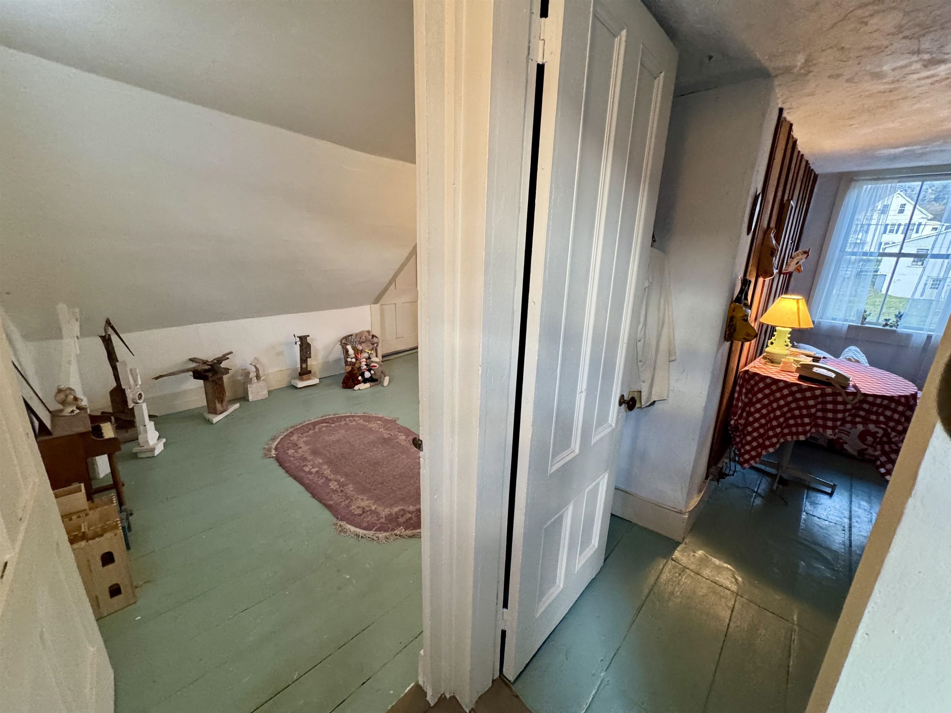 This charming historic New England home has been recently improved upon and brought back to life by its current owners, yet is ready for a new chapter! Located just outside of the heart of Corinth, VT, a township historically and recently featured in a Hollywood production, this home blends a historic property within a charming township with some acclaim and waterfront! The Tabor Branch passes along the boundary of this property before continuing underneath the recently re-constructed stone bridge that create the start of Chicken Farm Road, creating an incredible ambiance of running water and an incredible sight from either the covered porch or the various windows of the home. A detached barn/garage provides two parking spaces along with additional parking space on the lot. Upon entering the home, a mudroom with interior access to the walkout basement greets you, followed by the dining/kitchen for the home and the full bathroom. Access to the covered porch and views of Corinth Township from the windows are along the northern side of the home, while a first floor living room currently provides a first floor sleeping option alongside the other living space which houses a historic piano. The upstairs of the home has two sizeable bedrooms and access to the attic space above the entryway. The basement is now a poured concrete floor with supports, all wiring has been modernized, and the home has ready and available internet. This is truly a special home.