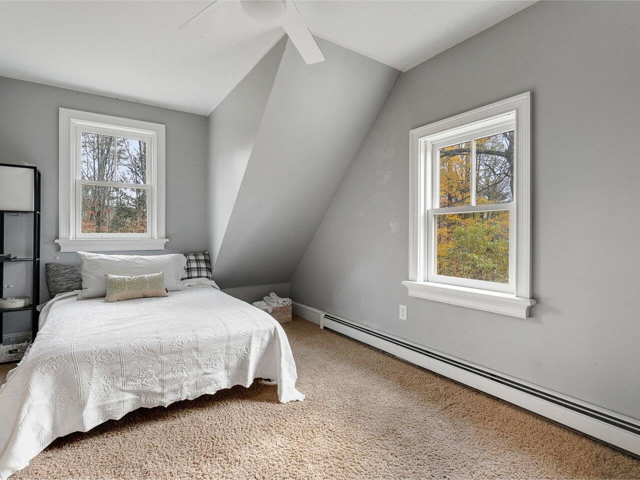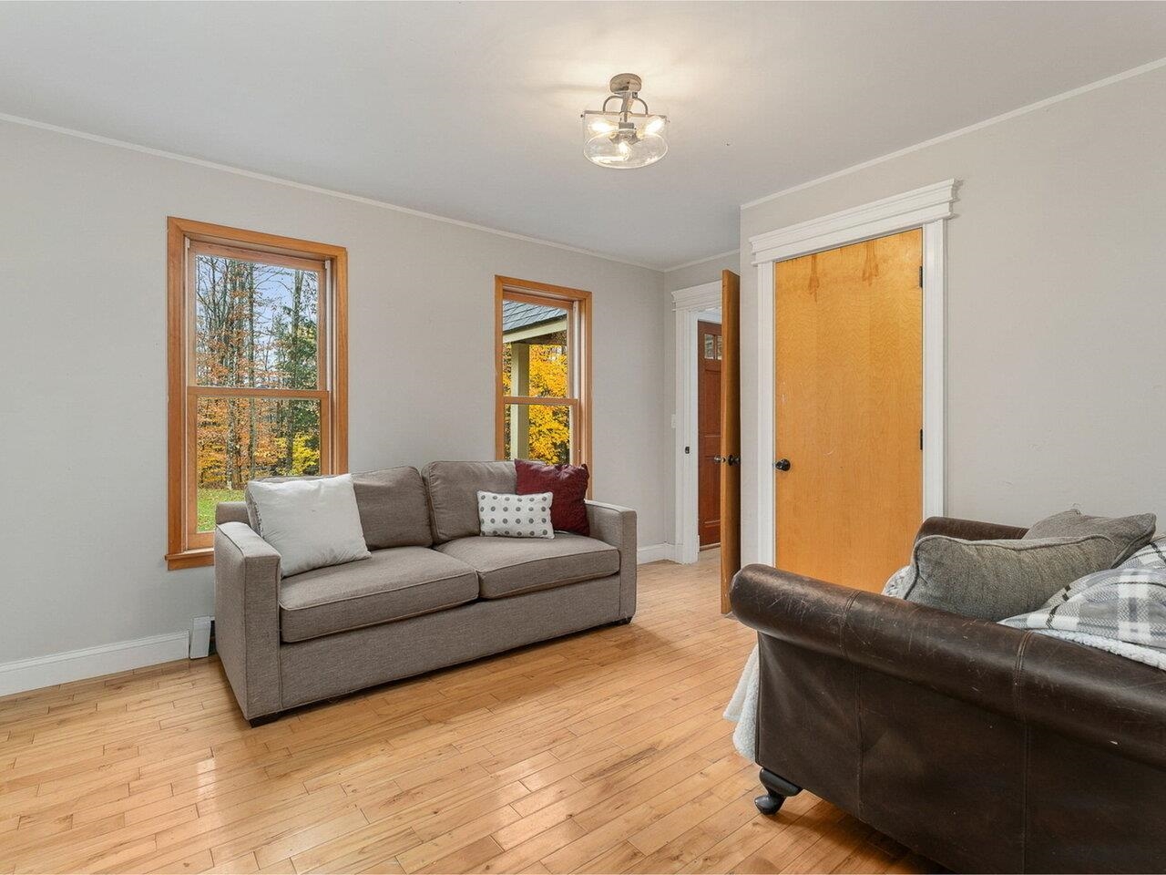 Beautiful, 4-bedroom, 3-bath home with gorgeous 3-stall horse barn on 10+ private acres in Jericho. Sited perfectly to take in nature, this home looks out to gardens, trees, or barn from every room. First floor has an open floor plan with maple floors and includes a generous eat-in kitchen with doors to large stone patio with stone walls and pergola. Dining room flows to living room with fieldstone fireplace, built-in shelves, and southwest exposed windows. First floor also features a den for quiet space, pantry/laundry room, full bath, and bedroom. Primary bedroom suite upstairs has a new beautifully remodeled bath with tiled shower and cathedral ceilings. Two other bedrooms and a full bath upstairs. The 3-stall 45' x 26' horse barn has 12' x 12' stalls, tack room and large unfinished space (holds 400 hay bales) above. Lovely and flexible lot includes landscaped gardens, dry paddock, grass area for round pen with 1.5 acres fenced, and 5 acres of woods that could be converted to pasture or trails. Keep a horse or use the space for other hobbies. Lots of storage in full basement, oversized 2-car garage with storage above, barn, and in shed. Don’t miss the adorable chicken coop too! 25-minute drive to UVM and close to Jericho Village and stores in Essex.