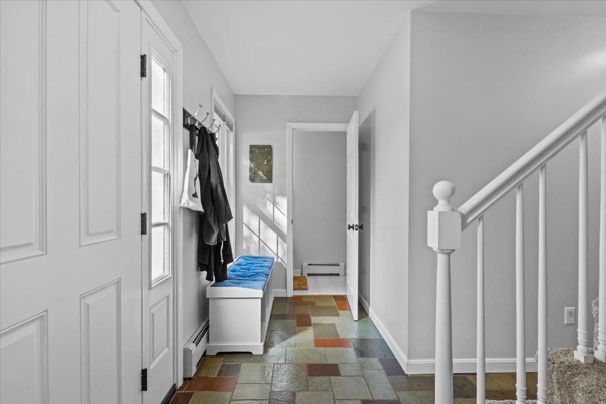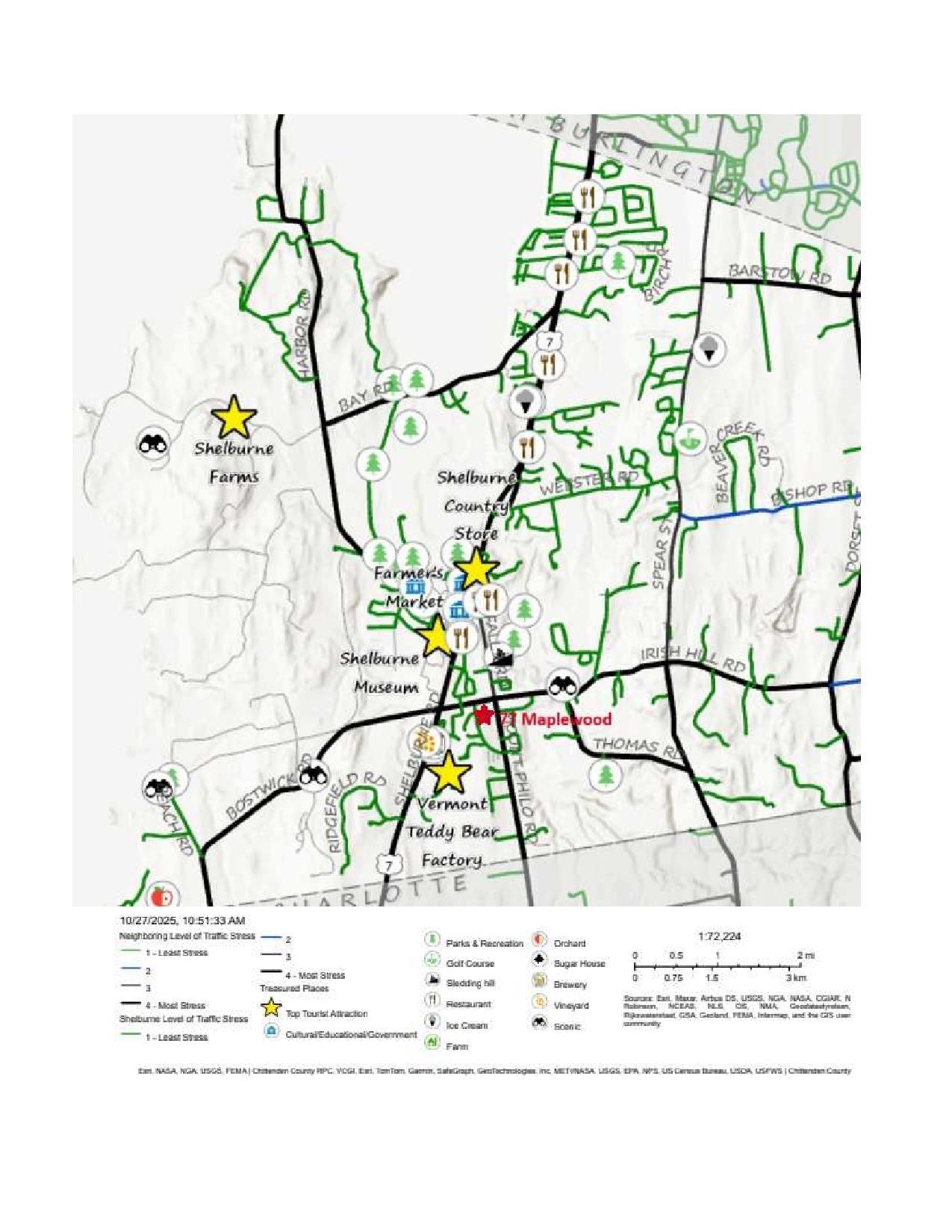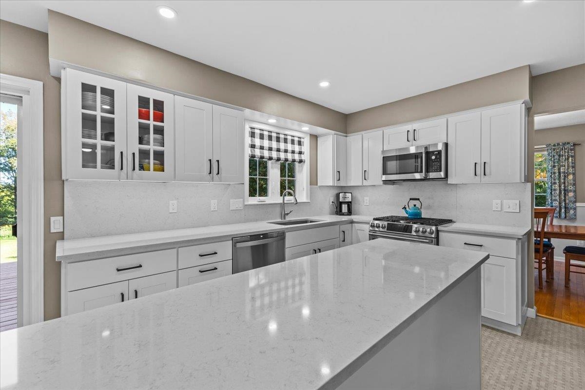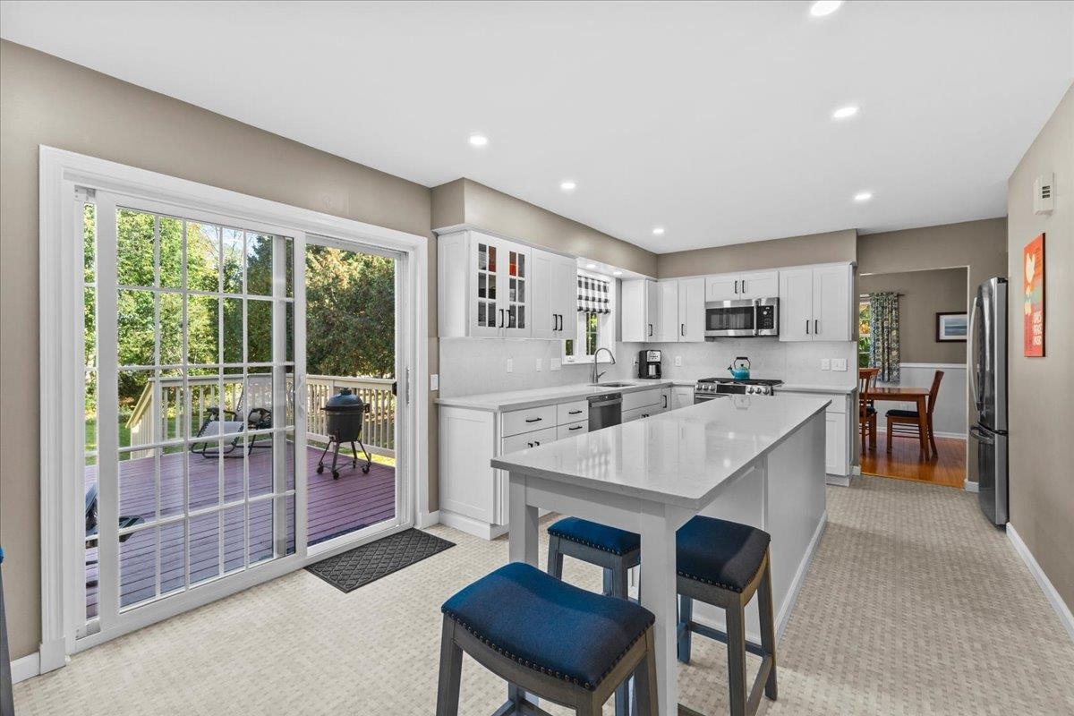 Delightful Shelburne 4-bedroom, 2.5-bath home sits on a spacious lot in a desirable neighborhood. Step inside to find a beautifully updated kitchen featuring quartz countertops, custom cabinetry, and a stainless steel gas range. Natural light floods the space through a large sliding door that opens to an expansive private deck—perfect for relaxing or entertaining. Just off the kitchen, the versatile dining room can easily double as a cozy den or home office. The front living room boasts bright hardwood floors, adding warmth and charm. A convenient half bath and a mudroom connecting to the oversized two-car garage finish off the main level. Upstairs, the primary suite includes a private 3/4 bath and generous closet space. Three additional bedrooms and a full bath complete the top floor. The lower level offers a finished bonus space plus additional unfinished area for storage or future expansion. Outside, enjoy a peaceful, tree-lined backyard offering privacy and room to play. This home is just a short stroll to Shelburne Village, the Shelburne Museum, local shops, and restaurants. Commuting to Burlington is easy and convenient making this the ideal home for both comfort and location.