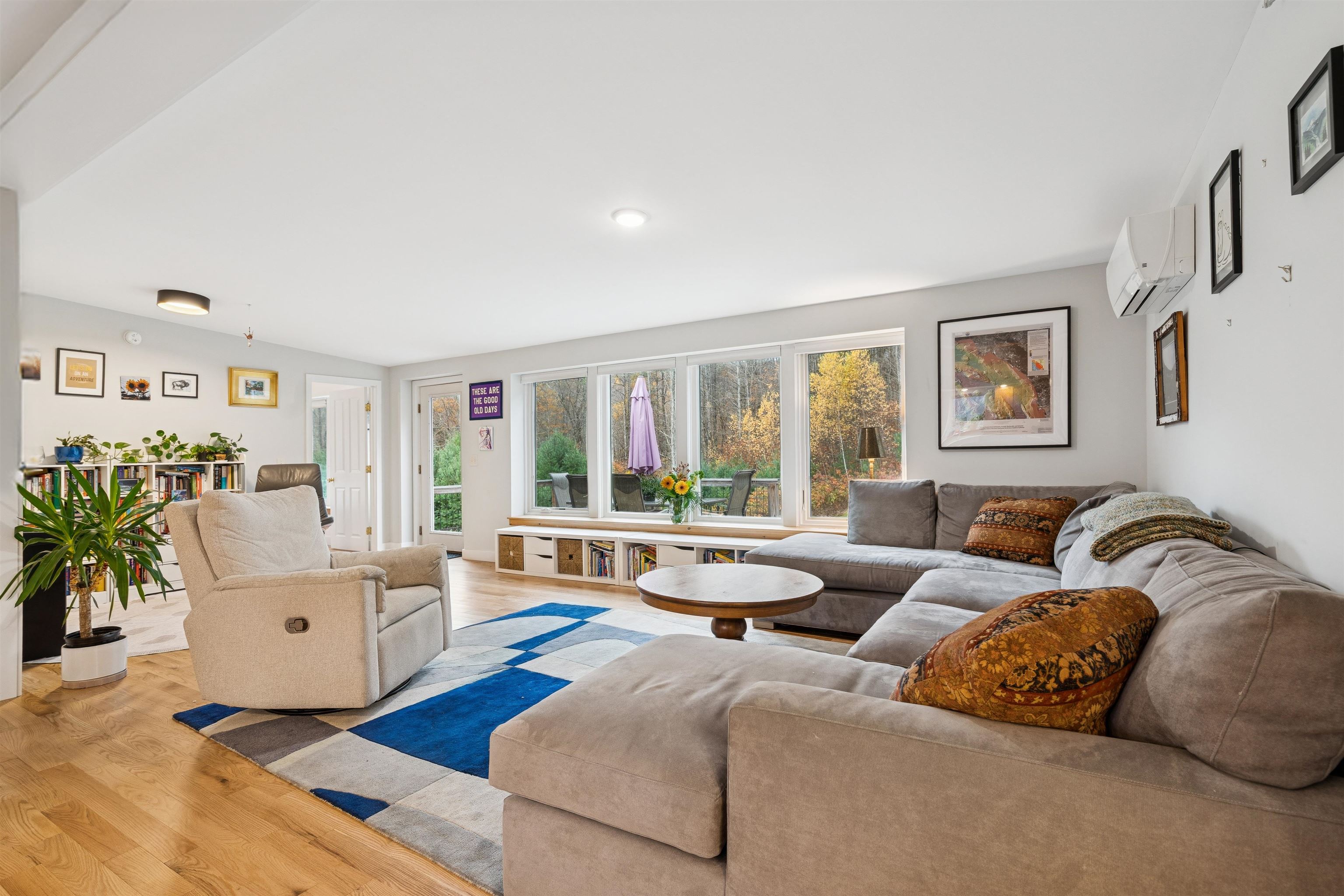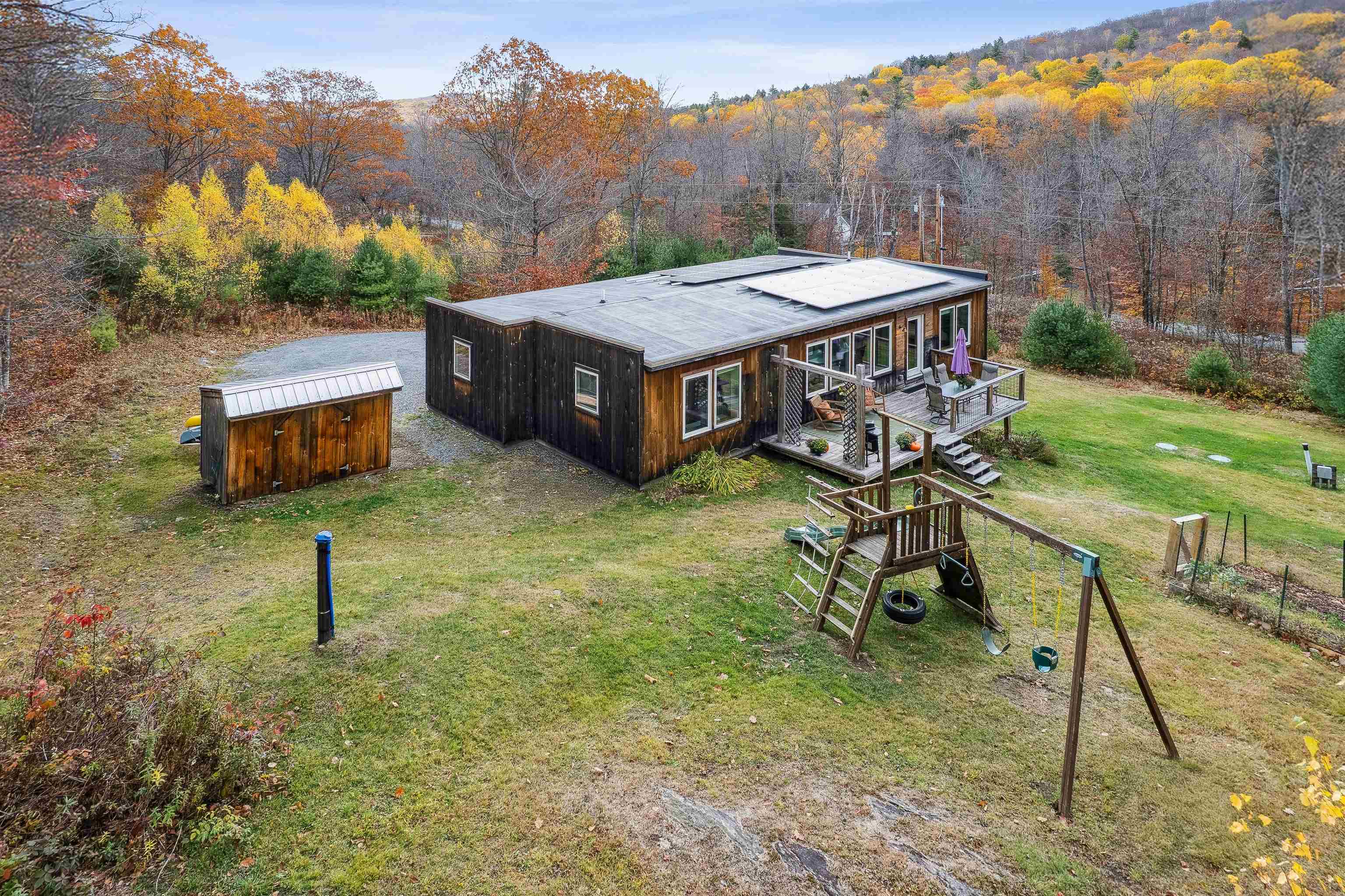 Situated on 7 private acres in the coveted village of South Strafford, VT, this 3-bedroom, 2-bathroom home offers wonderfully functional spaces throughout, while its Vermont Efficiency rating provides low-cost living year-round. Solar panels and a back-up Tesla battery pack add to the convenience of this comfortable contemporary home. The primary en-suite features a spacious bedroom, oversized walk-through closet, and full bath. The well-appointed kitchen connects to a large, light-filled living room overlooking the deck and backyard. Down the hall from the living room are two more bedrooms and another full bath. The laundry room is just off the kitchen and offers ample space for a pantry and interior storage, plus a shed and walkout basement area provide even more space for storage. Beautiful new hardwood floors were added within the past year. This is a wonderful opportunity to live in a serene setting, while still within an easy drive to Dartmouth College, Dartmouth Health Medical Center and all of the amazing amenities the Upper Valley has to offer. The well-respected Newton Elementary School is just down the road, and Strafford offers high school choice to top ranked institutions like Hanover High, Thetford Academy, Sharon Academy, and others. Open House Tuesday, October 28, 4- 6 PM.