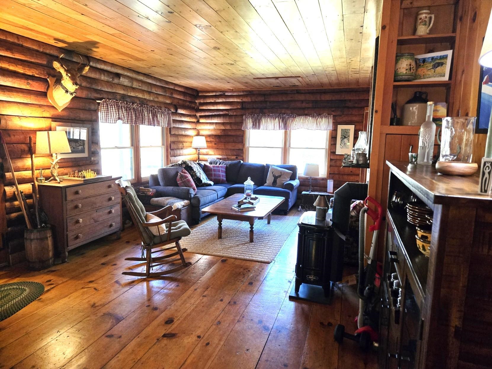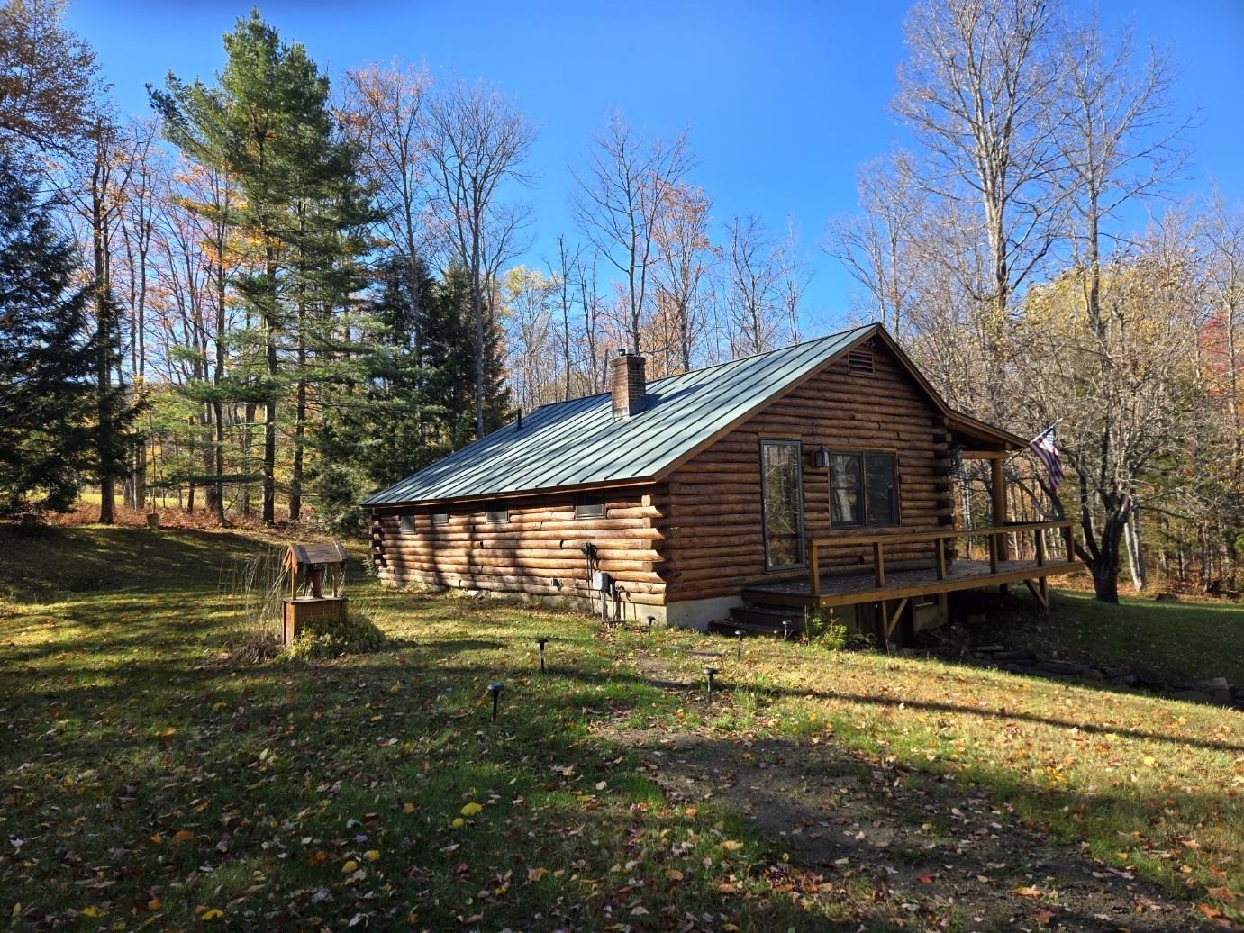 If you were to imagine the idyllic Vermont log cabin, this is it. Privately situated on 6.7 acres surrounded by manicured lawns, woods and a small pond, all at the end of a beautiful wooded lane. Sit on the front porch overlooking the serene setting or cozy up to the firepit on a chilly fall evening. The cabin has been upgraded to perfection with all new Anderson windows and doors, new appliances, new gas stove, insulated walkout basement, a new water pump and new underground electric service. In addition there is a relatively new propane powered standby generator plus super high speed fiber optic broadband. A three bay barn/garage with EV charger is located just a few steps from the house. With just a few exceptions, the high quality furnishings shown in the pictures, right down to the dishes, are included in the sale. Currently formatted to sleep six. Close to Woodstock, Barnard General Store, Silver Lake and Silver Lake State Park and beach. Moving in just involves you bringing your suitcase!