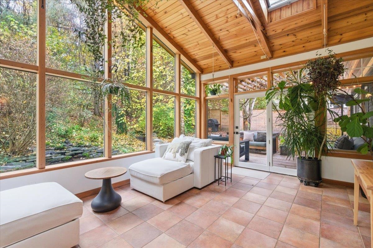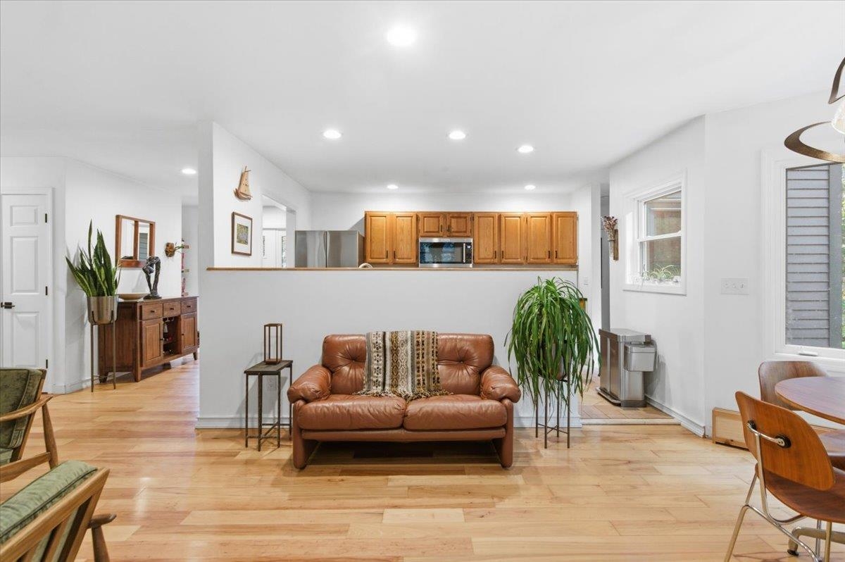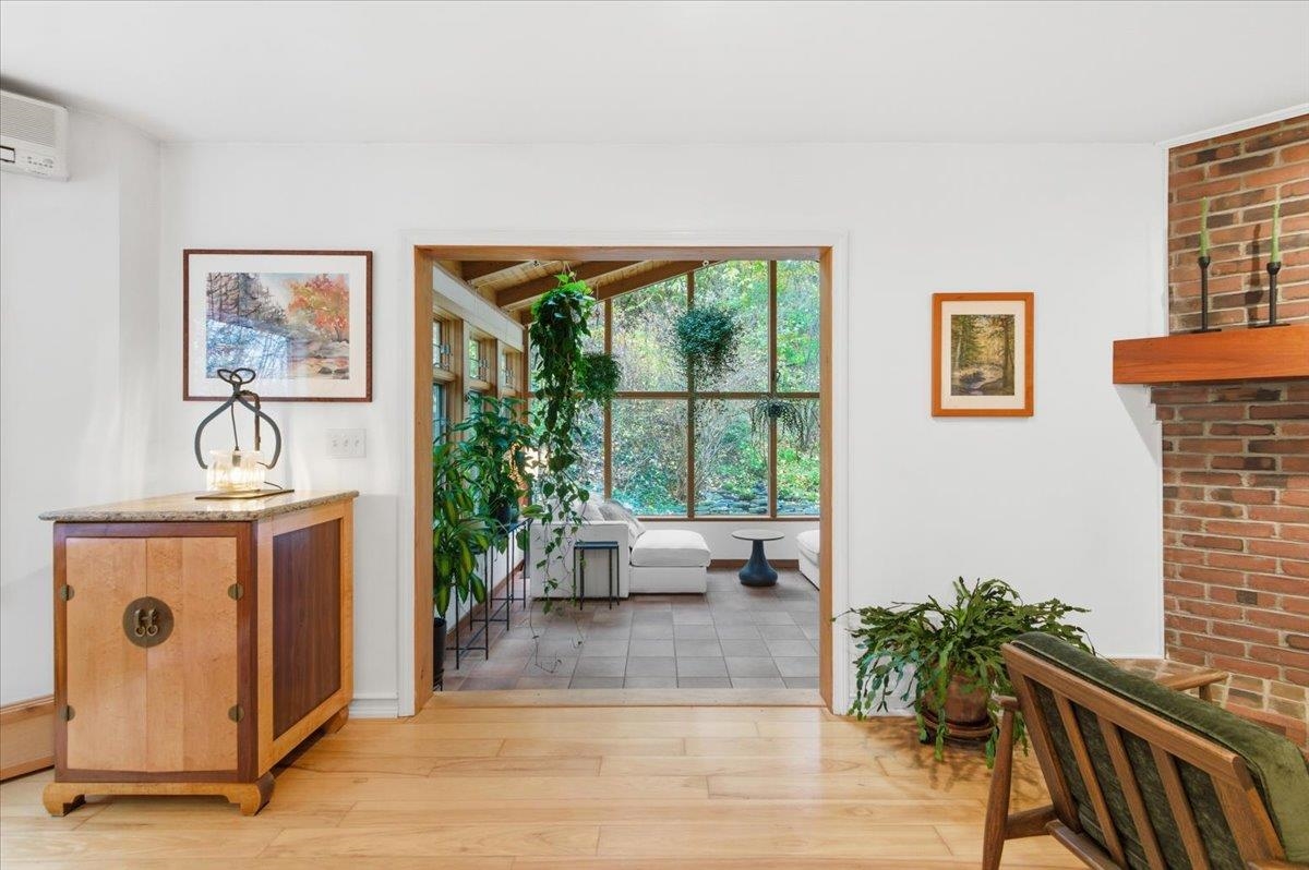 Tucked away in Burlington’s New North End, this modern three-bedroom, three-bath home blends privacy, craftsmanship, and a deep connection to nature. High-end finishes, stone steps, and mature gardens create a welcoming approach that feels peaceful and secluded yet only minutes from downtown, the bike path, and the lake. Inside, sunlight fills an open layout with cherry floors, stylish lighting, and thoughtful updates throughout. The defining feature of the home is the sunroom featuring radiant floors, views of the tranquil water feature, and year-round comfort surrounded by lush landscaping and bluestone walkways. You can soak in the outdoors while staying cozy no matter the season. The adjoining kitchen and dining area offer stainless steel appliances, generous counter space, and a brick hearth fireplace that anchors the room with warmth. The primary suite enjoys backyard views, a Jøtul gas stove, and a private bath. Two additional bedrooms are bathed with natural light and offer plenty of space for family, guests, or creative use. A finished lower level expands your living options and provides abundant storage. Outside, a new deck beneath the vine wrapped pergola creates a perfect outdoor retreat. The gardens evolve with the seasons, adding color and life throughout the year. With its attached two-car garage and a quiet setting near the Ethan Allen trails and neighborhood green spaces, this home offers a rare blend of comfort, quality, and Vermont charm.