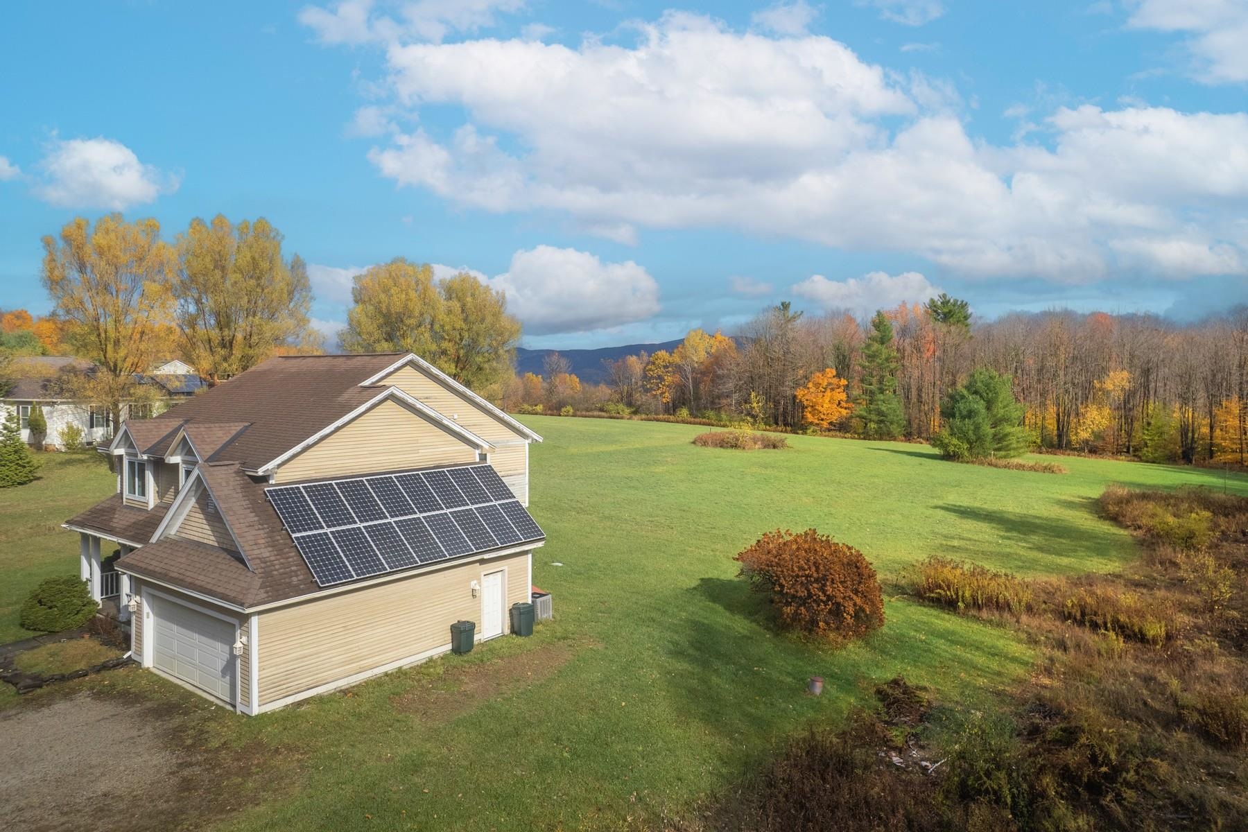 Rutland Town Home on Quarterline Road Opportunity knocks with this spacious four-bedroom, three-bath home! The great room impresses with its vaulted ceiling and stunning floor-to-ceiling stone fireplace, setting the tone for the rest of the home. The large kitchen is enhanced by gleaming granite counters, a breakfast island, and a convenient desk area for managing the household. The kitchen faces east, capturing the morning sun and filling the space with natural light. A generous adjoining dining room complements the open floor plan, perfect for gatherings and everyday living. You’ll be greeted by a welcoming tiled foyer and a formal dining room that’s ideal for entertaining. Beautiful hardwood flooring flows throughout, adding warmth and character to the main living areas. A first-floor laundry room and attached two-car garage add convenience. Upstairs are four bedrooms, including a wonderful primary suite featuring a large bath with a walk-in shower and relaxing Jacuzzi tub. The finished lower level offers additional living space with a handsome stone hearth ready for a wood stove, a heat pump for comfort, plus an exercise or recreation area. Enjoy year-round climate control with central air, and appreciate the home’s solar system that keeps electric costs low. Set on a 1.76-acre lot enhanced by charming stone walls in desirable Rutland Town—known for its school choice and easy access to skiing, lakes, and downtown amenities.