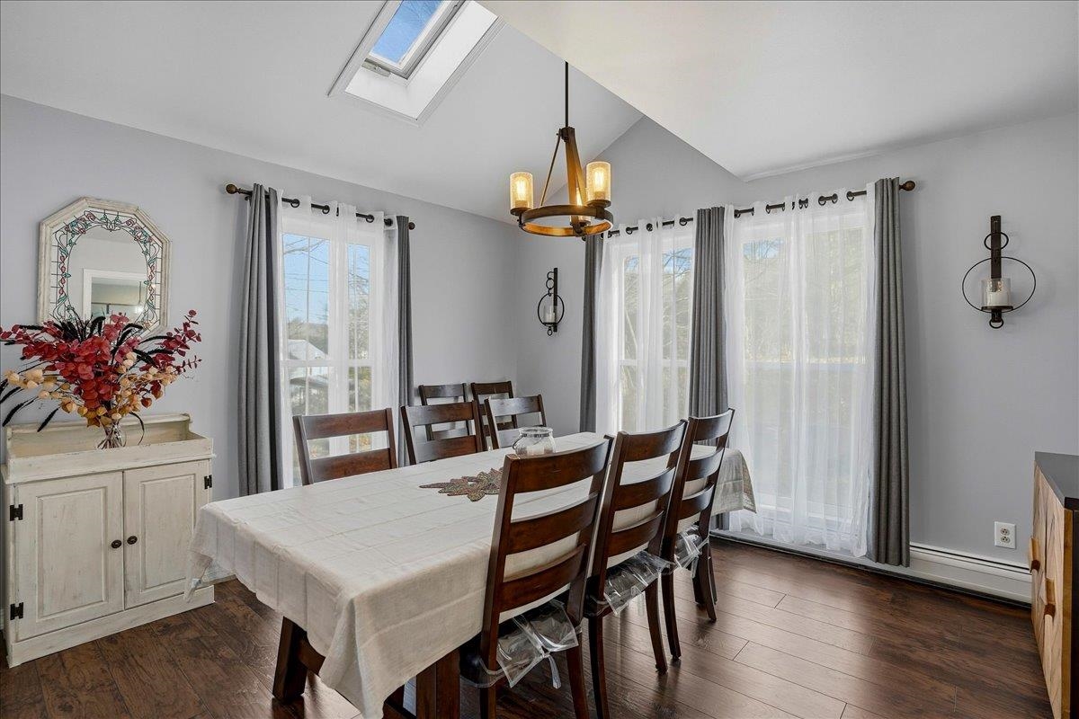 - Ceiling Fan, Dining Area, Wood Fireplace, 1 Fireplace, Hearth, Kitchen/Dining, Living/Dining, Primary BR w/ BA, Natural Light, Skylight, Vaulted Ceiling, Walk-in Closet, Wood Stove Hook-up, Basement Laundry